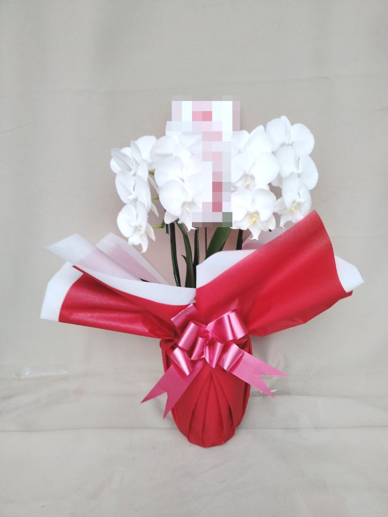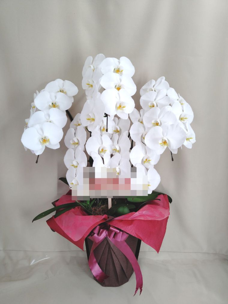 胡蝶蘭の実際にお届けした写真です。花秘書では発送前に写真をメールで送信致しますので安心して大切な顧客や取引様へのギフトにご利用頂けます。
