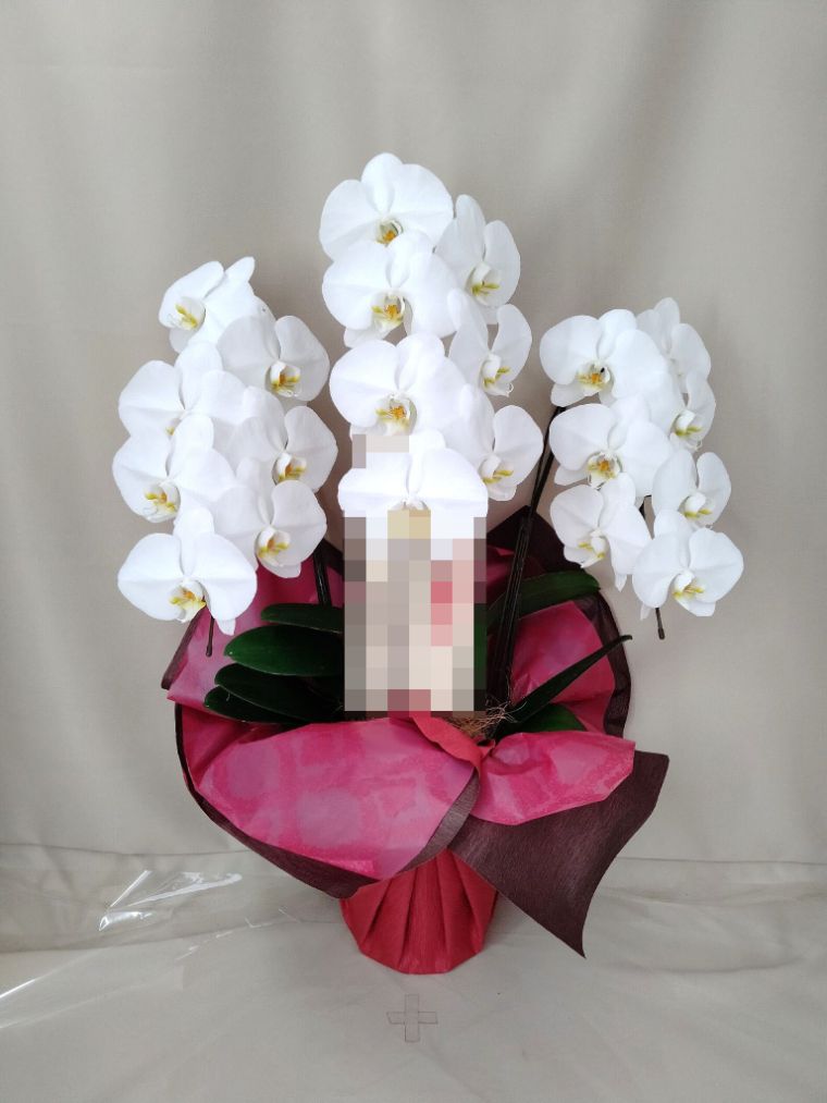 胡蝶蘭の実際にお届けした写真です。花秘書では発送前に写真をメールで送信致しますので安心して大切な顧客や取引様へのギフトにご利用頂けます。