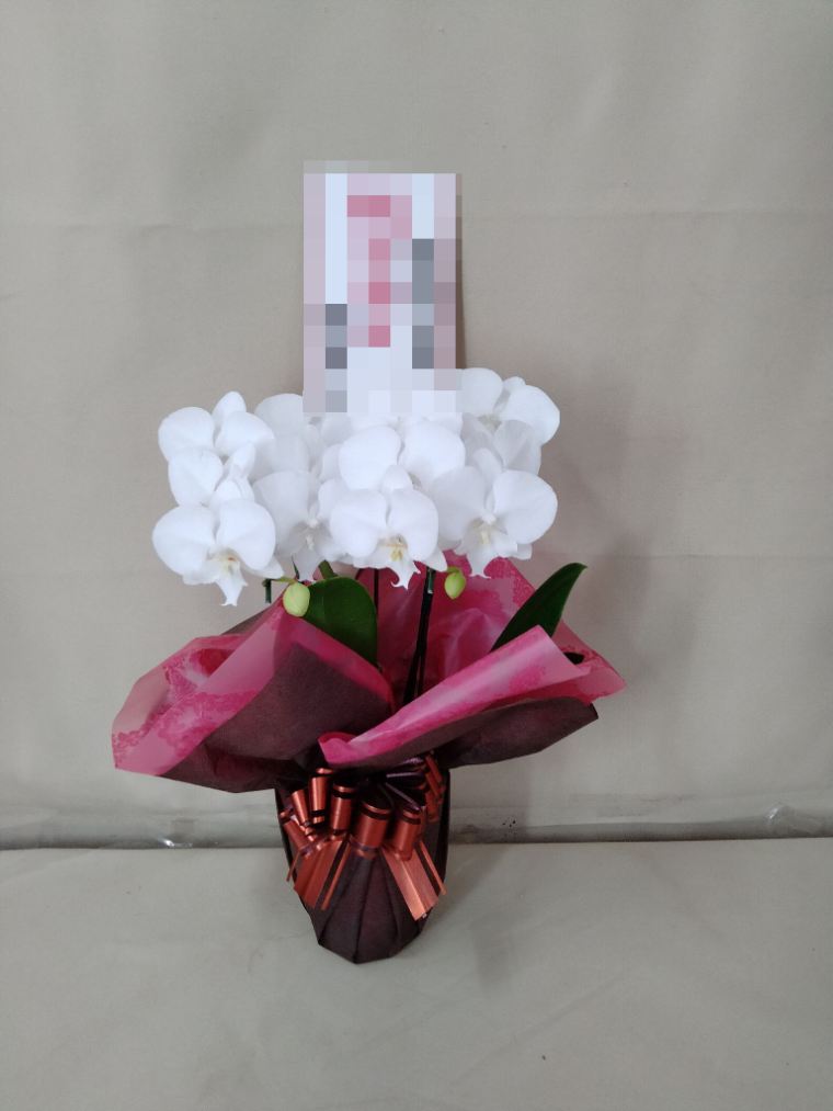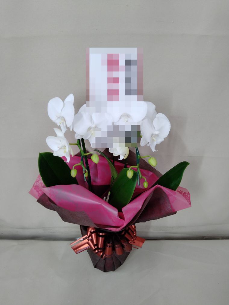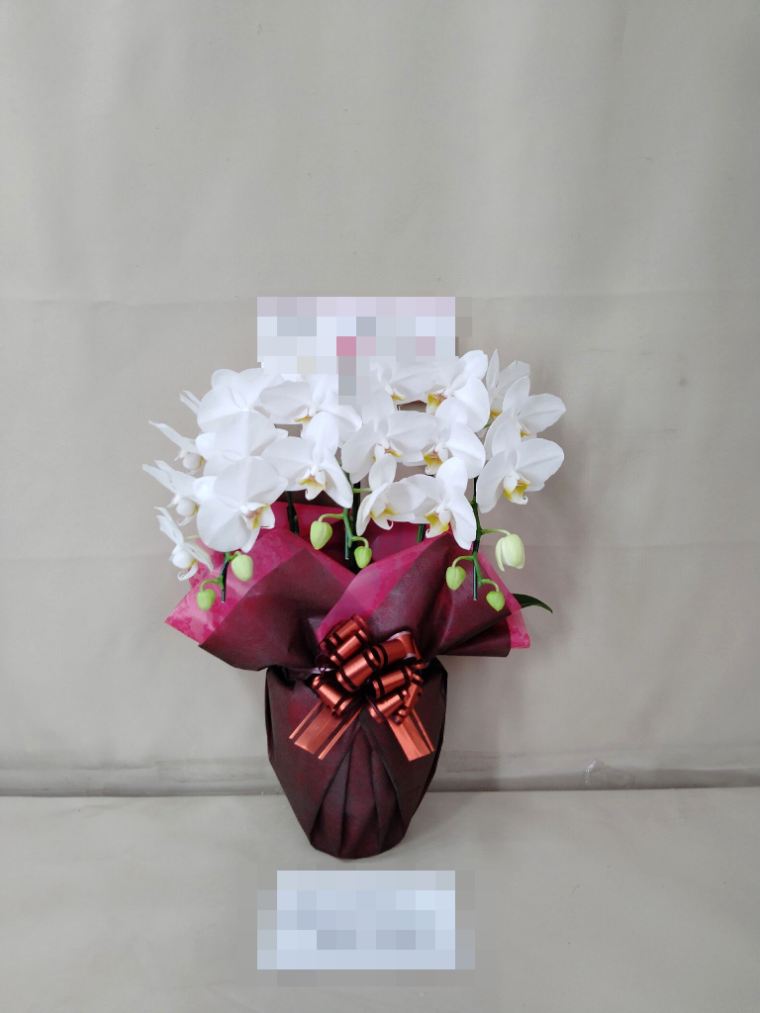 胡蝶蘭の実際にお届けした写真です。花秘書では発送前に写真をメールで送信致しますので安心して大切な顧客や取引様へのギフトにご利用頂けます。