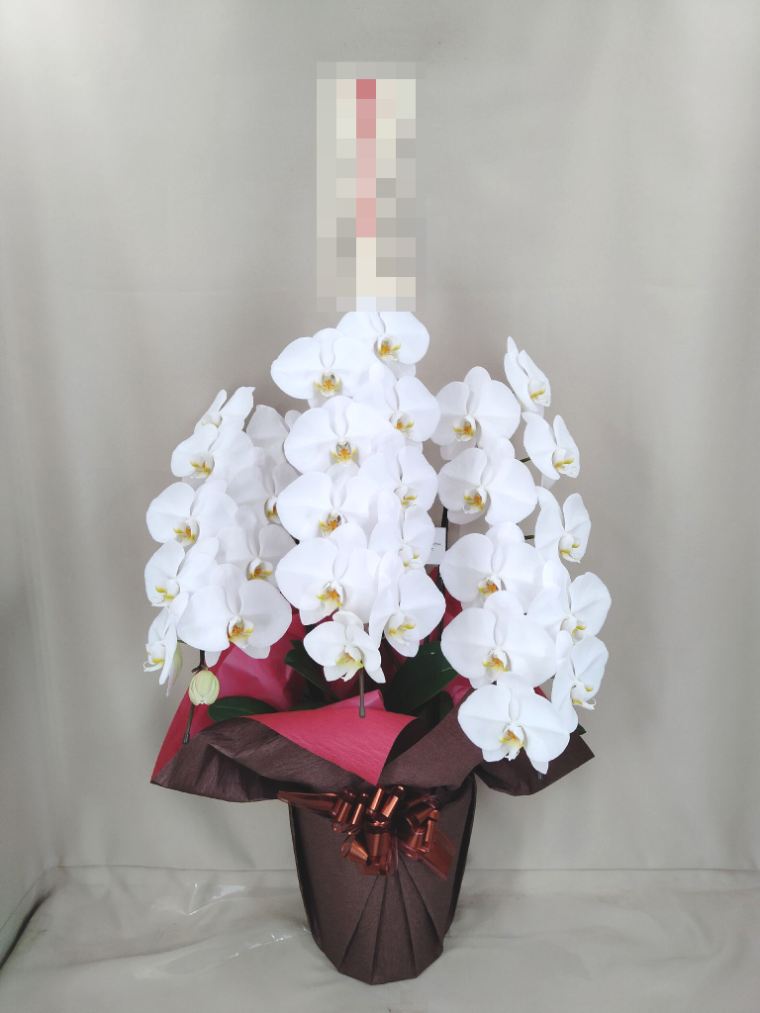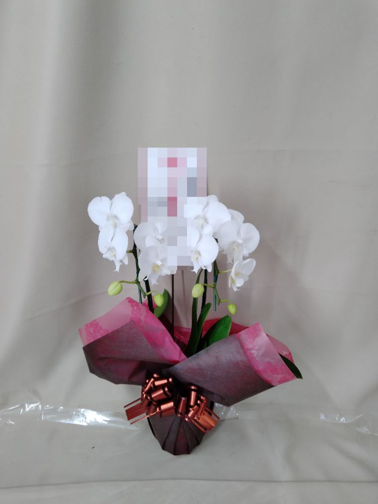 胡蝶蘭の実際にお届けした写真です。花秘書では発送前に写真をメールで送信致しますので安心して大切な顧客や取引様へのギフトにご利用頂けます。
