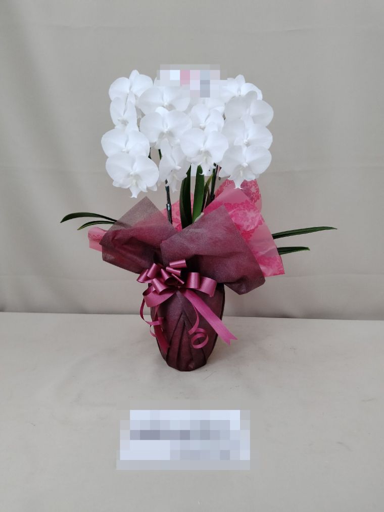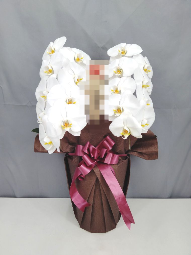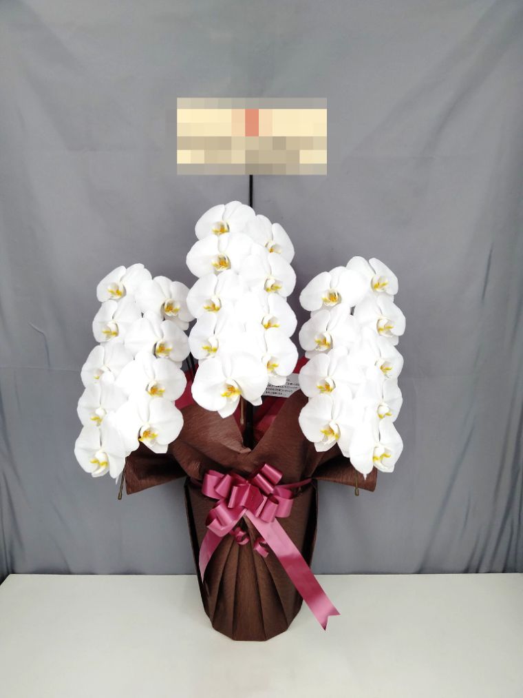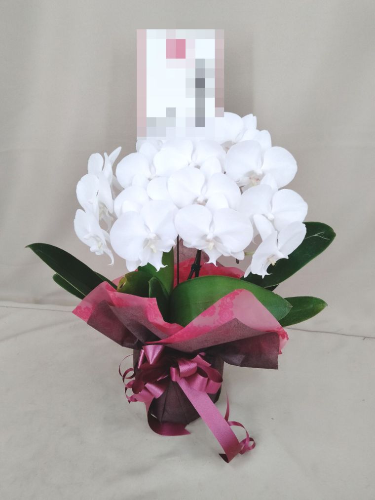胡蝶蘭の実際にお届けした写真です。花秘書では発送前に写真をメールで送信致しますので安心して大切な顧客や取引様へのギフトにご利用頂けます。