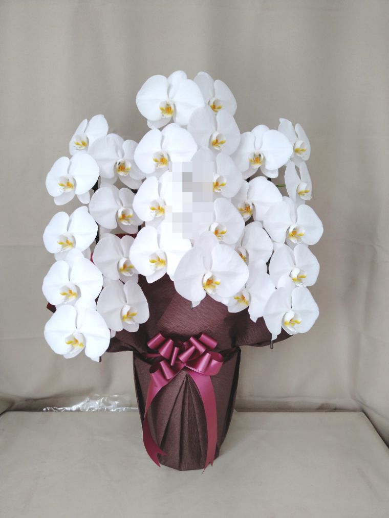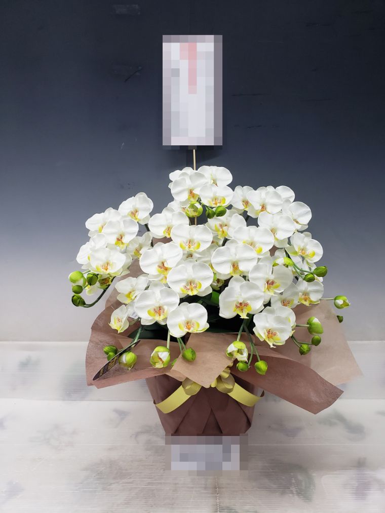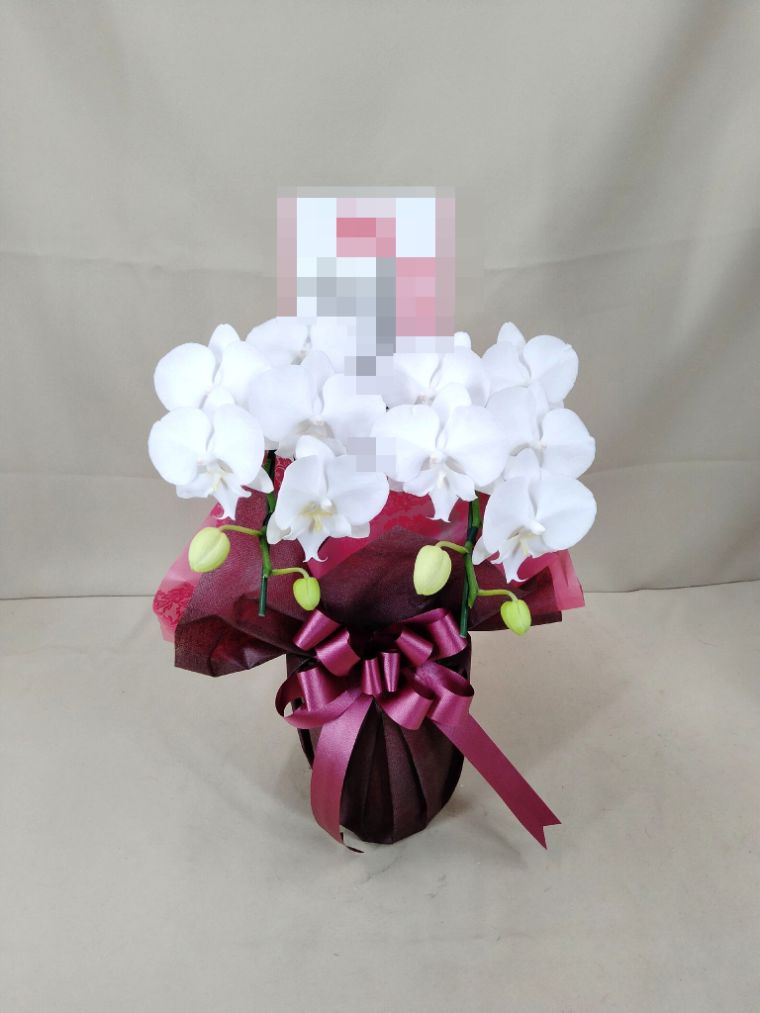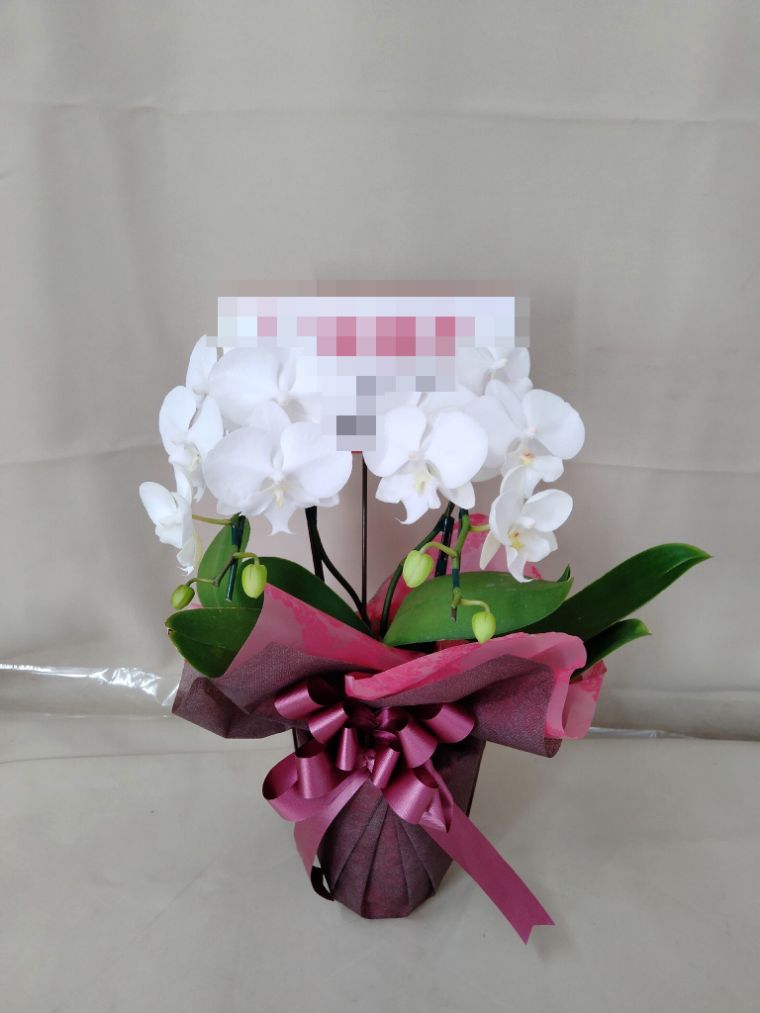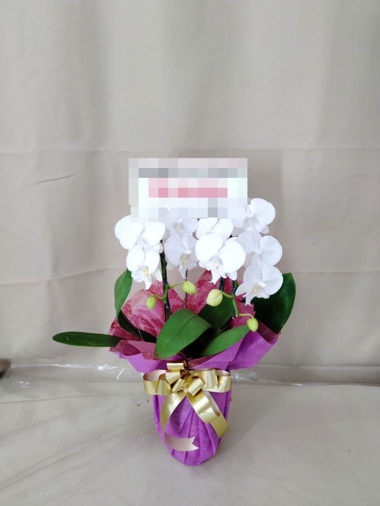 胡蝶蘭の実際にお届けした写真です。花秘書では発送前に写真をメールで送信致しますので安心して大切な顧客や取引様へのギフトにご利用頂けます。