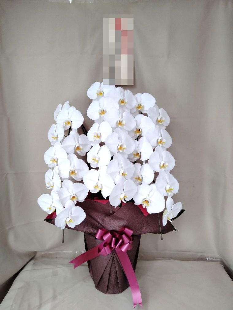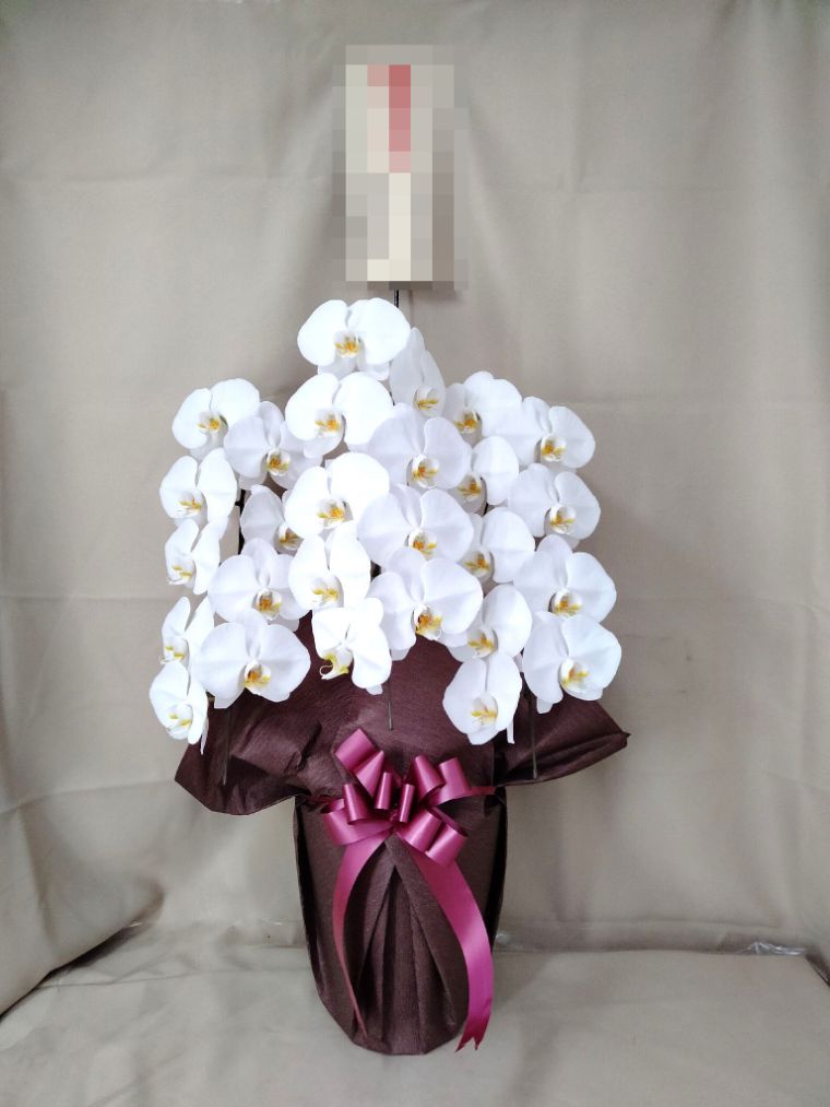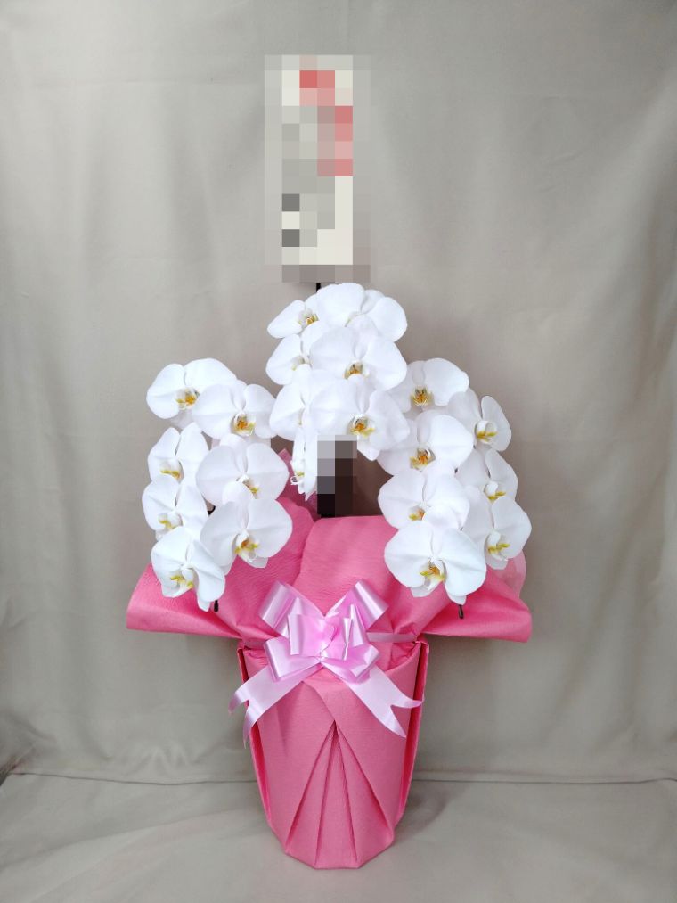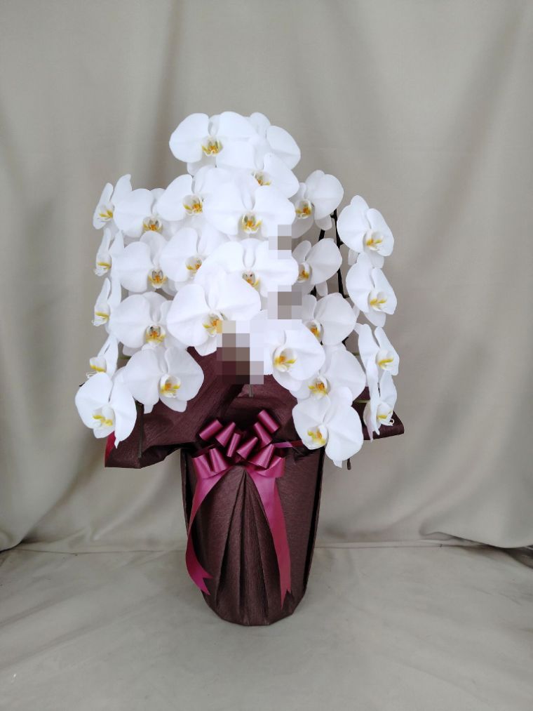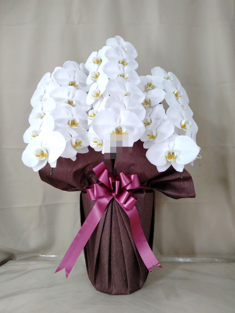 胡蝶蘭の実際にお届けした写真です。花秘書では発送前に写真をメールで送信致しますので安心して大切な顧客や取引様へのギフトにご利用頂けます。