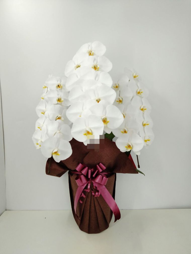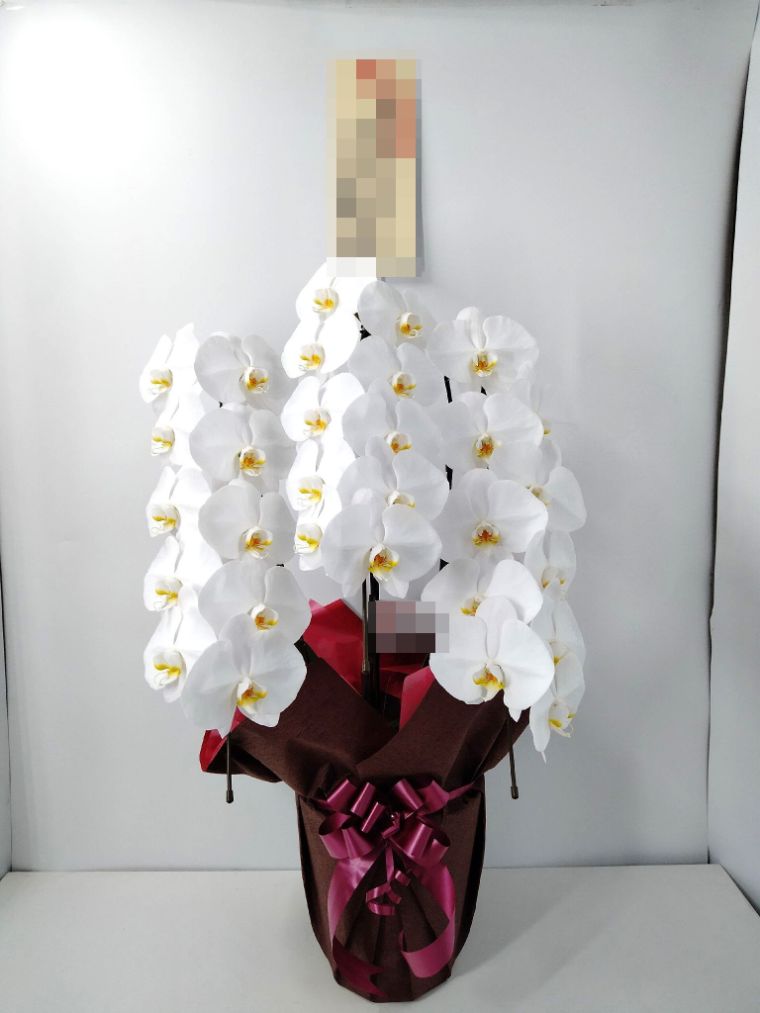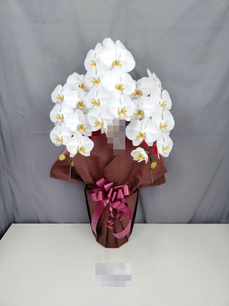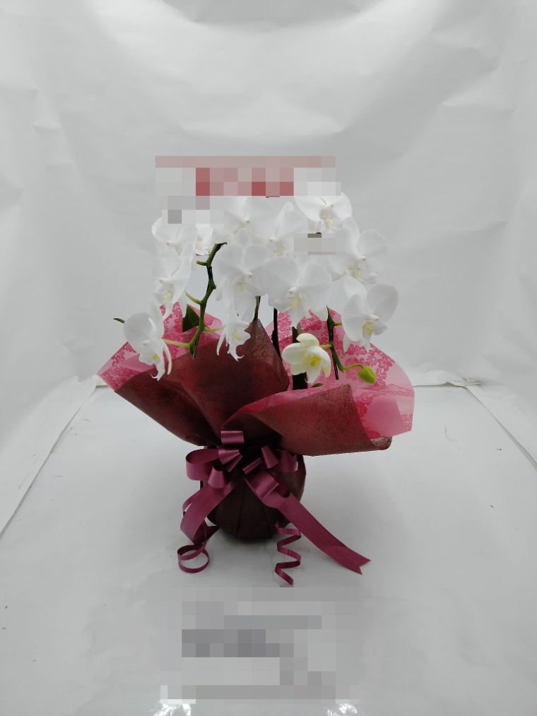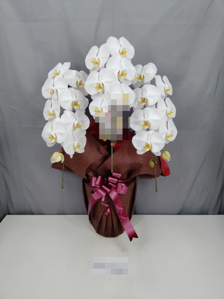 胡蝶蘭の実際にお届けした写真です。花秘書では発送前に写真をメールで送信致しますので安心して大切な顧客や取引様へのギフトにご利用頂けます。