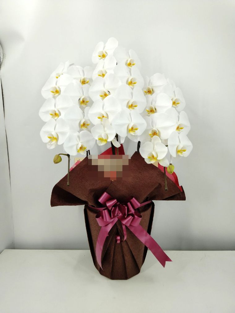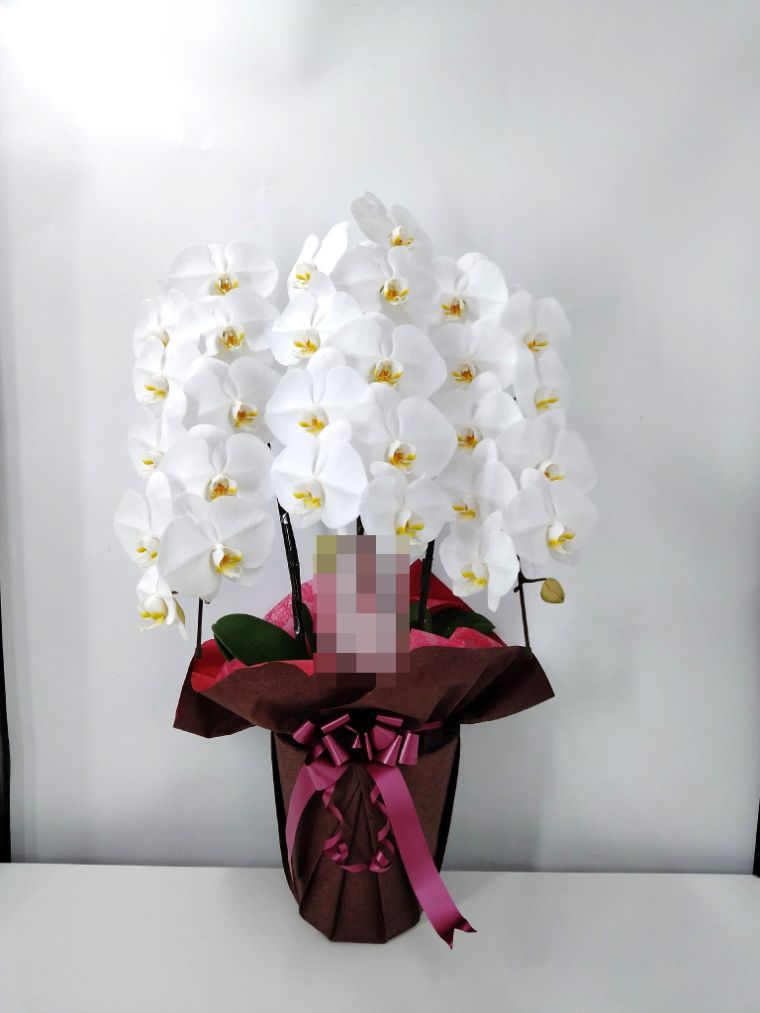 胡蝶蘭の実際にお届けした写真です。花秘書では発送前に写真をメールで送信致しますので安心して大切な顧客や取引様へのギフトにご利用頂けます。
