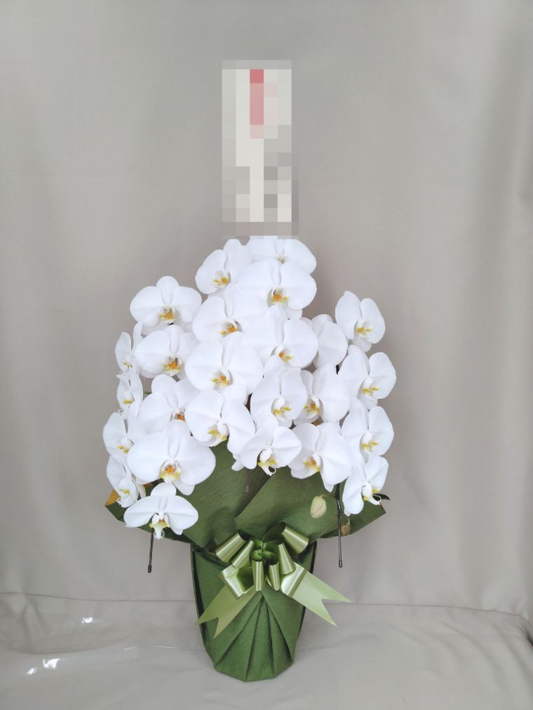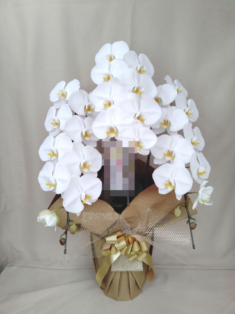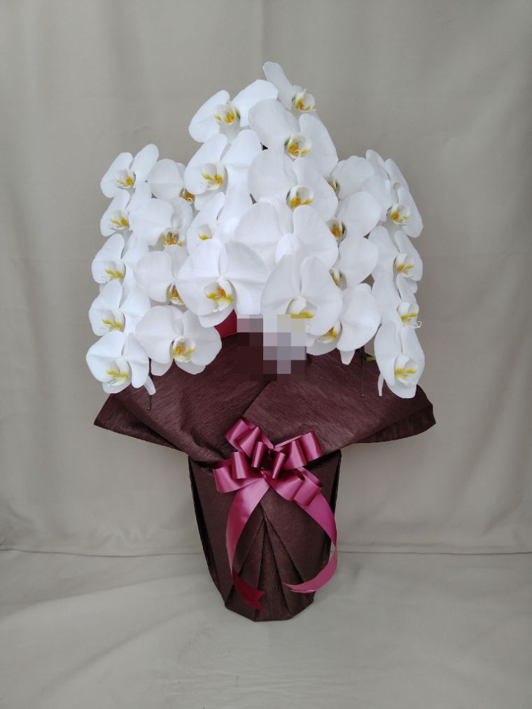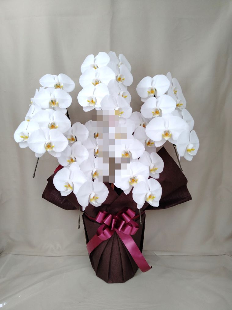 胡蝶蘭の実際にお届けした写真です。花秘書では発送前に写真をメールで送信致しますので安心して大切な顧客や取引様へのギフトにご利用頂けます。