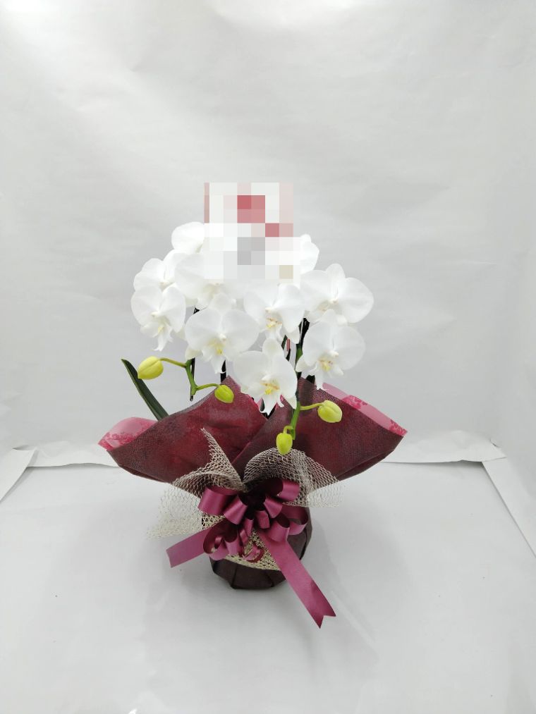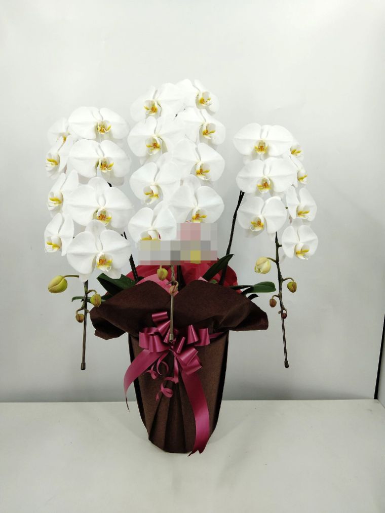 胡蝶蘭の実際にお届けした写真です。花秘書では発送前に写真をメールで送信致しますので安心して大切な顧客や取引様へのギフトにご利用頂けます。
