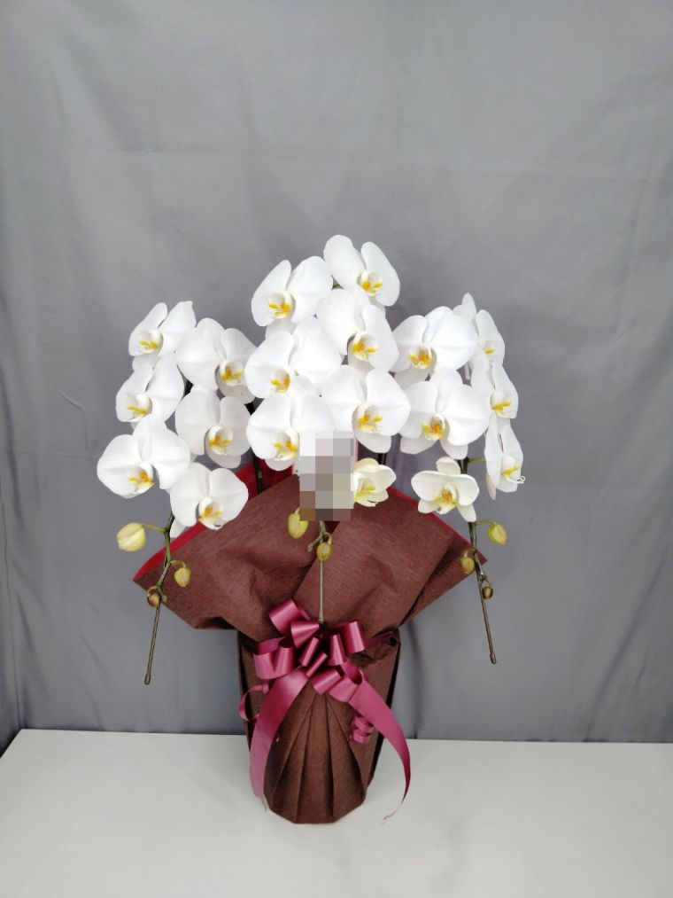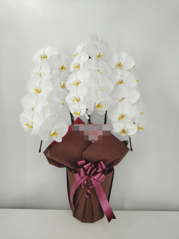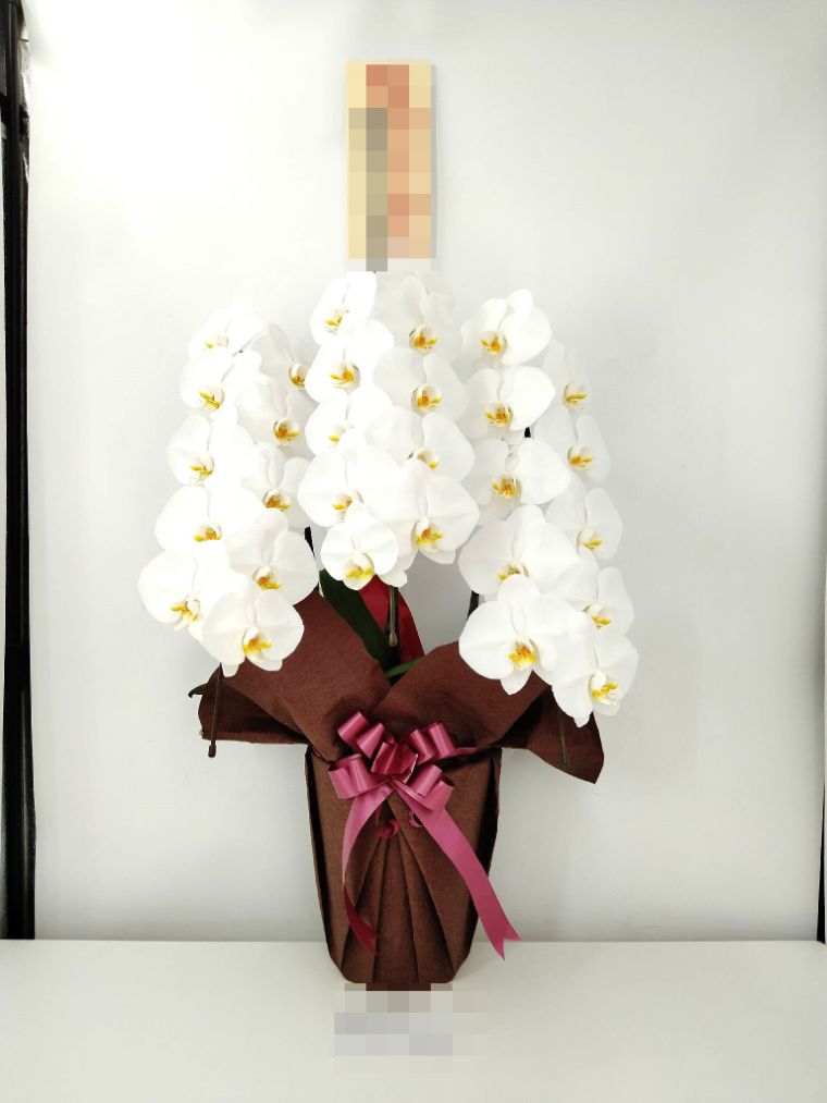 胡蝶蘭の実際にお届けした写真です。花秘書では発送前に写真をメールで送信致しますので安心して大切な顧客や取引様へのギフトにご利用頂けます。