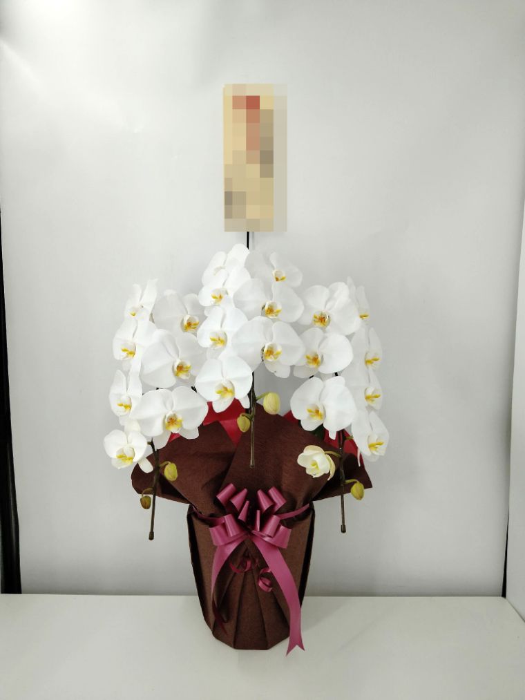 胡蝶蘭の実際にお届けした写真です。花秘書では発送前に写真をメールで送信致しますので安心して大切な顧客や取引様へのギフトにご利用頂けます。