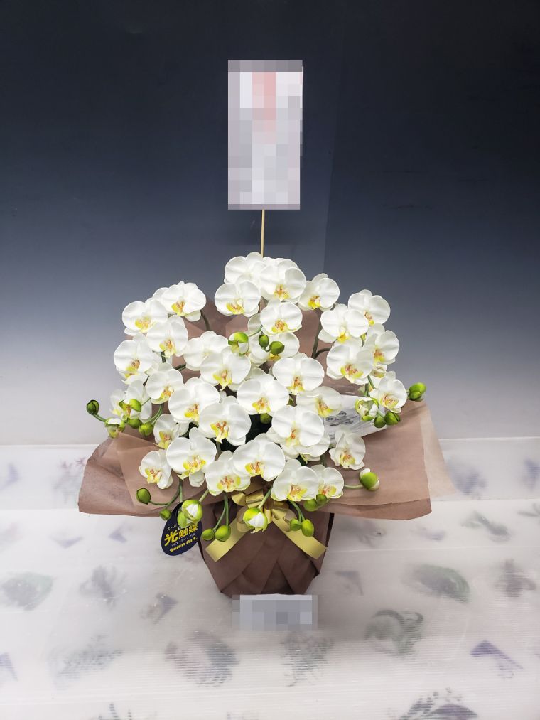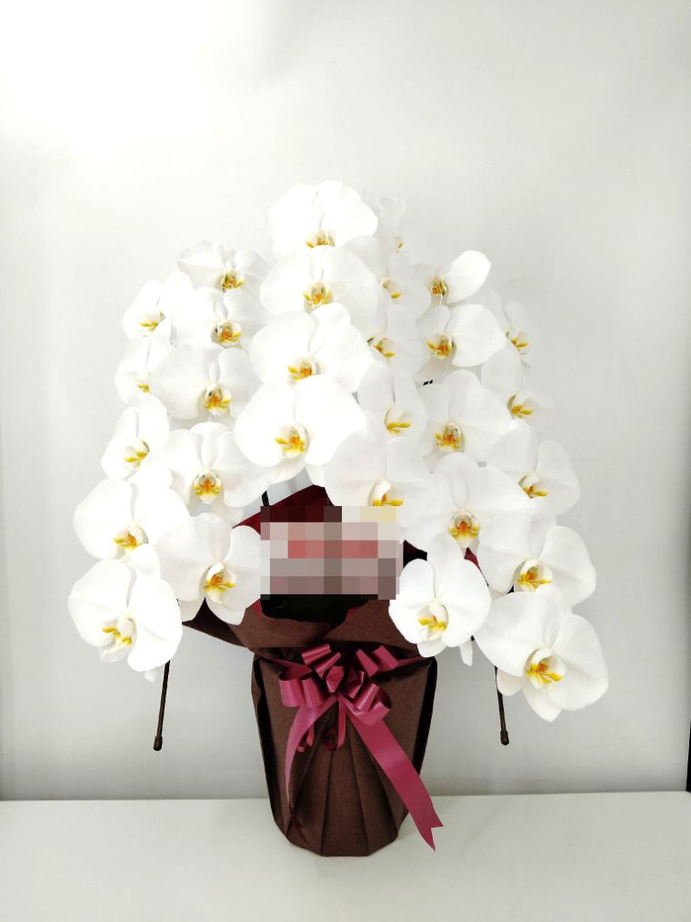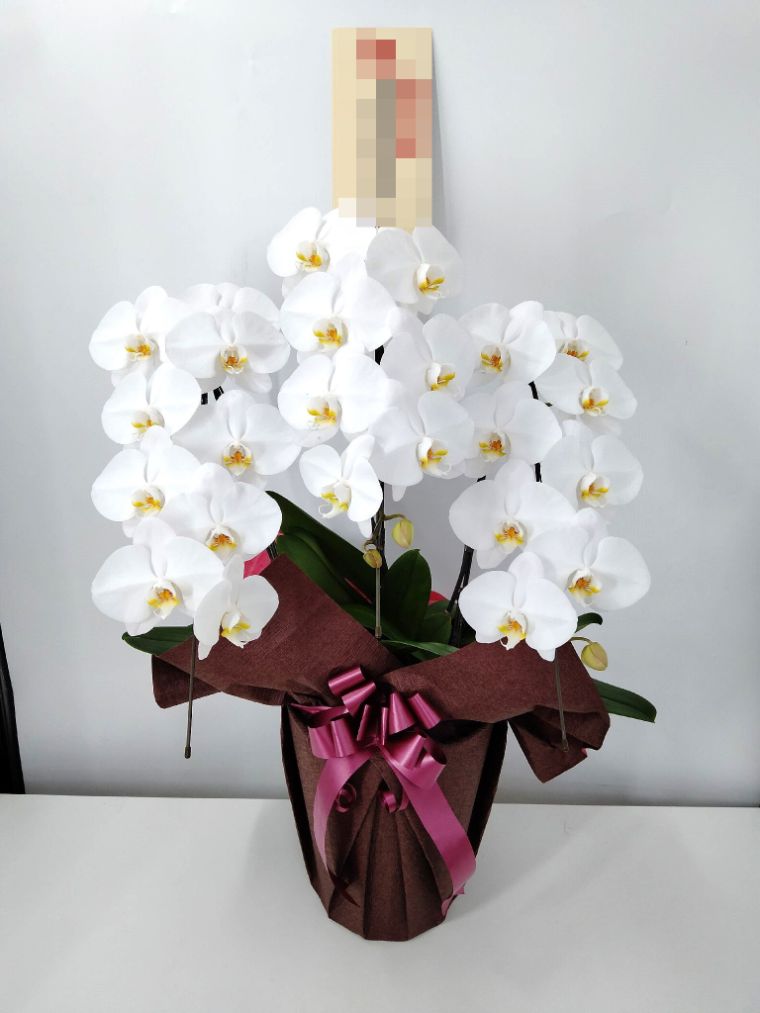 胡蝶蘭の実際にお届けした写真です。花秘書では発送前に写真をメールで送信致しますので安心して大切な顧客や取引様へのギフトにご利用頂けます。