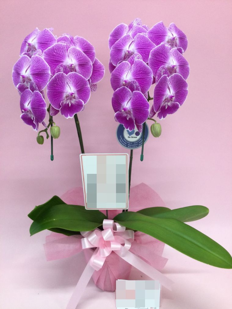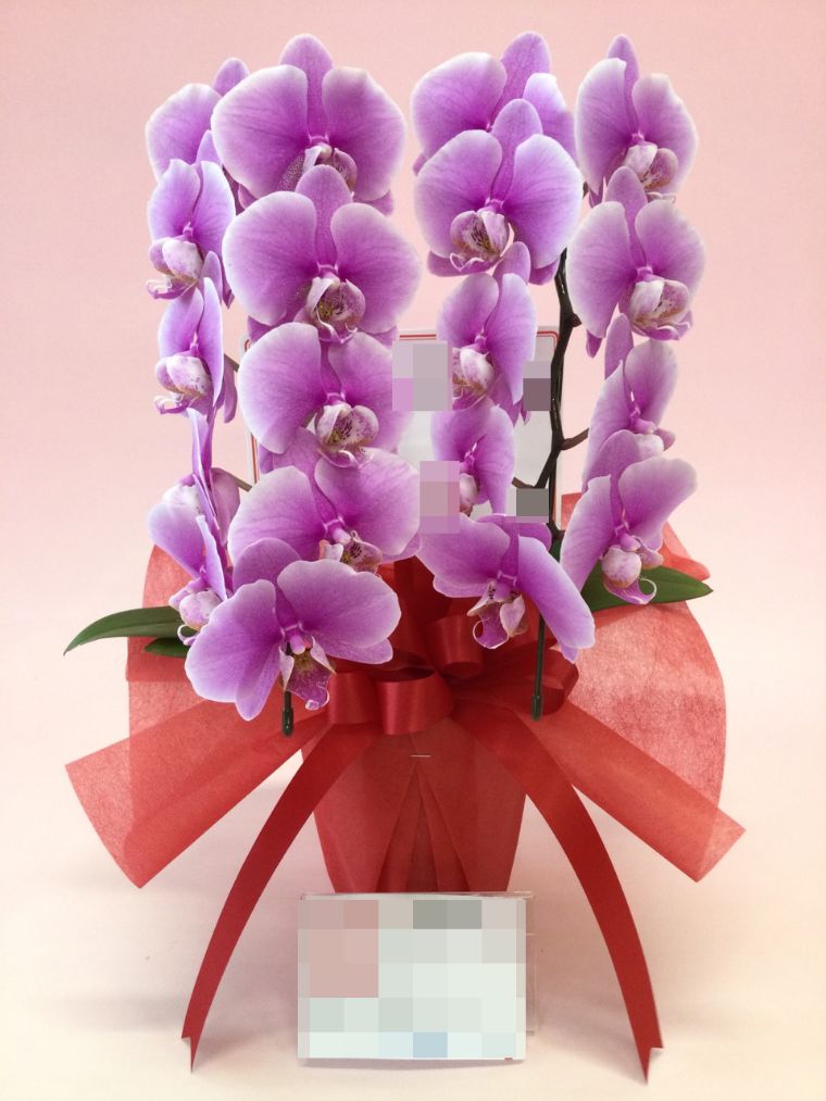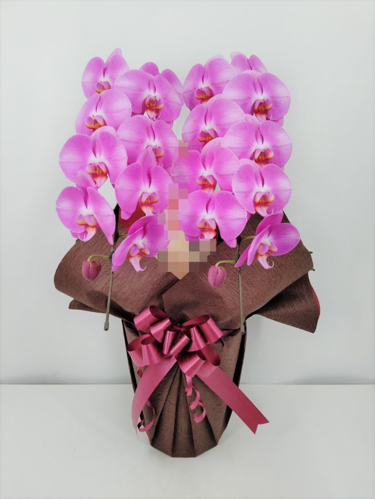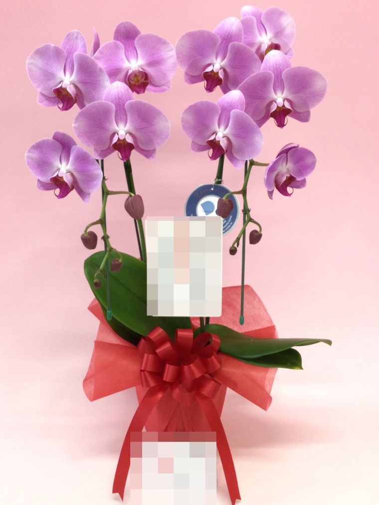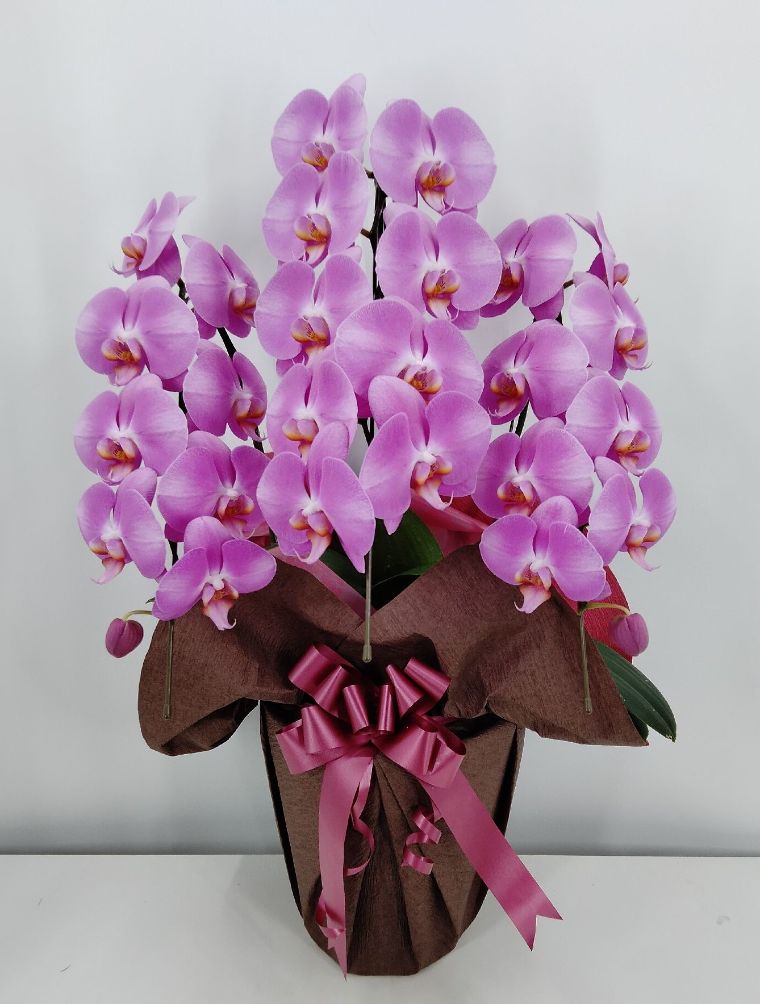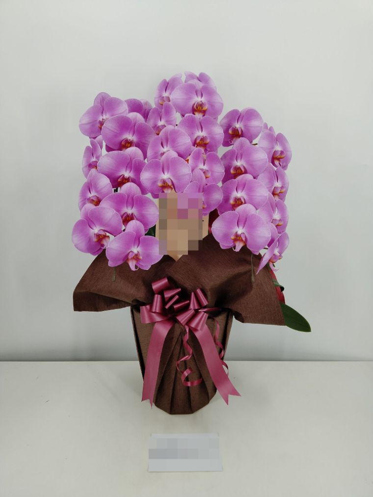 胡蝶蘭の実際にお届けした写真です。花秘書では発送前に写真をメールで送信致しますので安心して大切な顧客や取引様へのギフトにご利用頂けます。