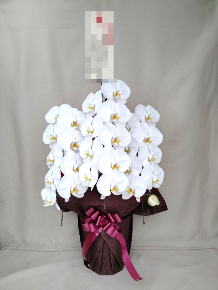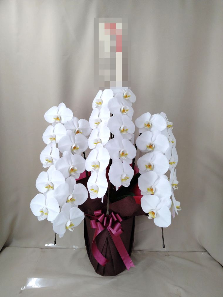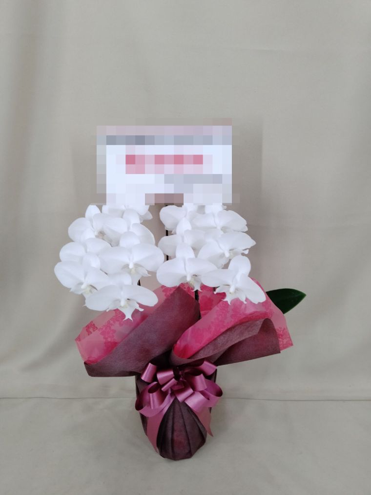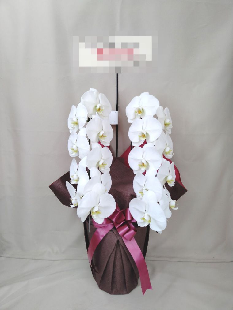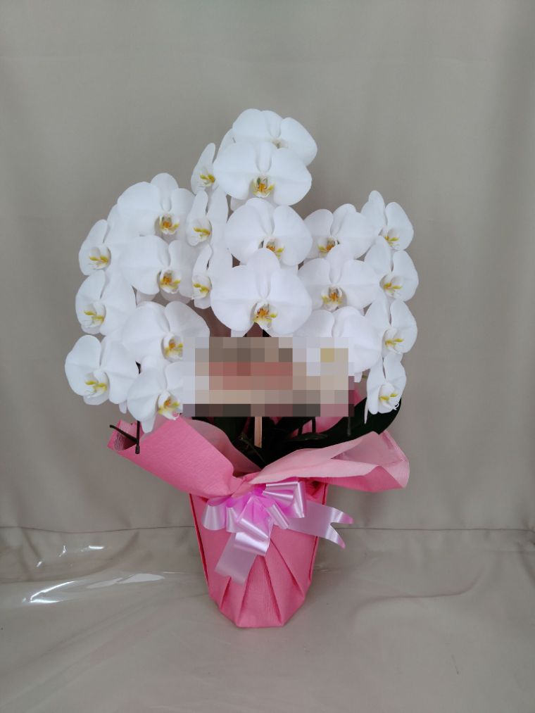 胡蝶蘭の実際にお届けした写真です。花秘書では発送前に写真をメールで送信致しますので安心して大切な顧客や取引様へのギフトにご利用頂けます。