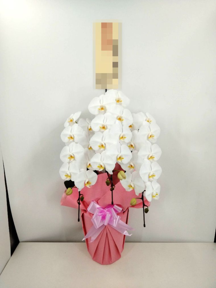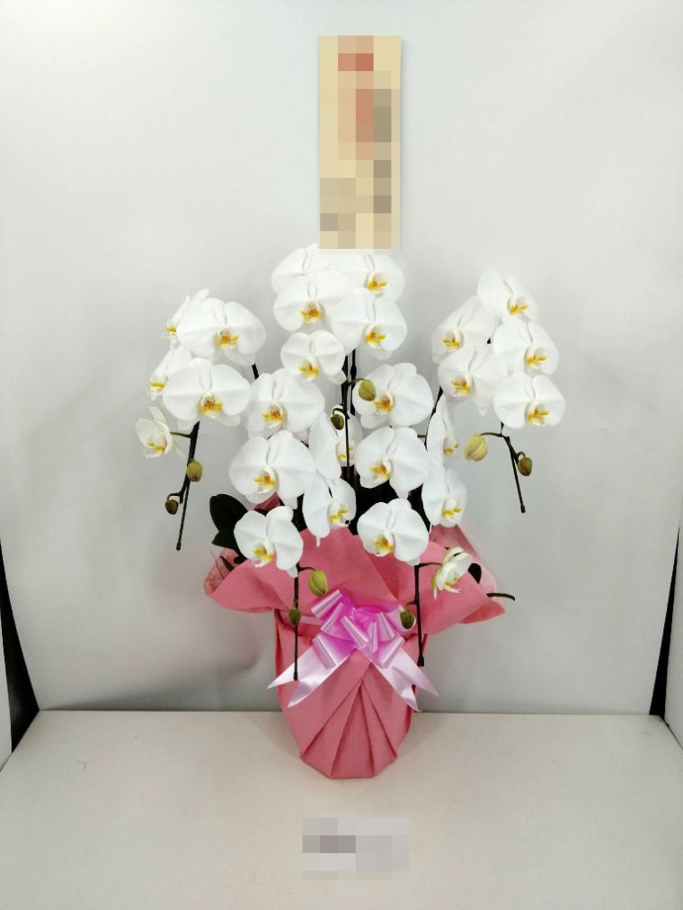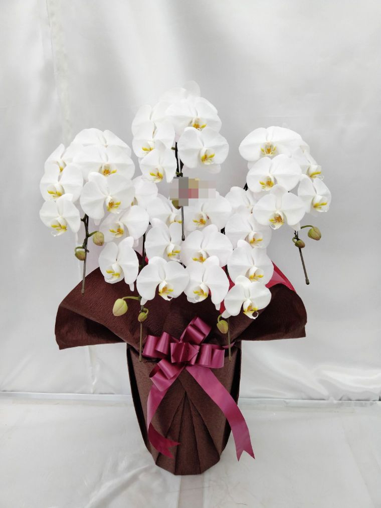 胡蝶蘭の実際にお届けした写真です。花秘書では発送前に写真をメールで送信致しますので安心して大切な顧客や取引様へのギフトにご利用頂けます。