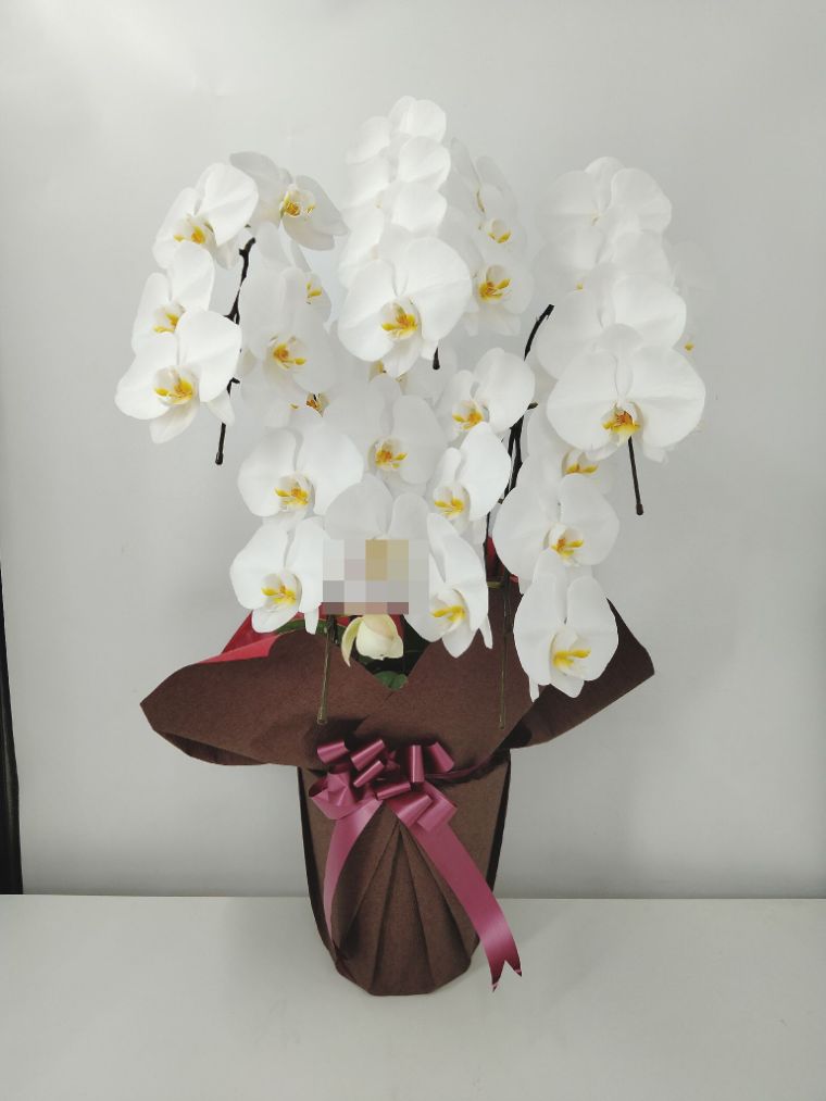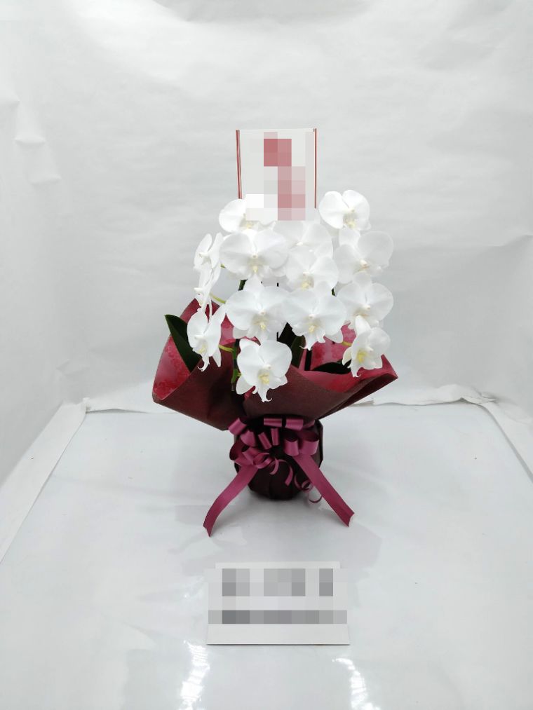 胡蝶蘭の実際にお届けした写真です。花秘書では発送前に写真をメールで送信致しますので安心して大切な顧客や取引様へのギフトにご利用頂けます。