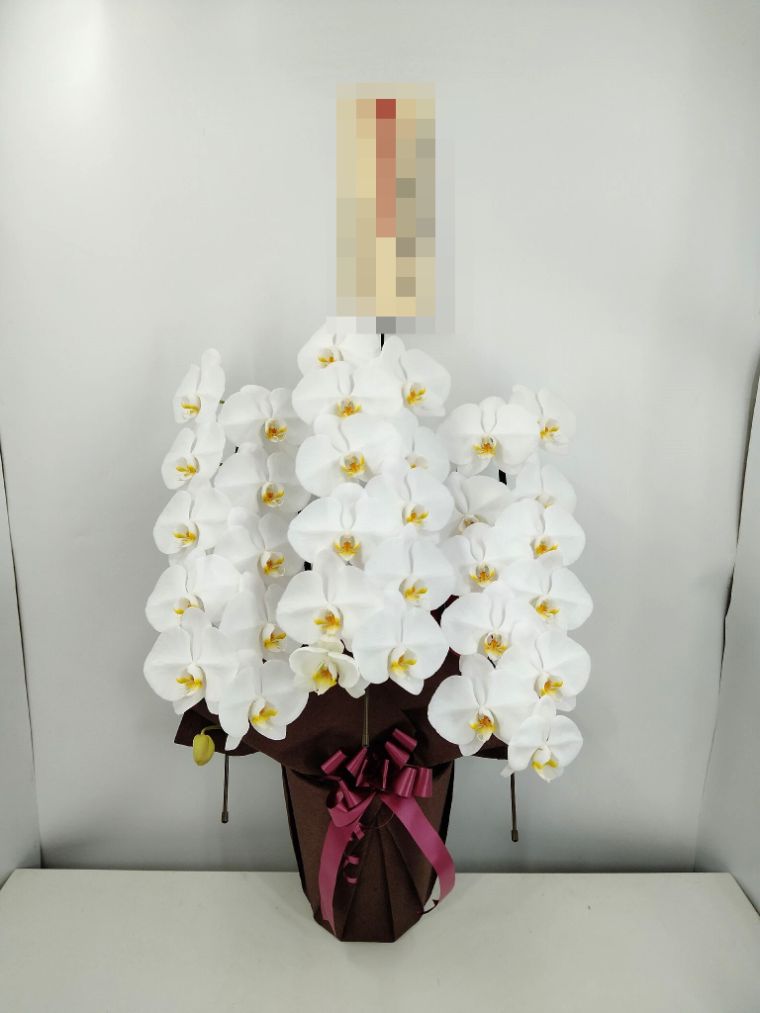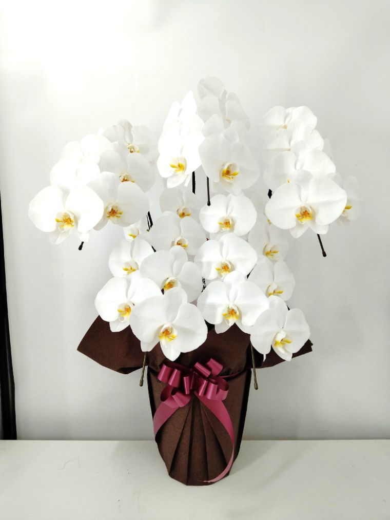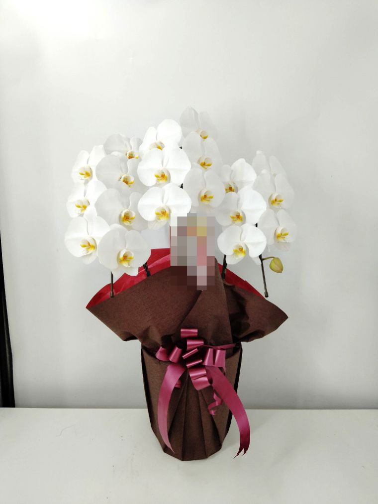 胡蝶蘭の実際にお届けした写真です。花秘書では発送前に写真をメールで送信致しますので安心して大切な顧客や取引様へのギフトにご利用頂けます。