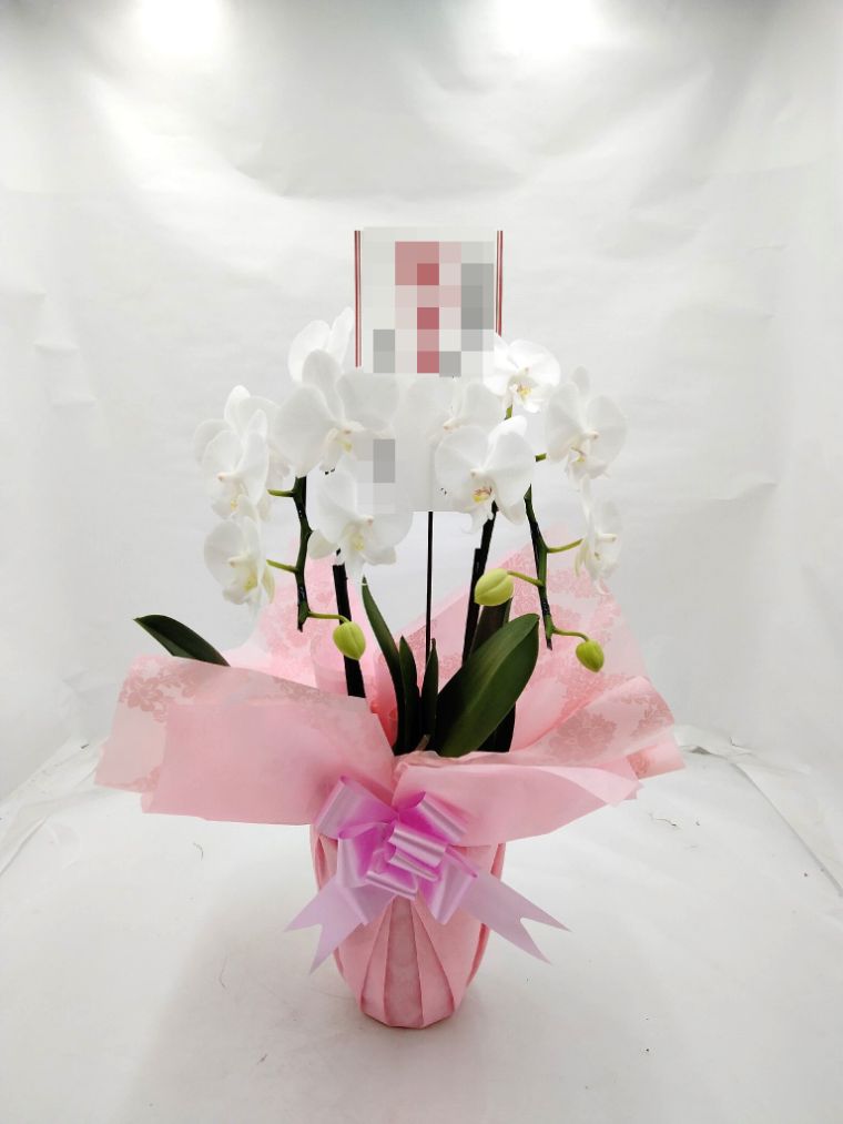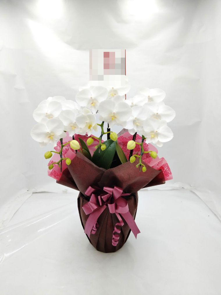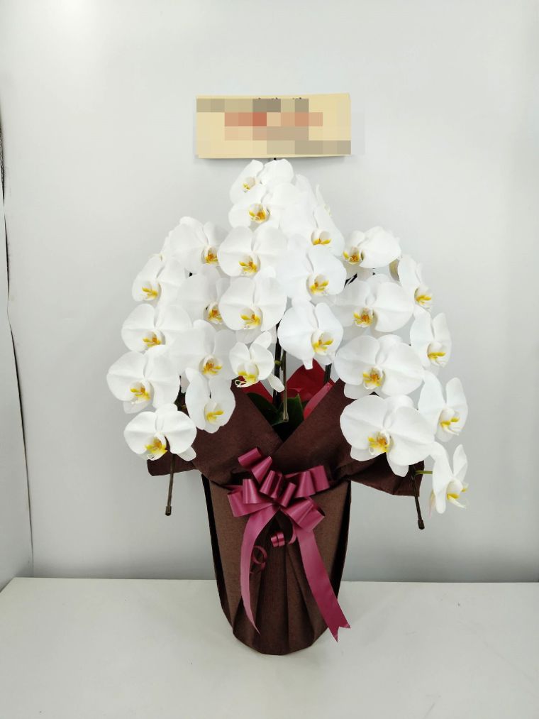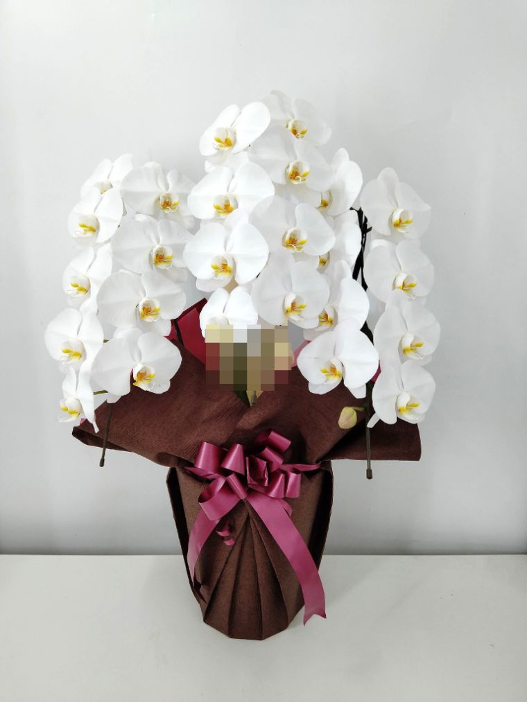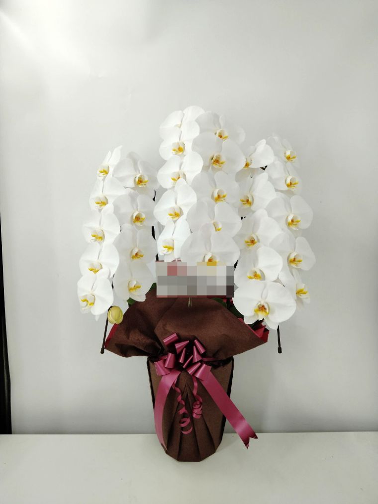 胡蝶蘭の実際にお届けした写真です。花秘書では発送前に写真をメールで送信致しますので安心して大切な顧客や取引様へのギフトにご利用頂けます。