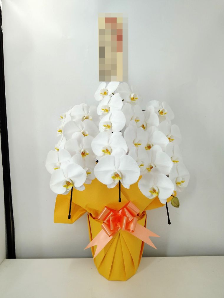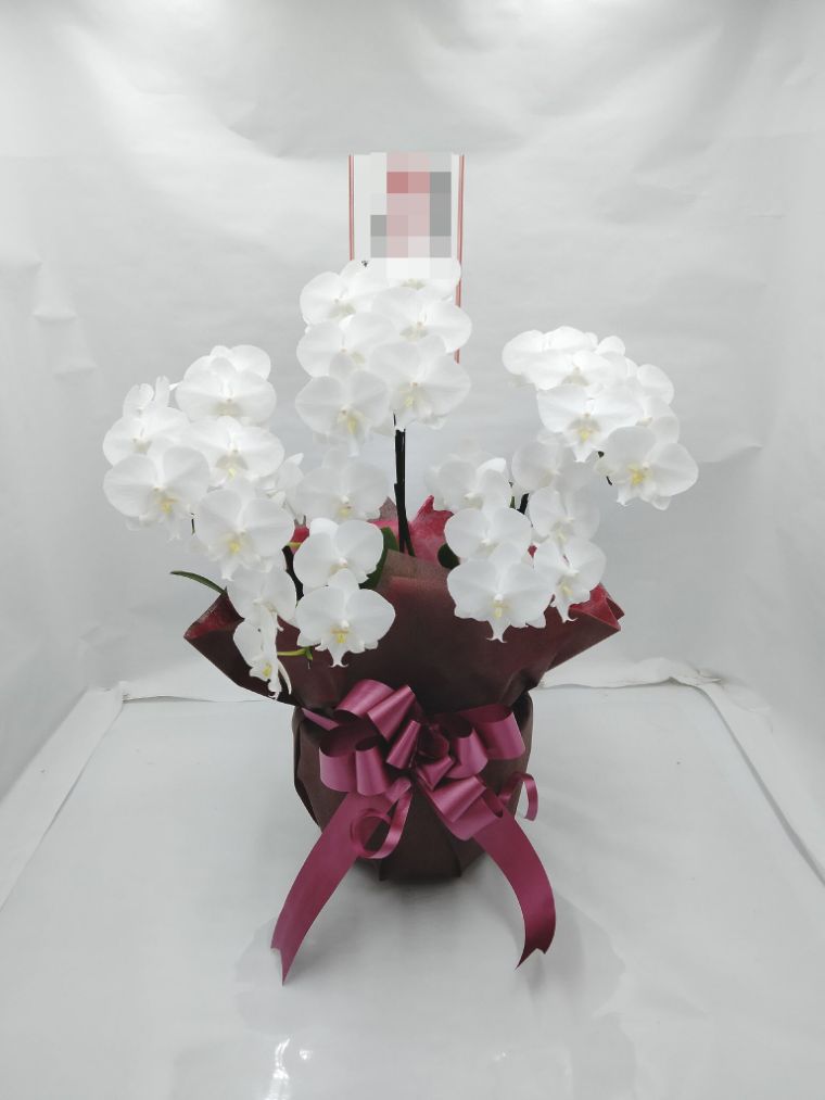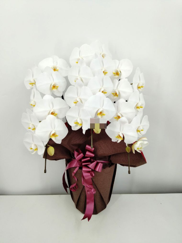 胡蝶蘭の実際にお届けした写真です。花秘書では発送前に写真をメールで送信致しますので安心して大切な顧客や取引様へのギフトにご利用頂けます。
