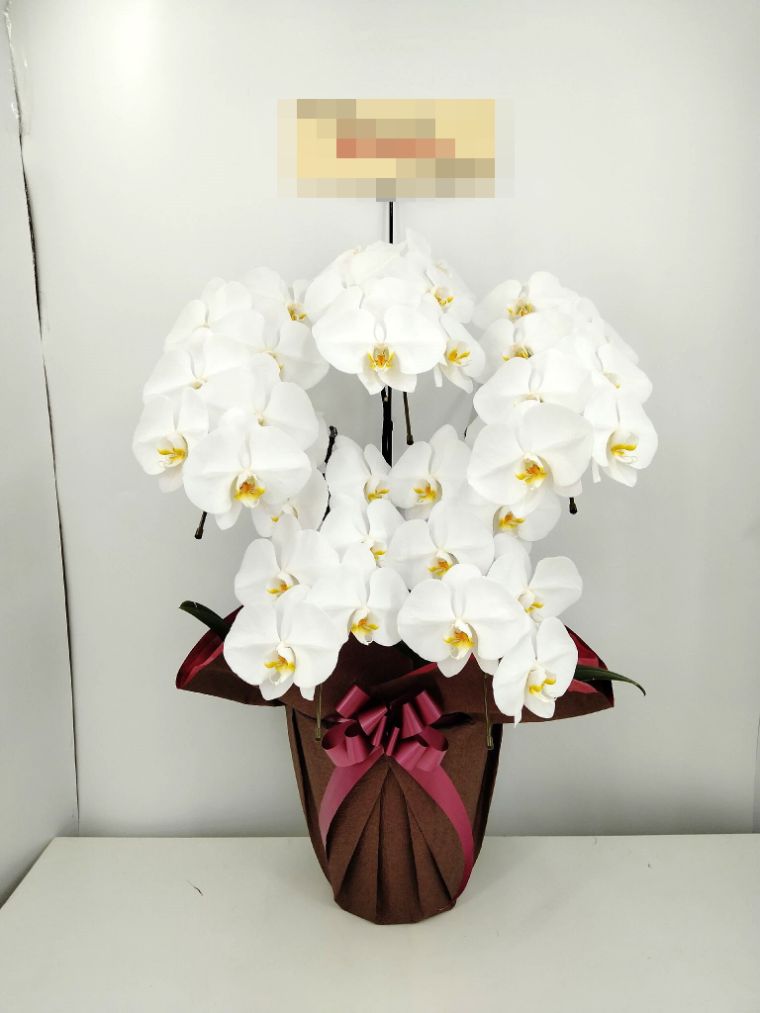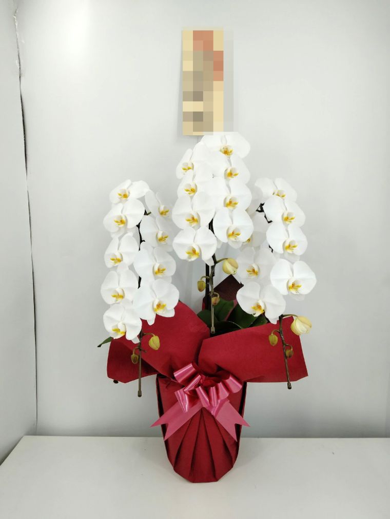 胡蝶蘭の実際にお届けした写真です。花秘書では発送前に写真をメールで送信致しますので安心して大切な顧客や取引様へのギフトにご利用頂けます。