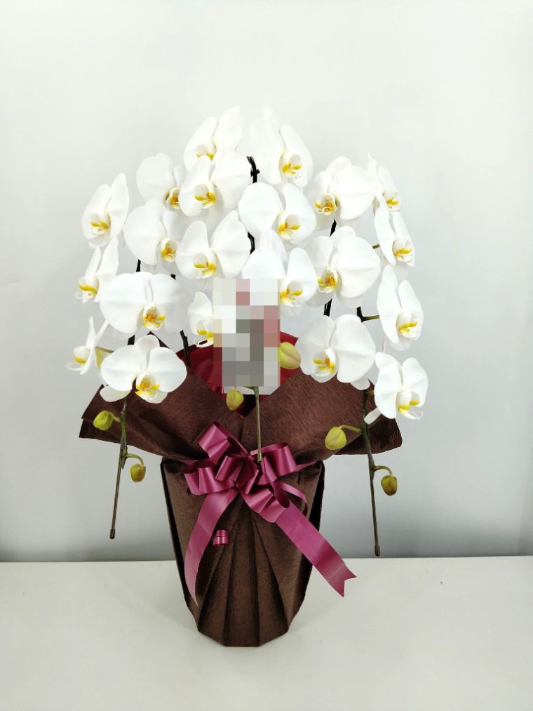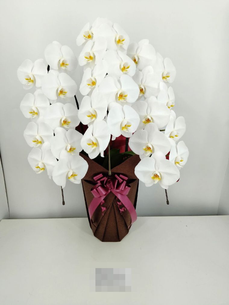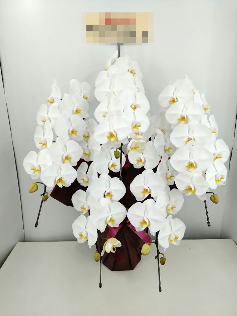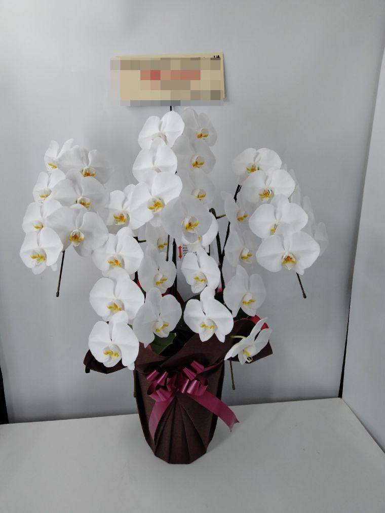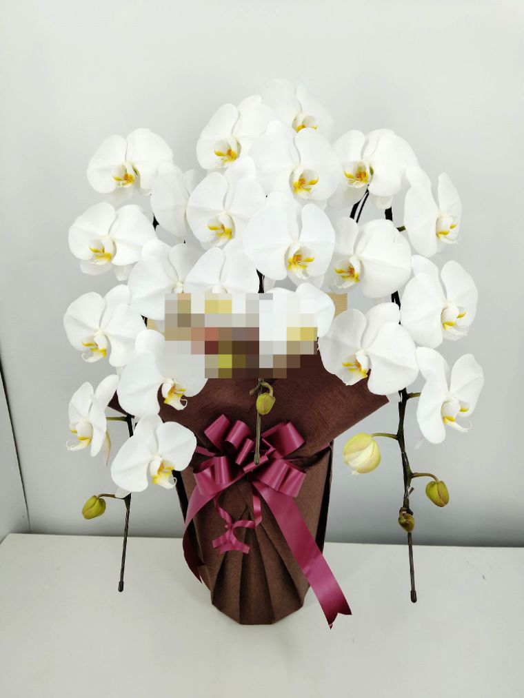 胡蝶蘭の実際にお届けした写真です。花秘書では発送前に写真をメールで送信致しますので安心して大切な顧客や取引様へのギフトにご利用頂けます。