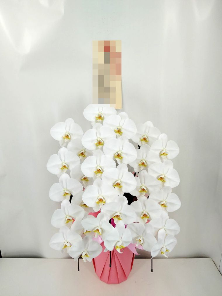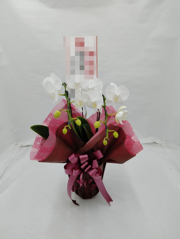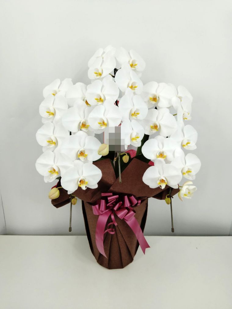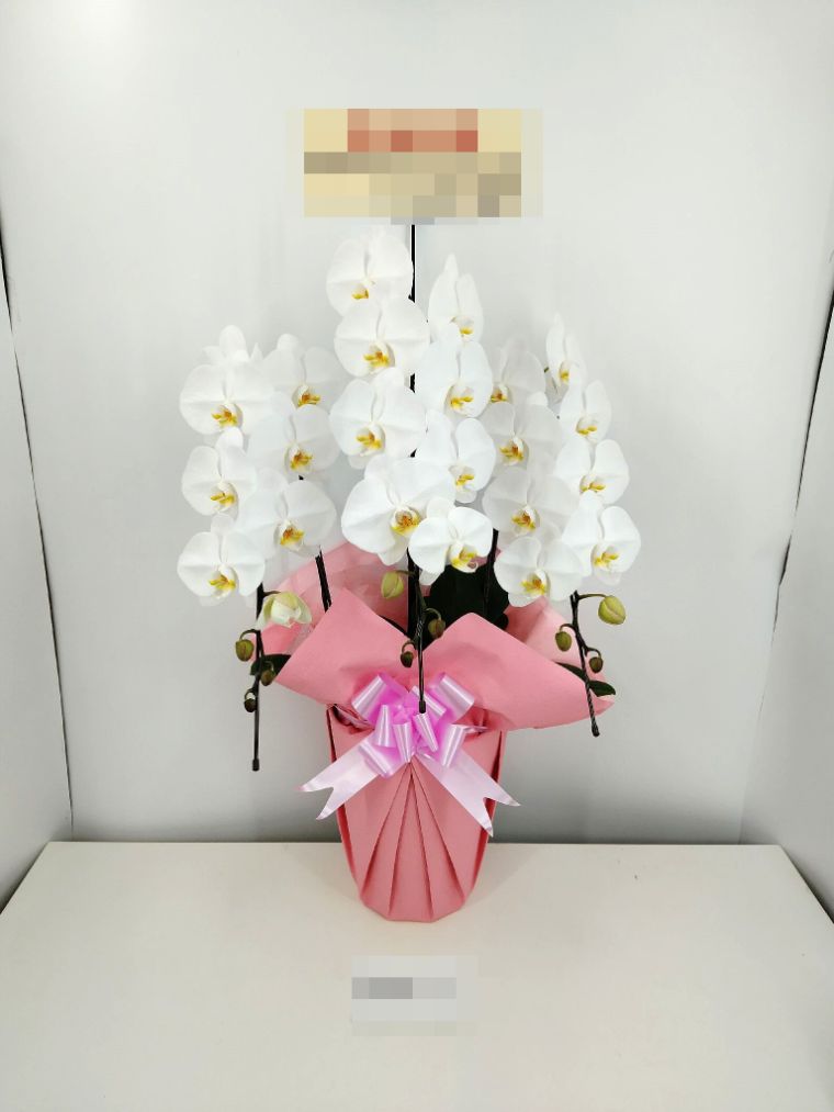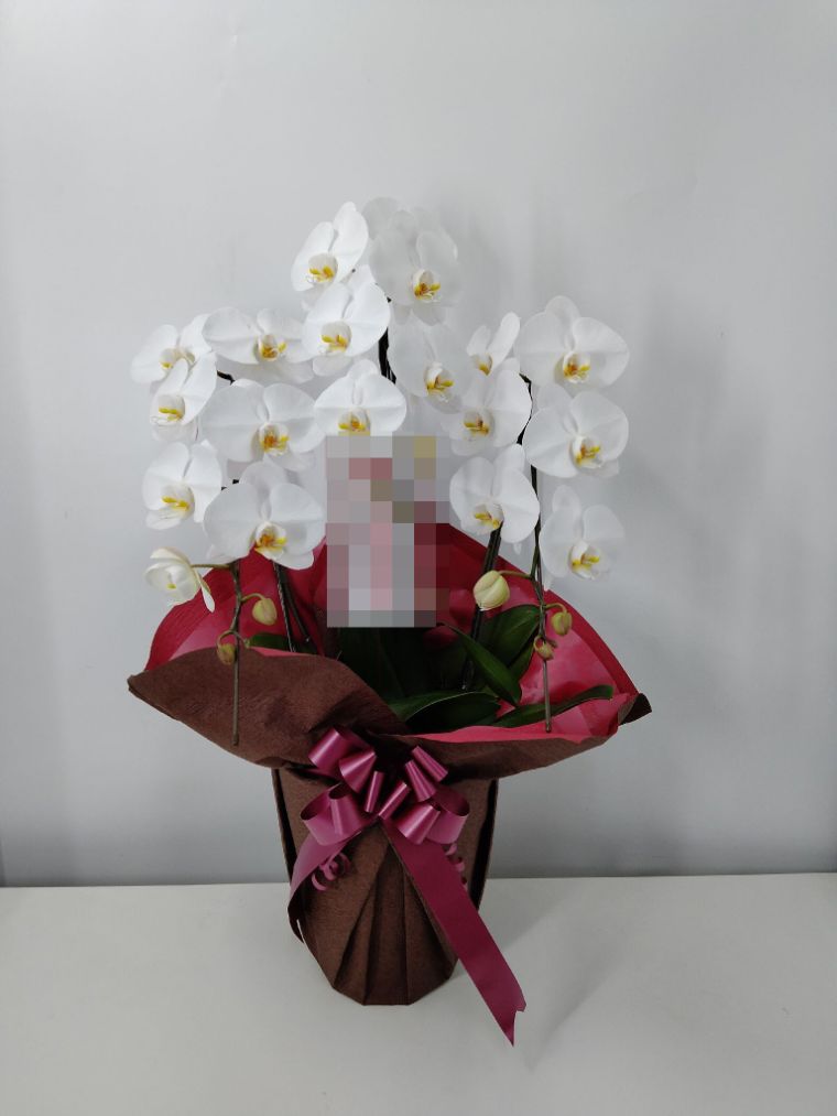 胡蝶蘭の実際にお届けした写真です。花秘書では発送前に写真をメールで送信致しますので安心して大切な顧客や取引様へのギフトにご利用頂けます。