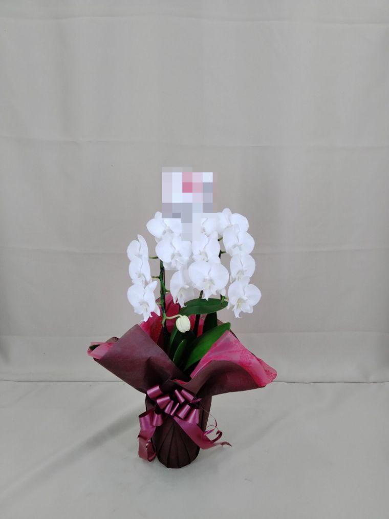 胡蝶蘭の実際にお届けした写真です。花秘書では発送前に写真をメールで送信致しますので安心して大切な顧客や取引様へのギフトにご利用頂けます。