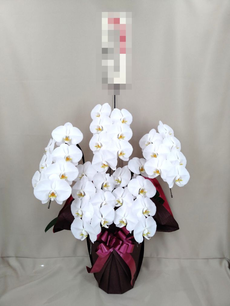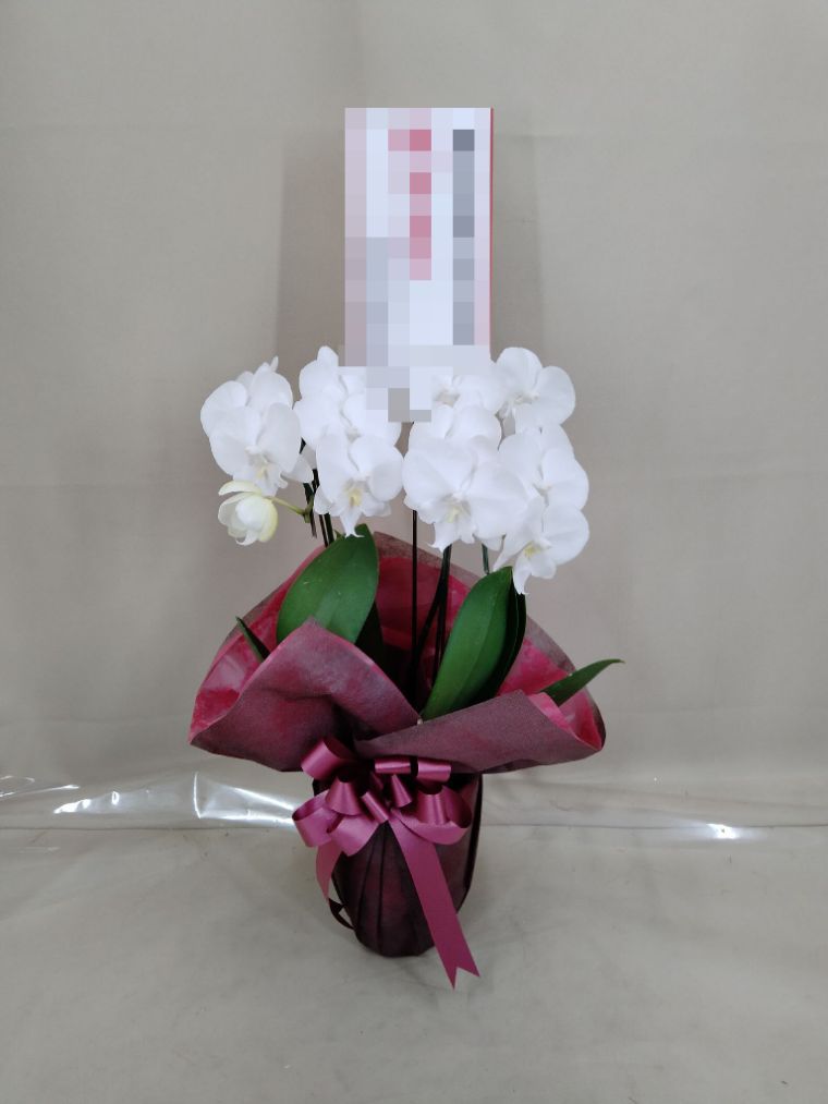 胡蝶蘭の実際にお届けした写真です。花秘書では発送前に写真をメールで送信致しますので安心して大切な顧客や取引様へのギフトにご利用頂けます。