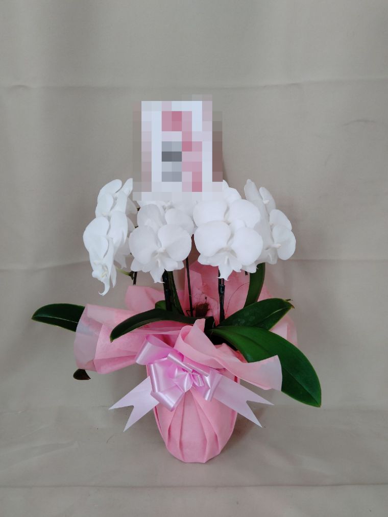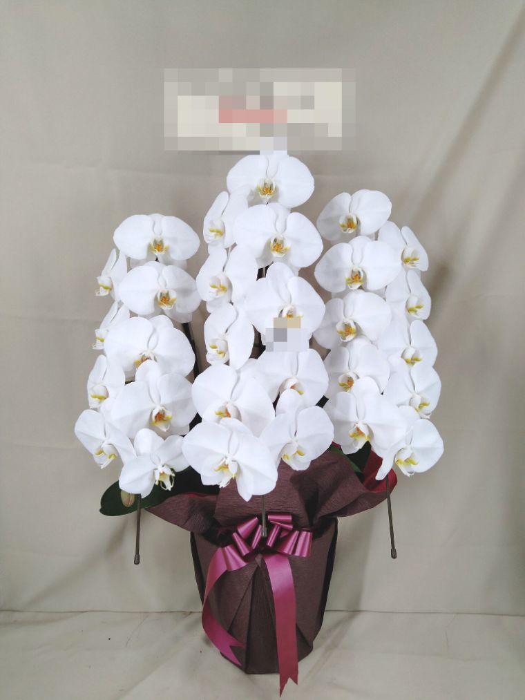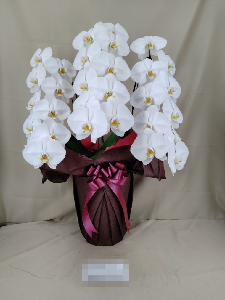 胡蝶蘭の実際にお届けした写真です。花秘書では発送前に写真をメールで送信致しますので安心して大切な顧客や取引様へのギフトにご利用頂けます。