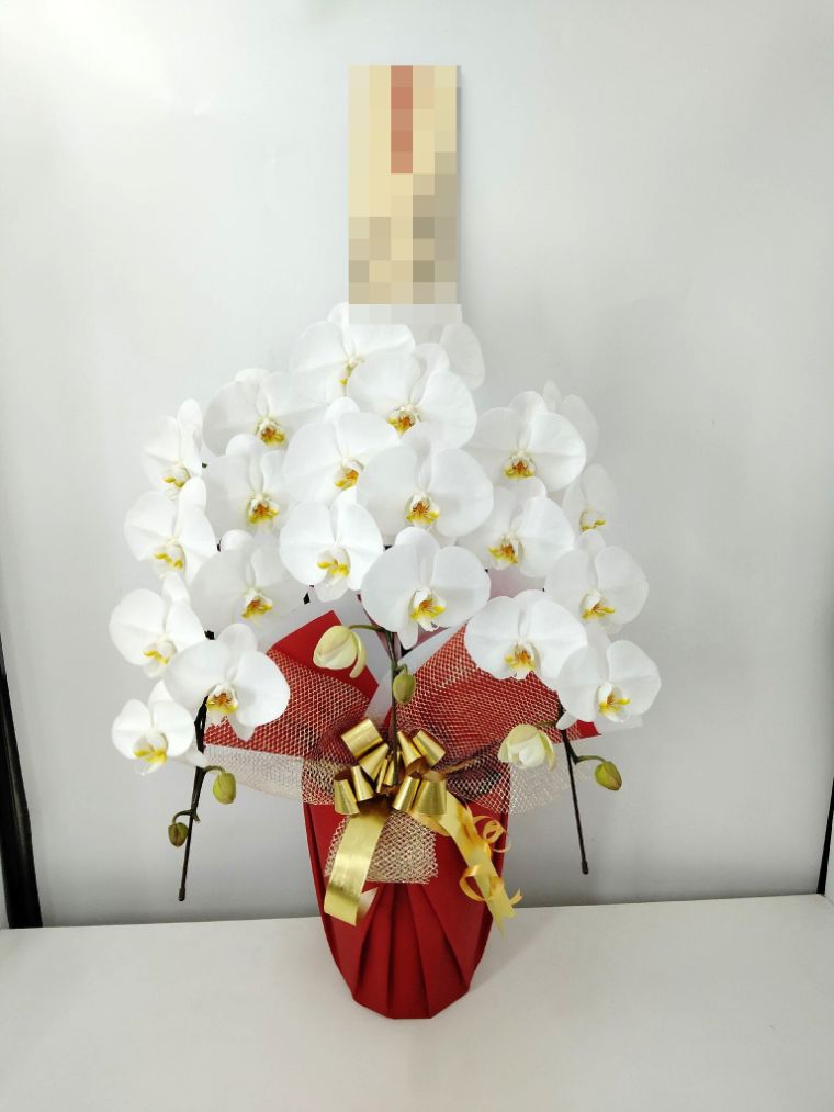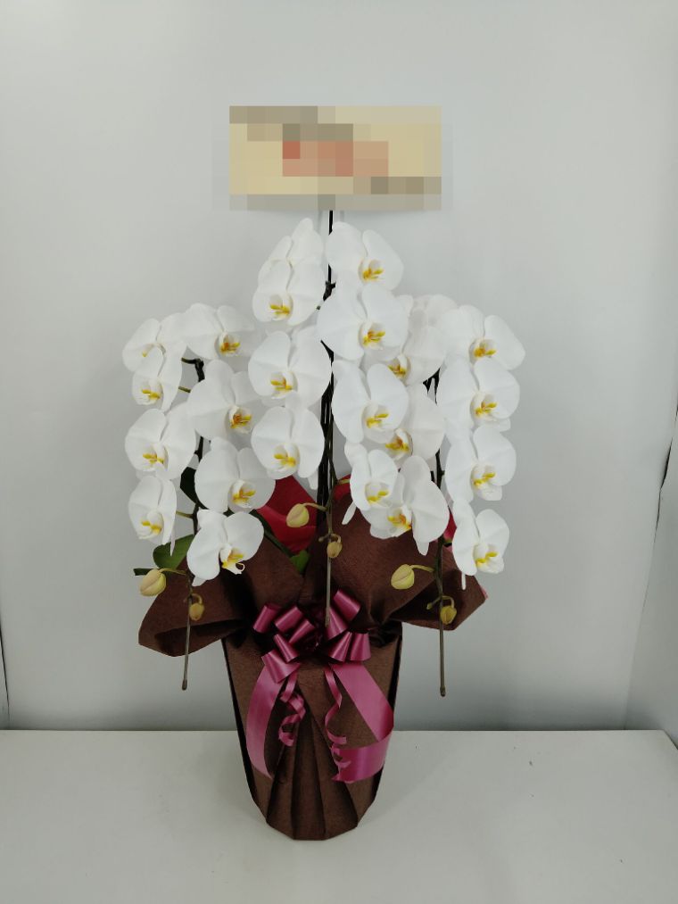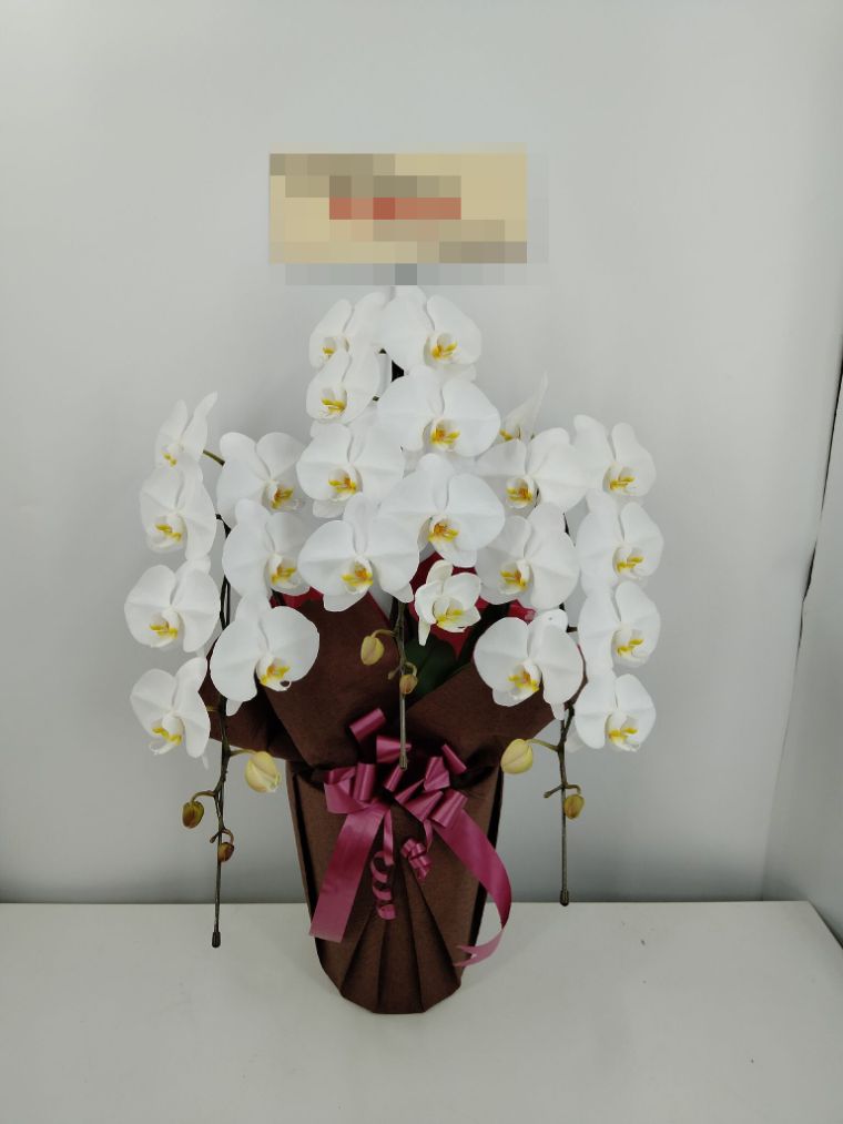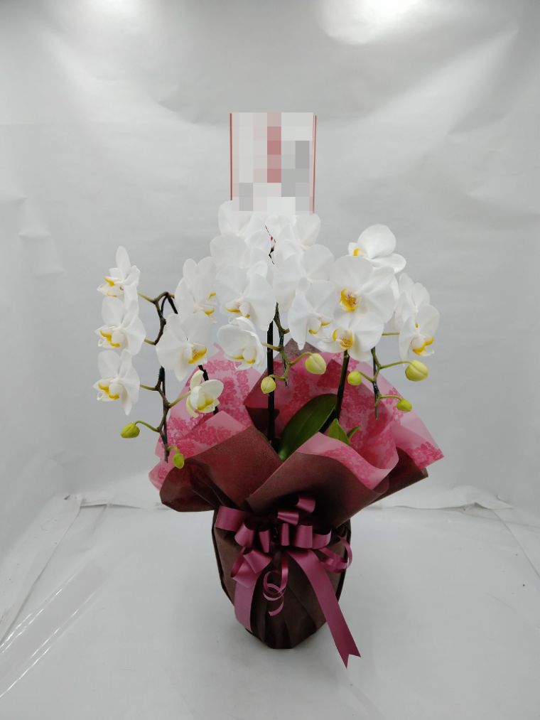胡蝶蘭の実際にお届けした写真です。花秘書では発送前に写真をメールで送信致しますので安心して大切な顧客や取引様へのギフトにご利用頂けます。