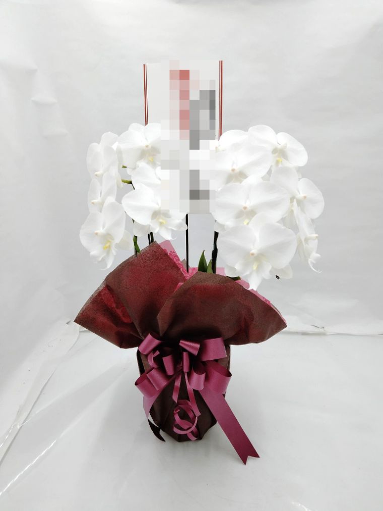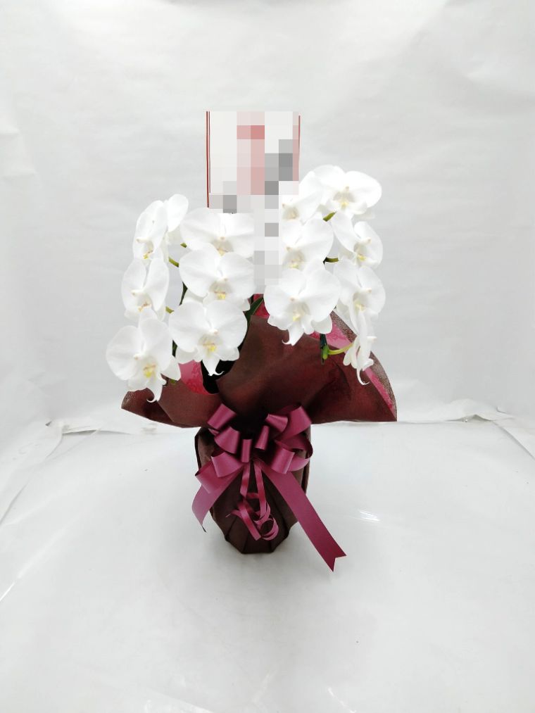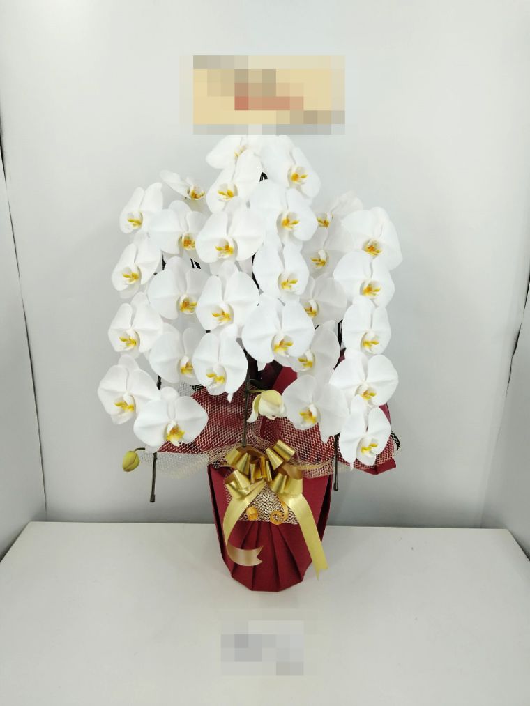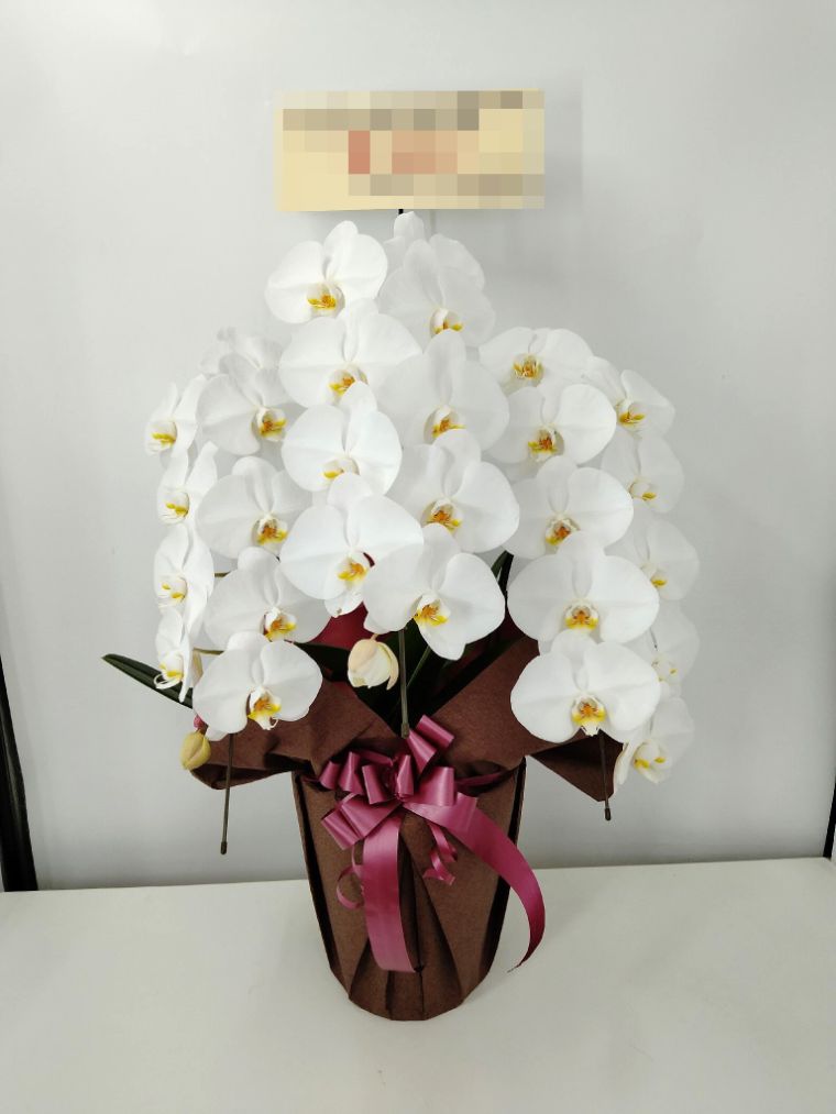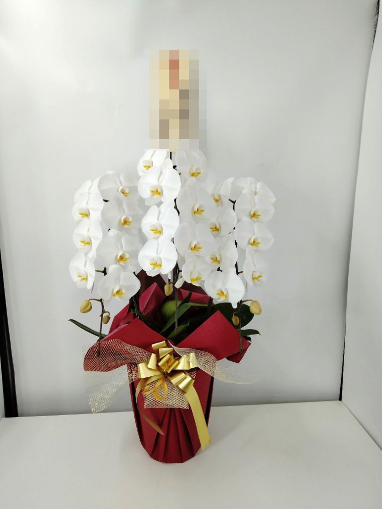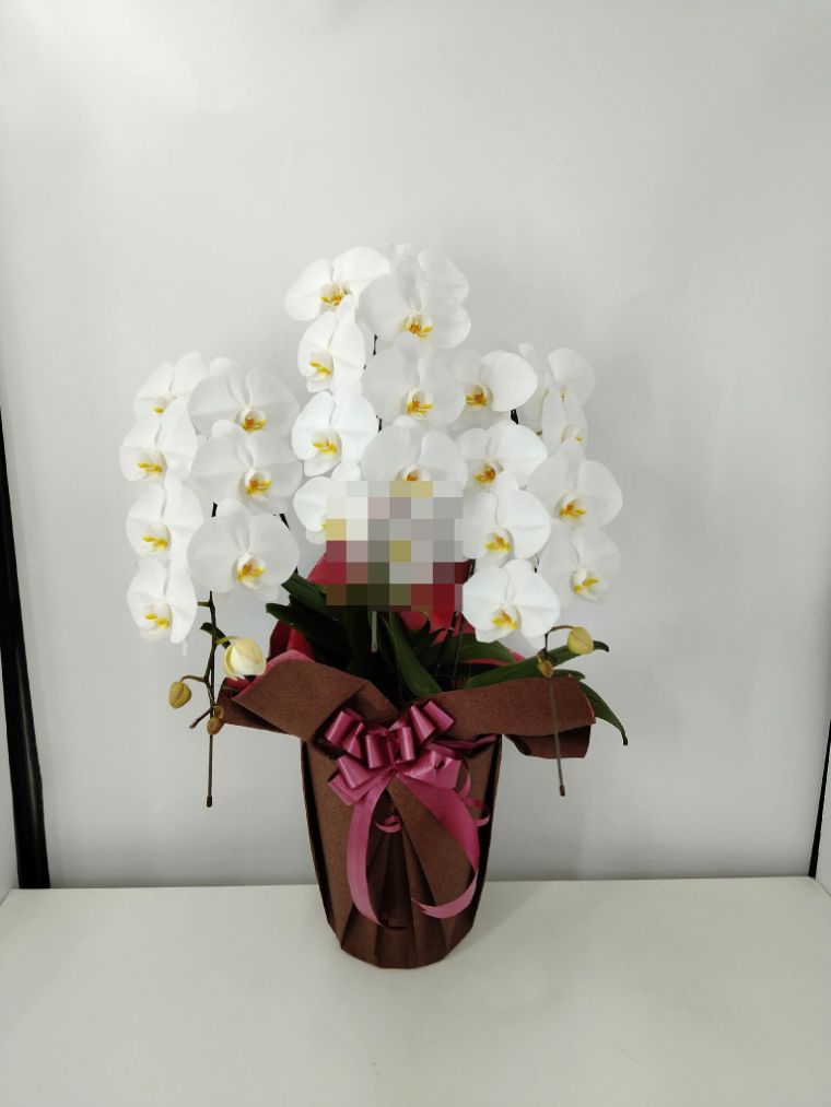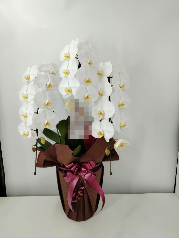 胡蝶蘭の実際にお届けした写真です。花秘書では発送前に写真をメールで送信致しますので安心して大切な顧客や取引様へのギフトにご利用頂けます。