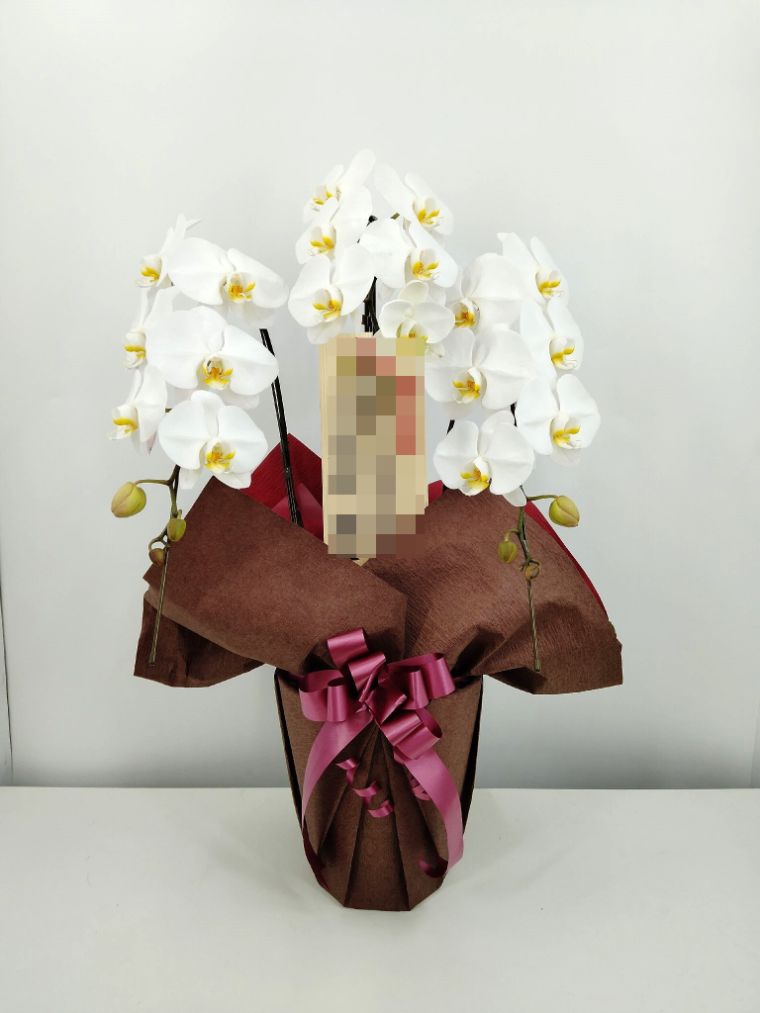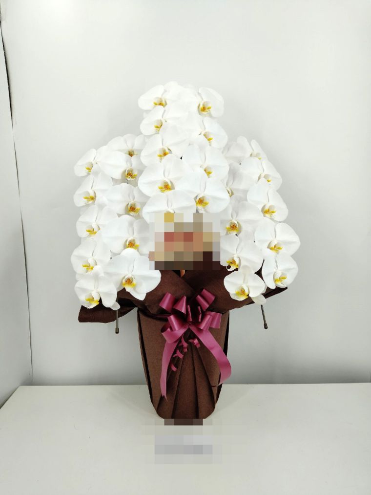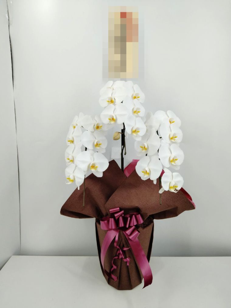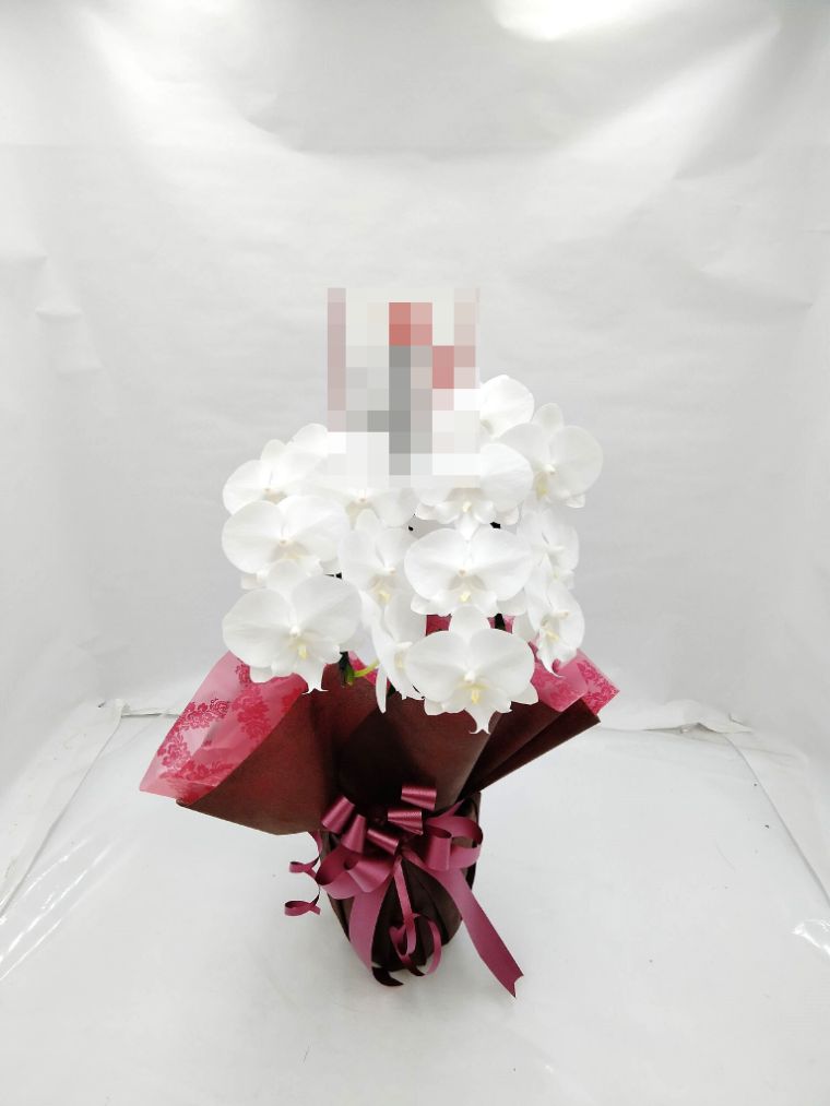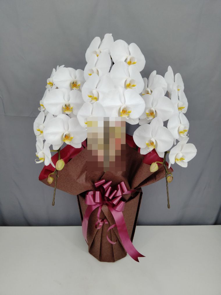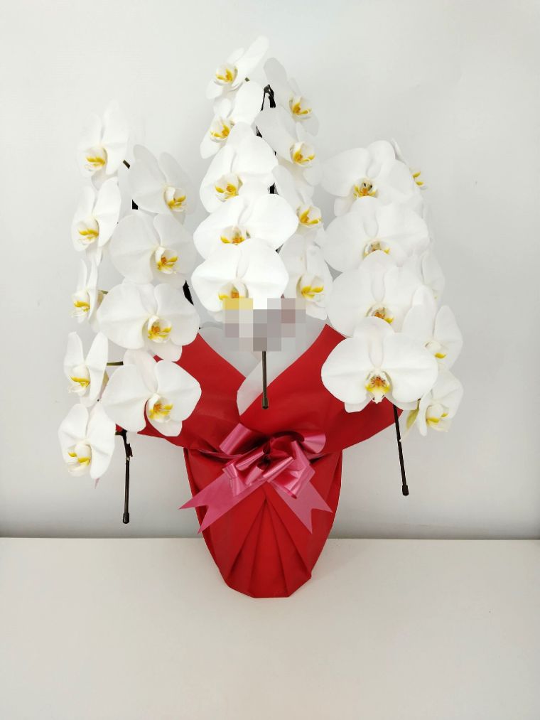 胡蝶蘭の実際にお届けした写真です。花秘書では発送前に写真をメールで送信致しますので安心して大切な顧客や取引様へのギフトにご利用頂けます。