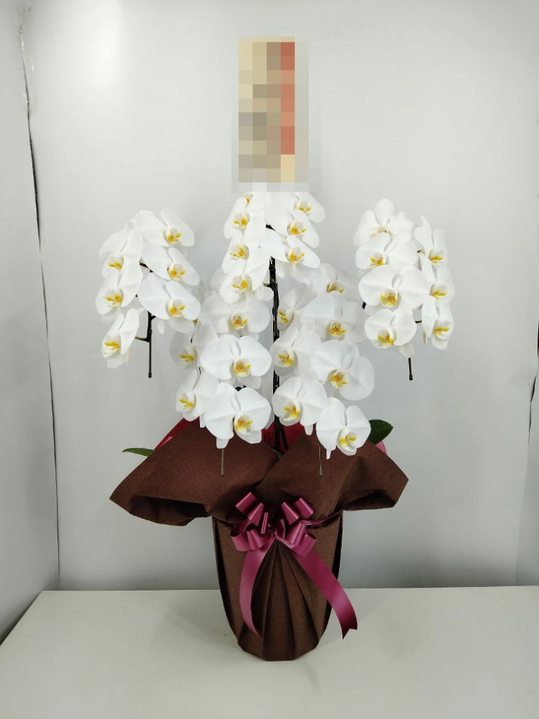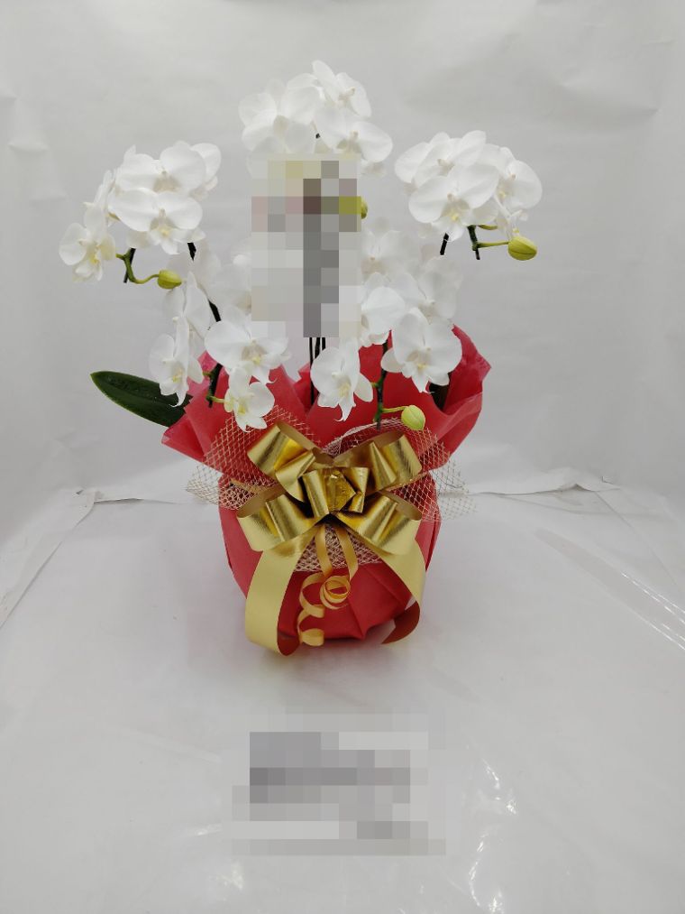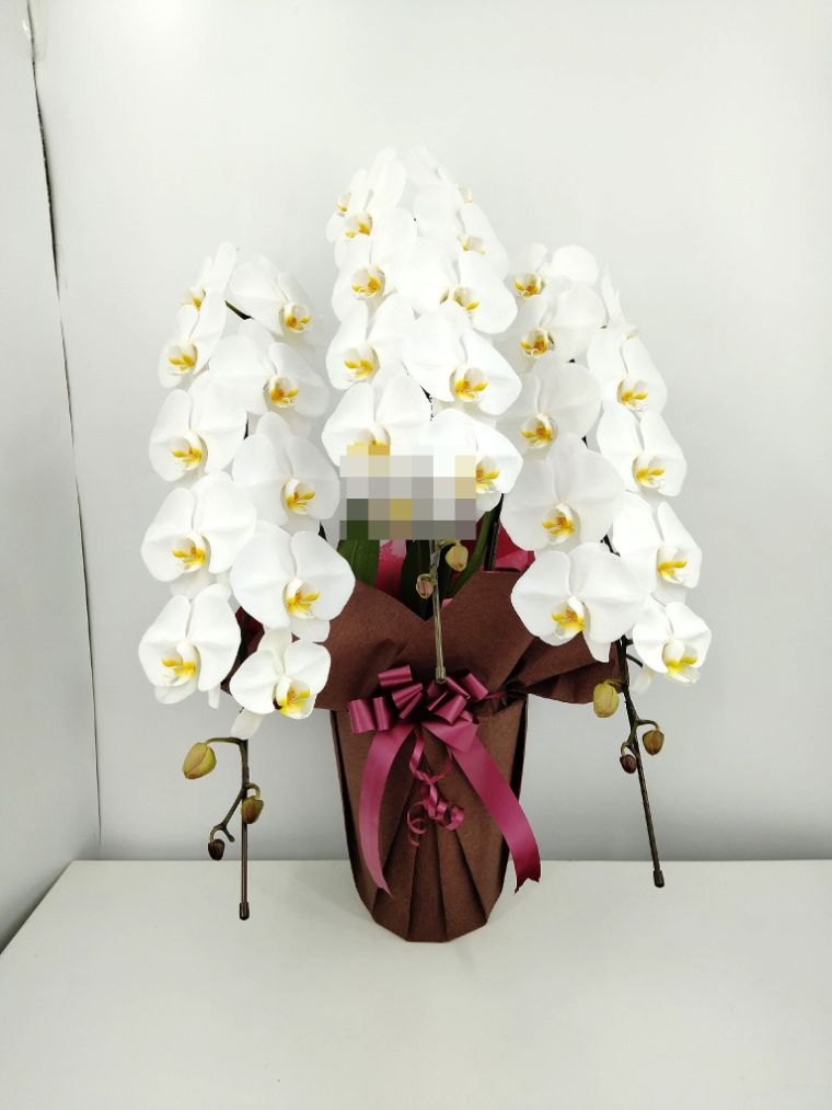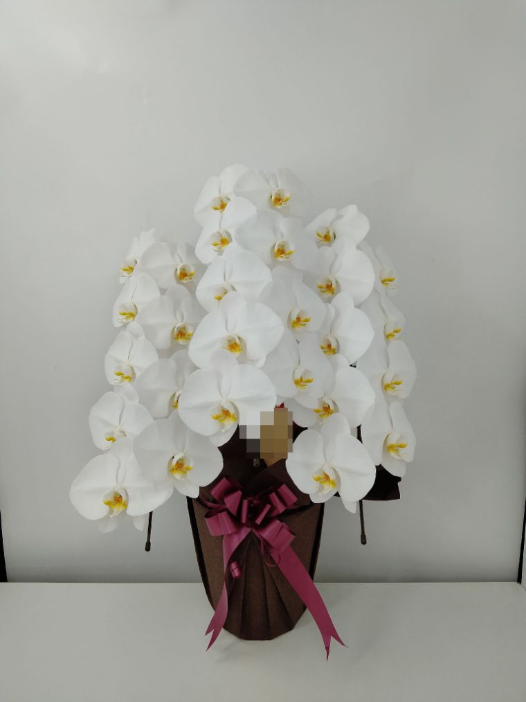 胡蝶蘭の実際にお届けした写真です。花秘書では発送前に写真をメールで送信致しますので安心して大切な顧客や取引様へのギフトにご利用頂けます。