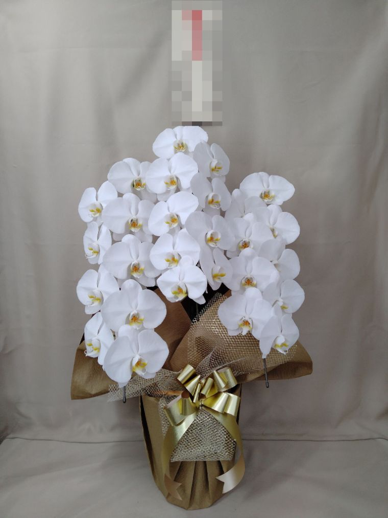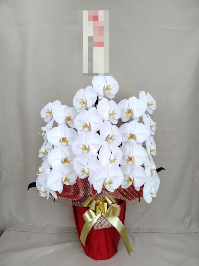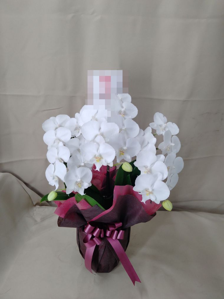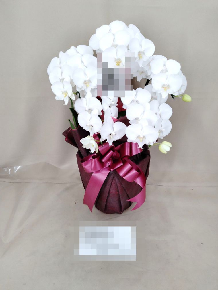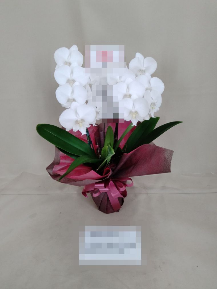 胡蝶蘭の実際にお届けした写真です。花秘書では発送前に写真をメールで送信致しますので安心して大切な顧客や取引様へのギフトにご利用頂けます。