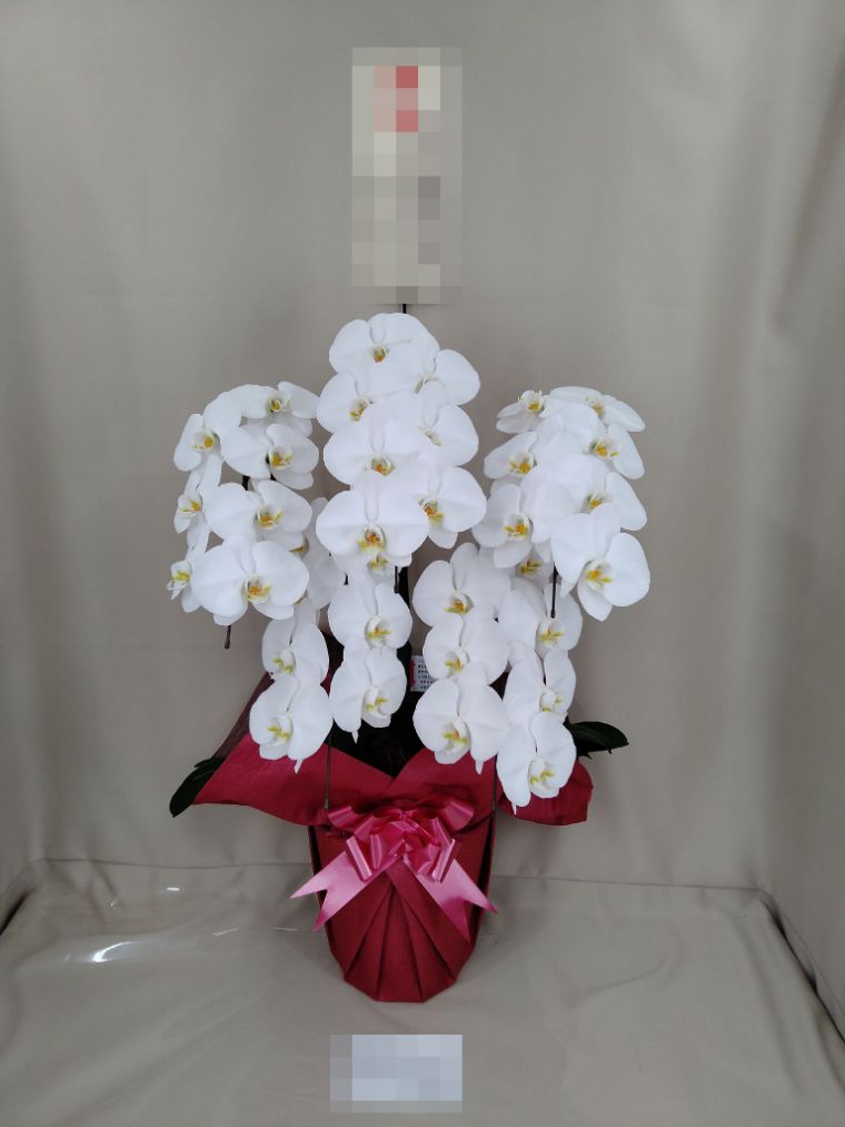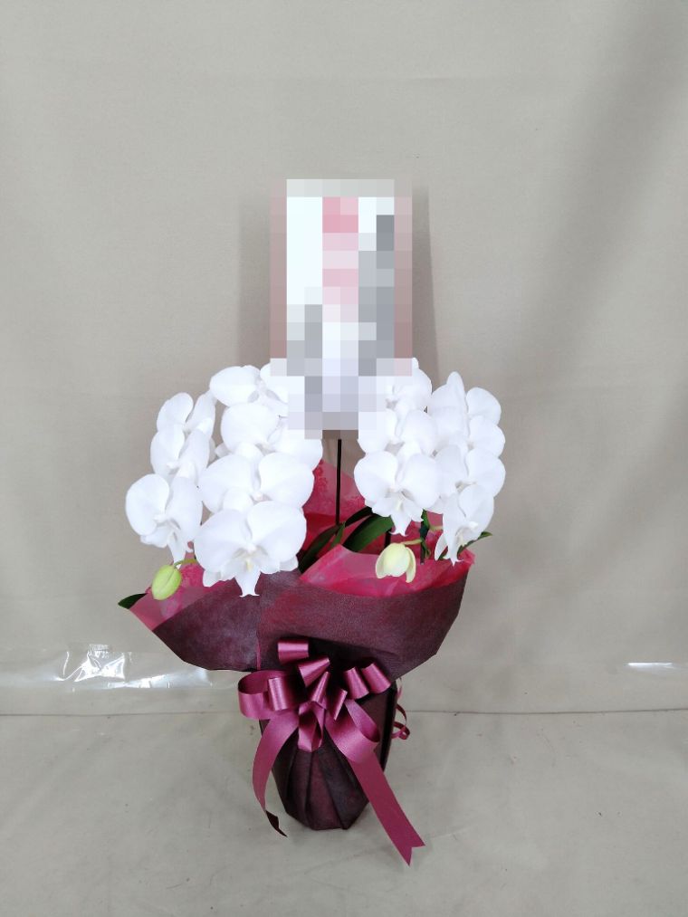 胡蝶蘭の実際にお届けした写真です。花秘書では発送前に写真をメールで送信致しますので安心して大切な顧客や取引様へのギフトにご利用頂けます。