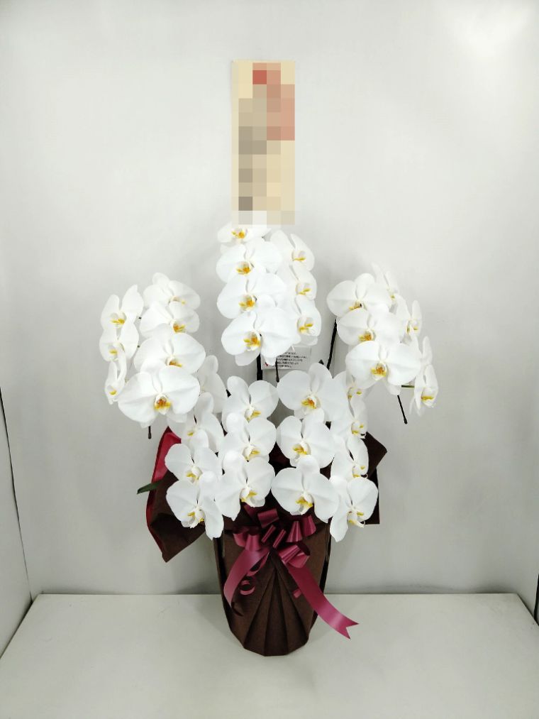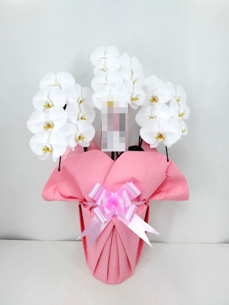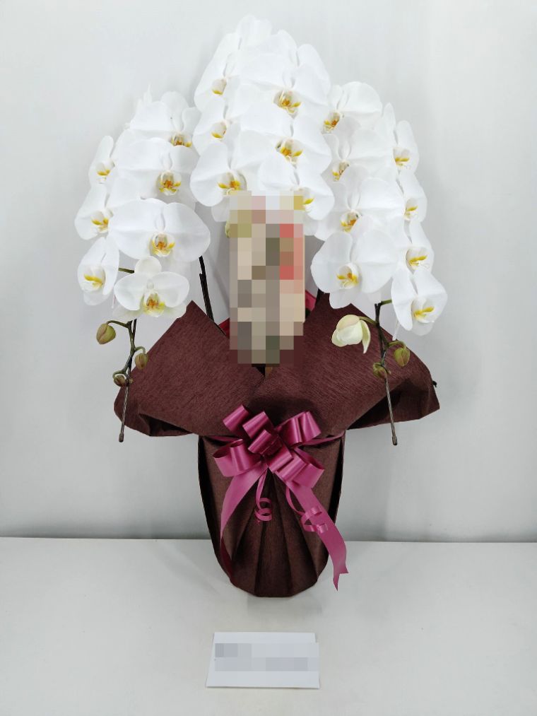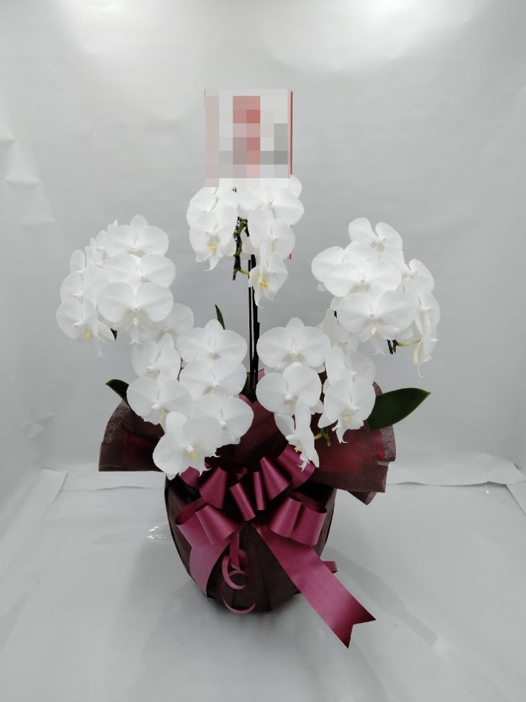 胡蝶蘭の実際にお届けした写真です。花秘書では発送前に写真をメールで送信致しますので安心して大切な顧客や取引様へのギフトにご利用頂けます。