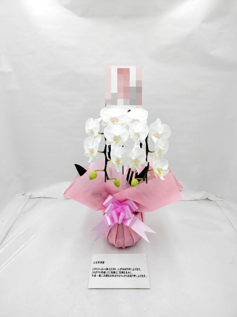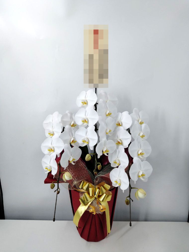 胡蝶蘭の実際にお届けした写真です。花秘書では発送前に写真をメールで送信致しますので安心して大切な顧客や取引様へのギフトにご利用頂けます。