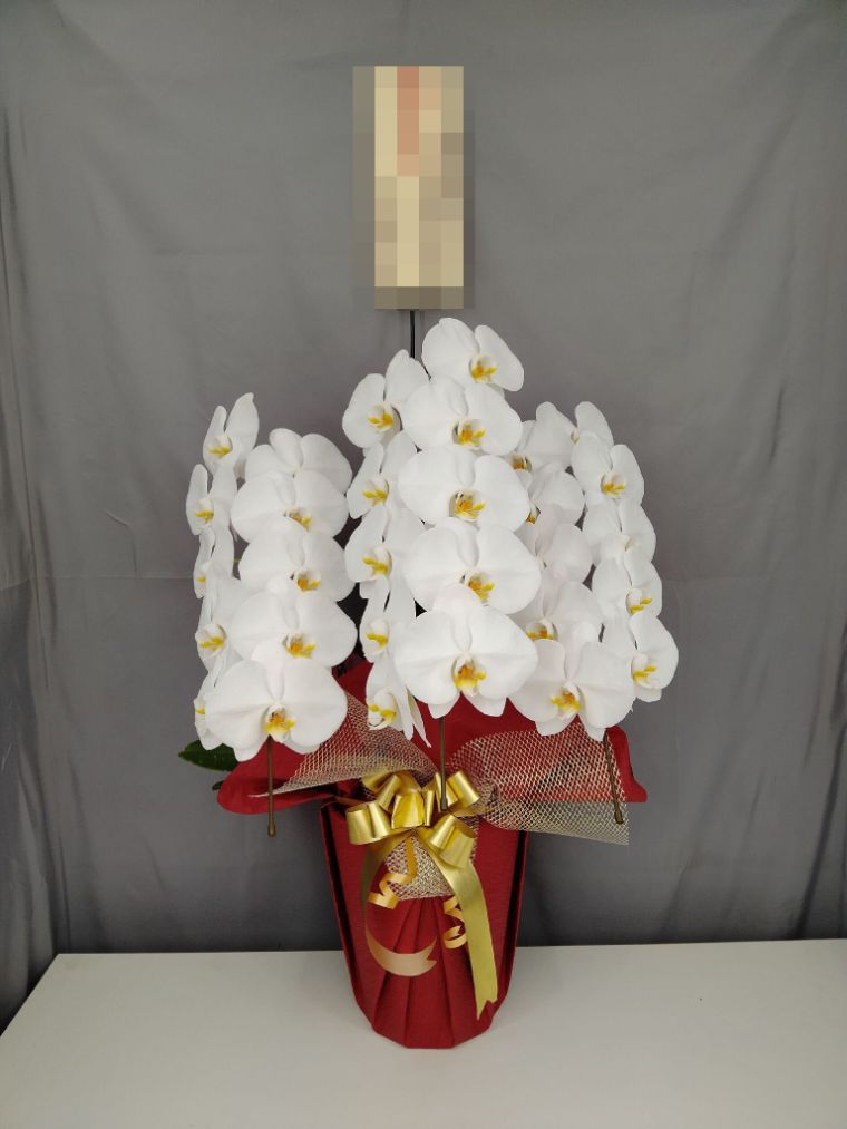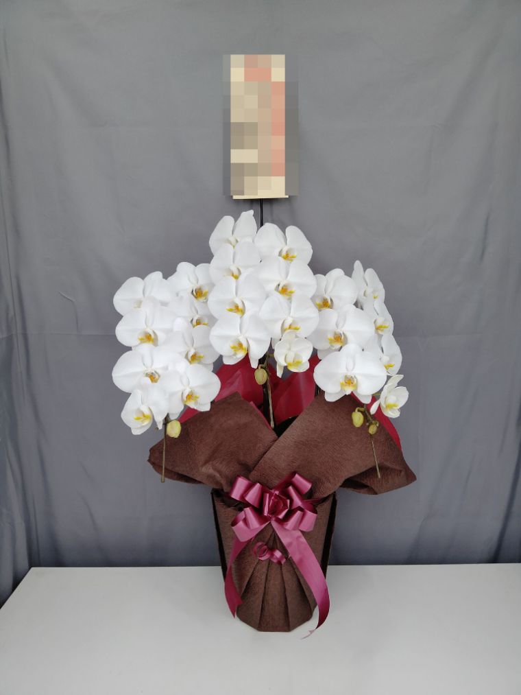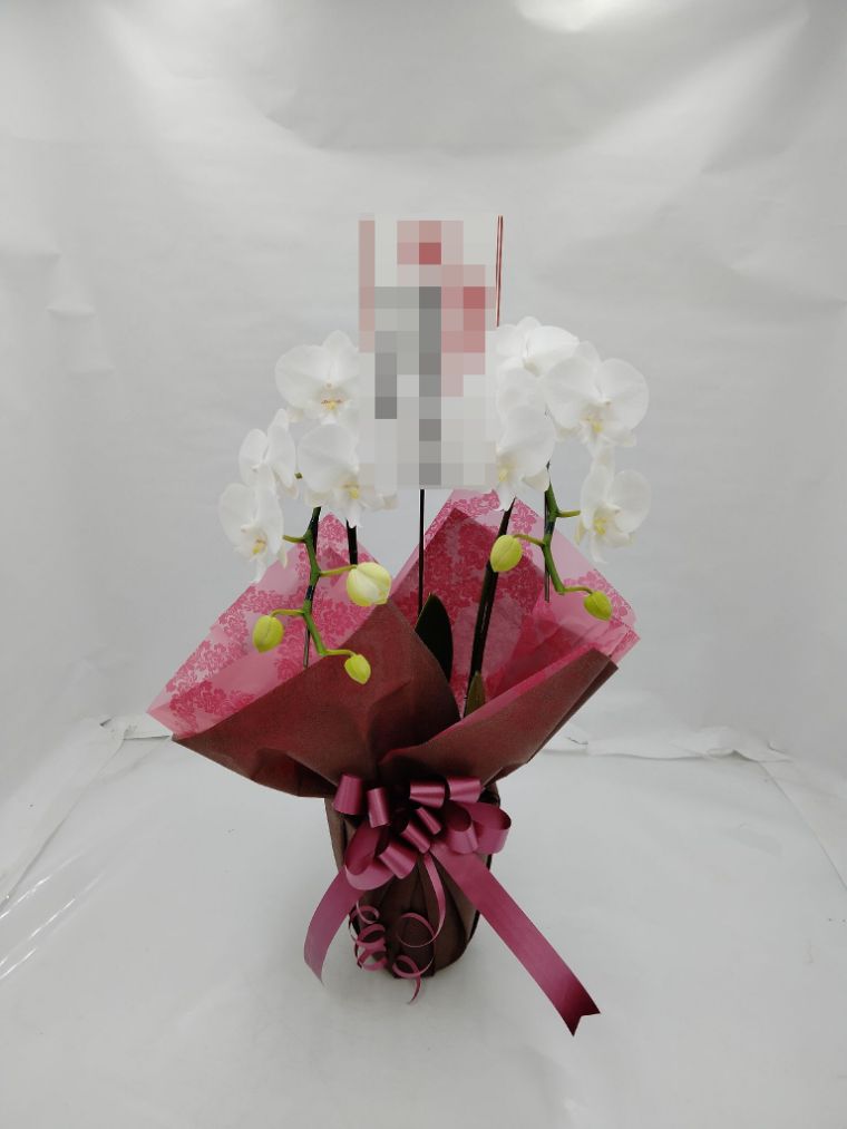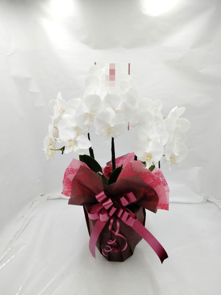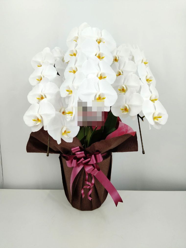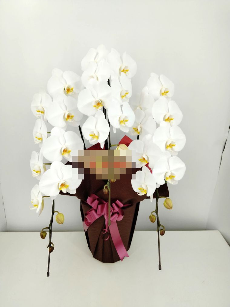 胡蝶蘭の実際にお届けした写真です。花秘書では発送前に写真をメールで送信致しますので安心して大切な顧客や取引様へのギフトにご利用頂けます。