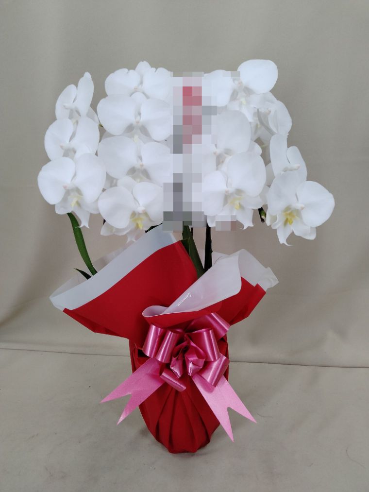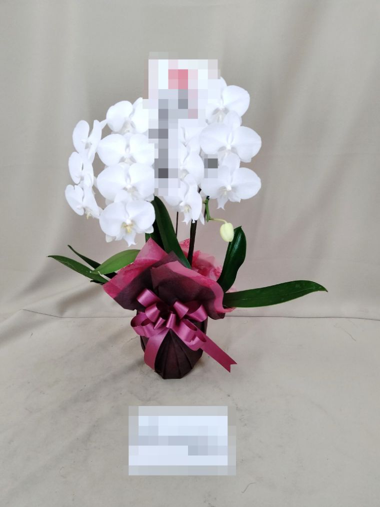 胡蝶蘭の実際にお届けした写真です。花秘書では発送前に写真をメールで送信致しますので安心して大切な顧客や取引様へのギフトにご利用頂けます。