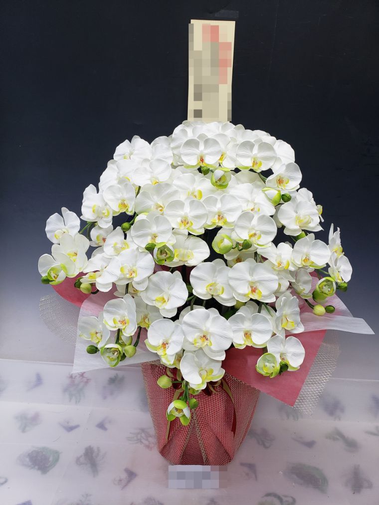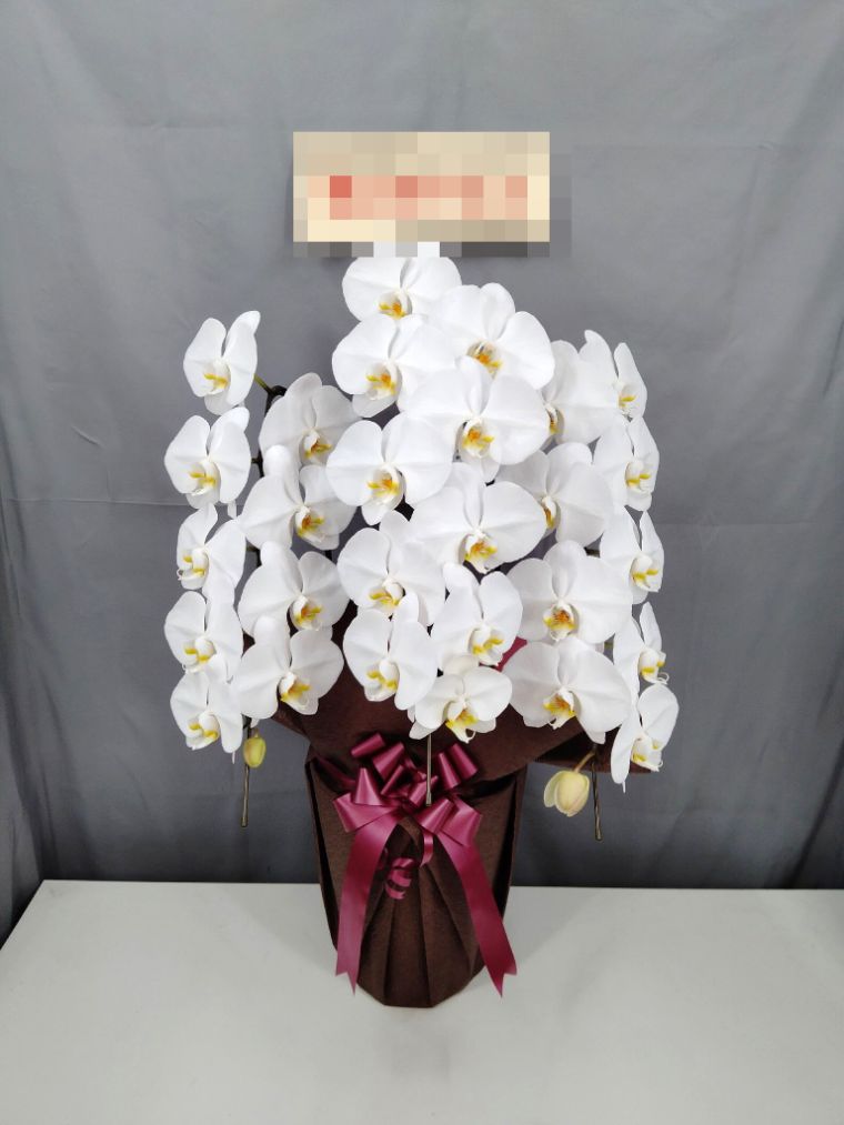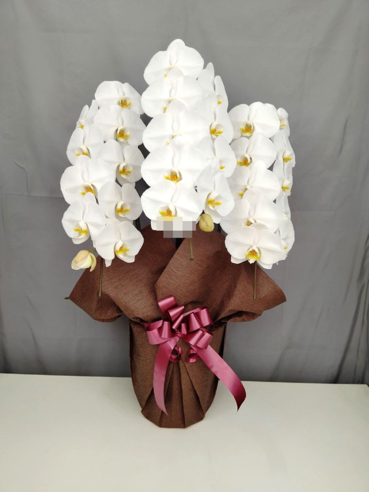 胡蝶蘭の実際にお届けした写真です。花秘書では発送前に写真をメールで送信致しますので安心して大切な顧客や取引様へのギフトにご利用頂けます。
