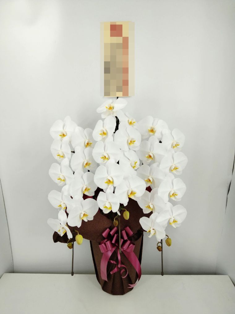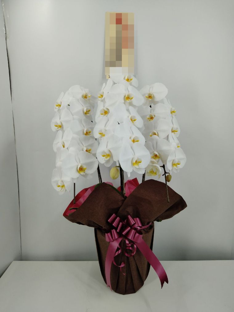 胡蝶蘭の実際にお届けした写真です。花秘書では発送前に写真をメールで送信致しますので安心して大切な顧客や取引様へのギフトにご利用頂けます。