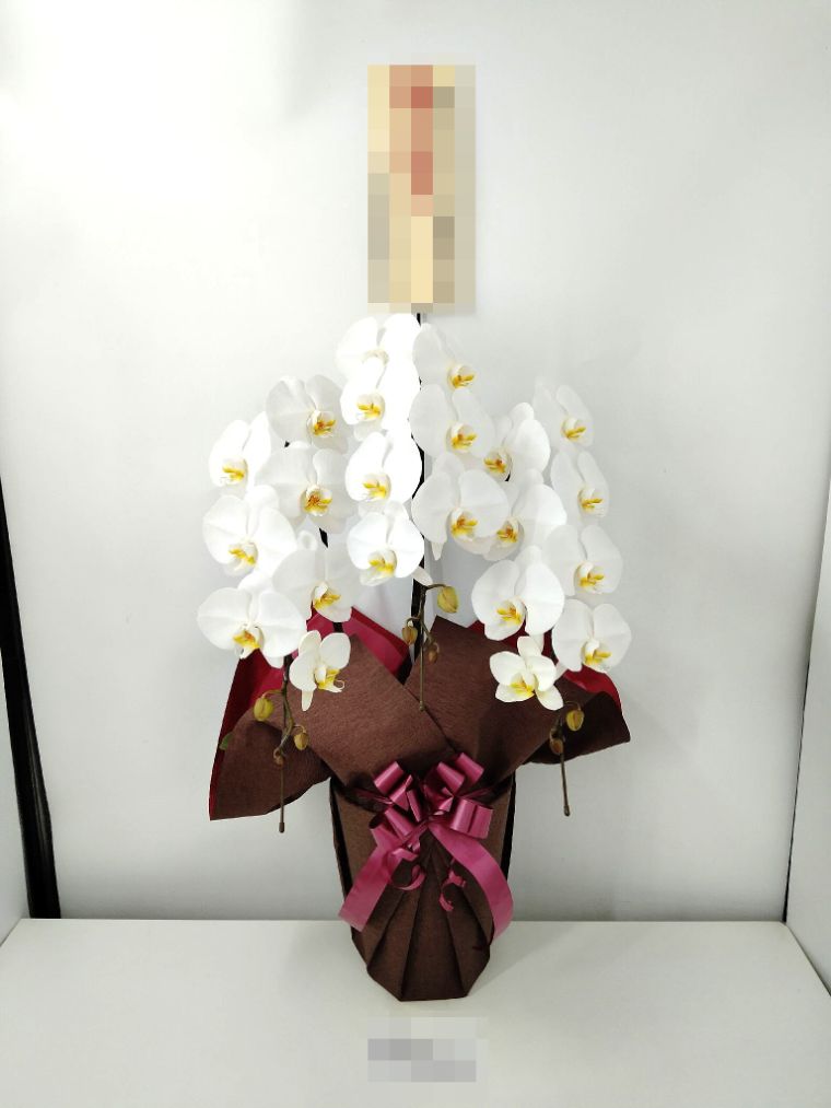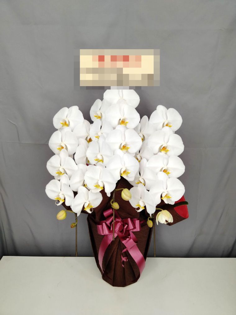 胡蝶蘭の実際にお届けした写真です。花秘書では発送前に写真をメールで送信致しますので安心して大切な顧客や取引様へのギフトにご利用頂けます。