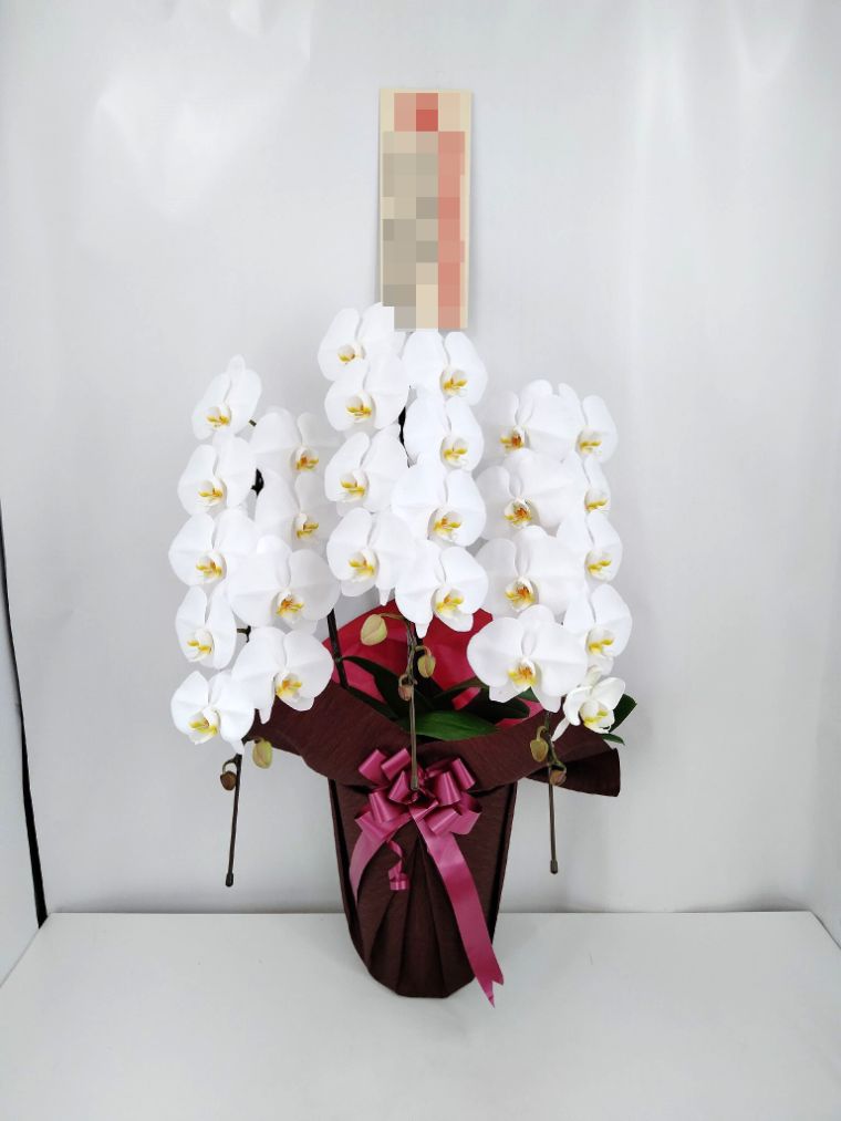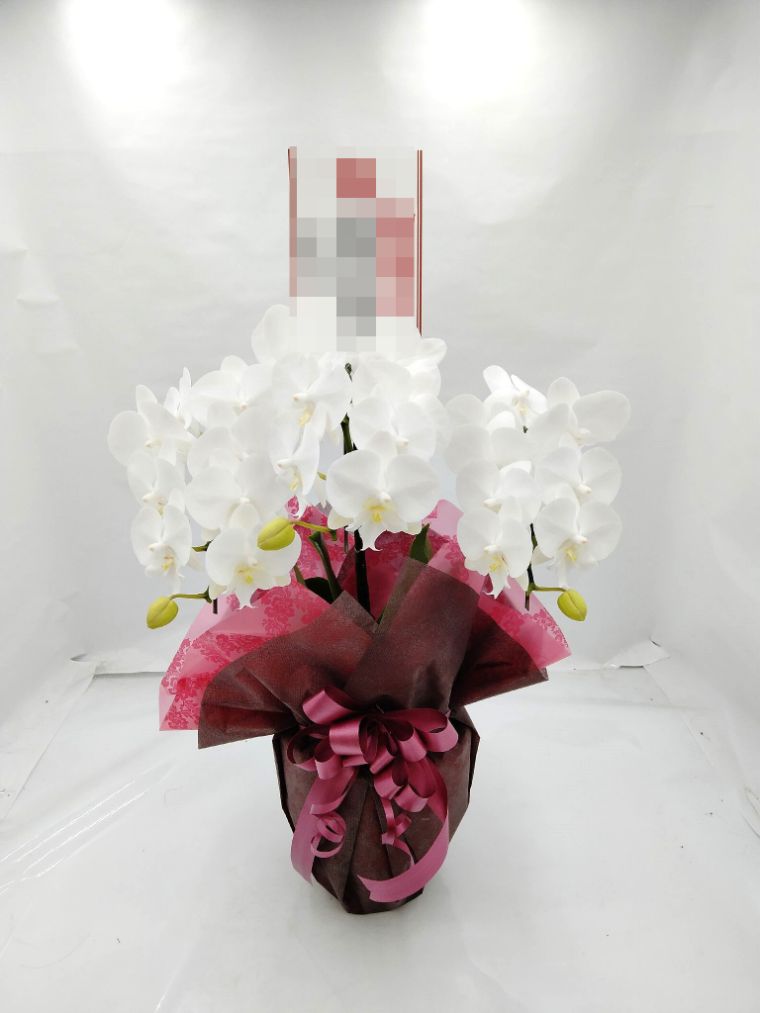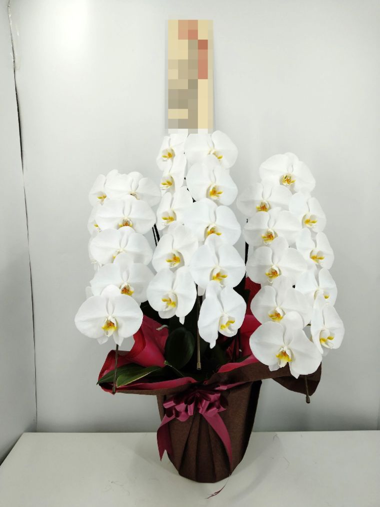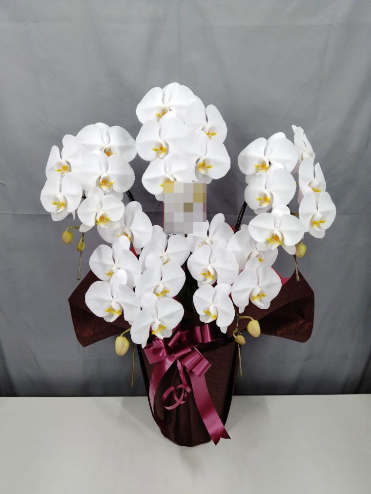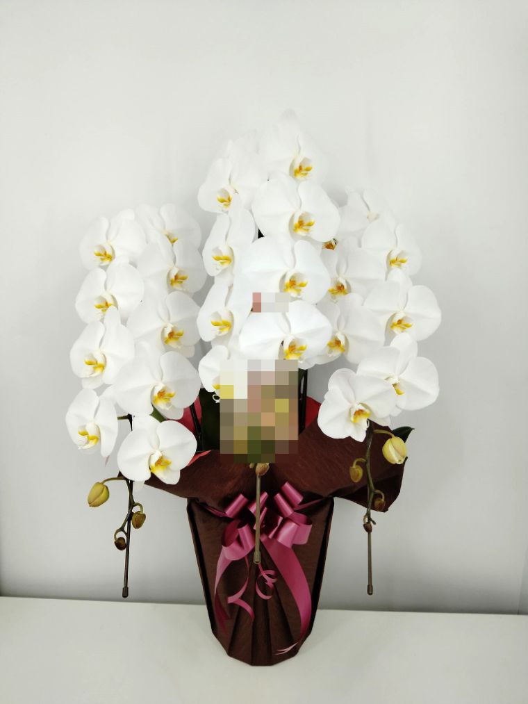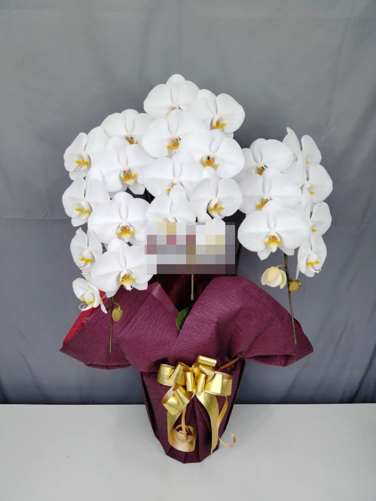 胡蝶蘭の実際にお届けした写真です。花秘書では発送前に写真をメールで送信致しますので安心して大切な顧客や取引様へのギフトにご利用頂けます。