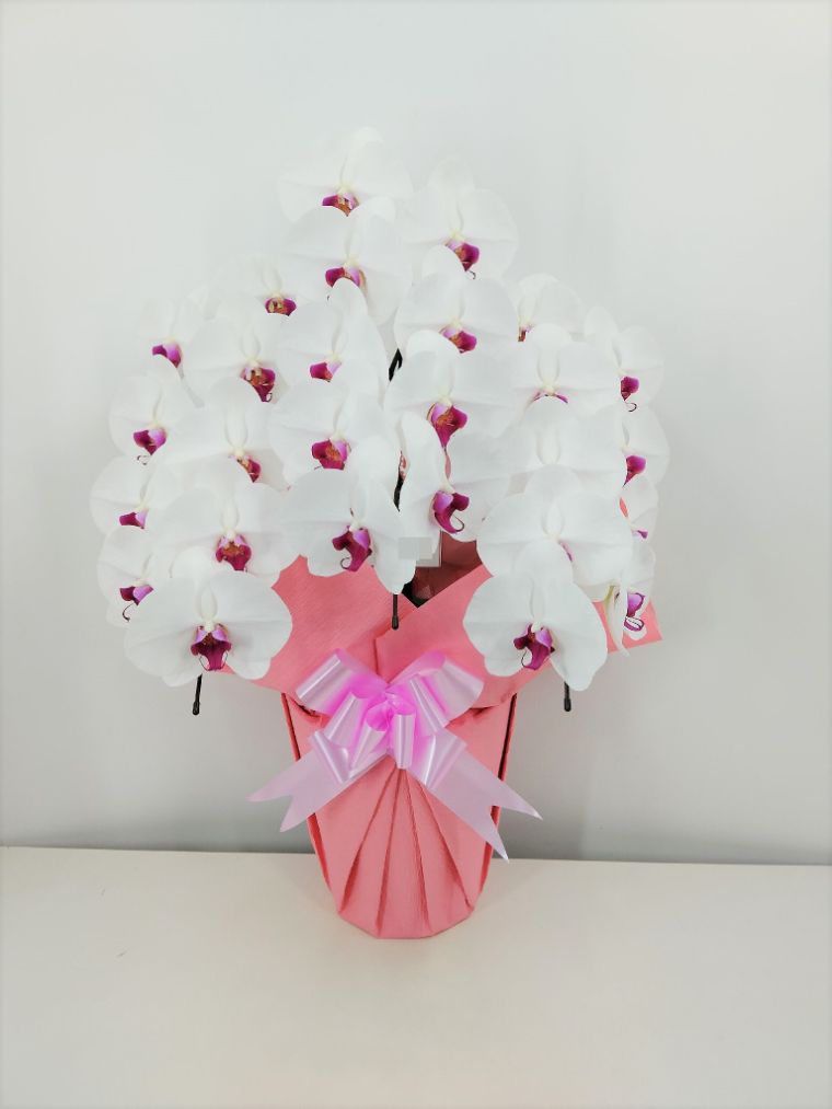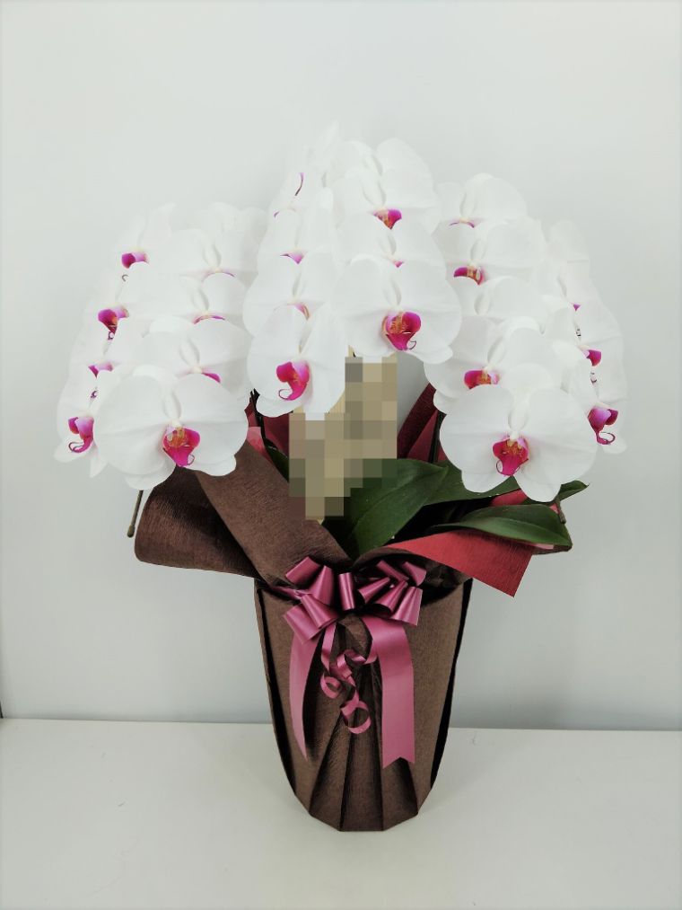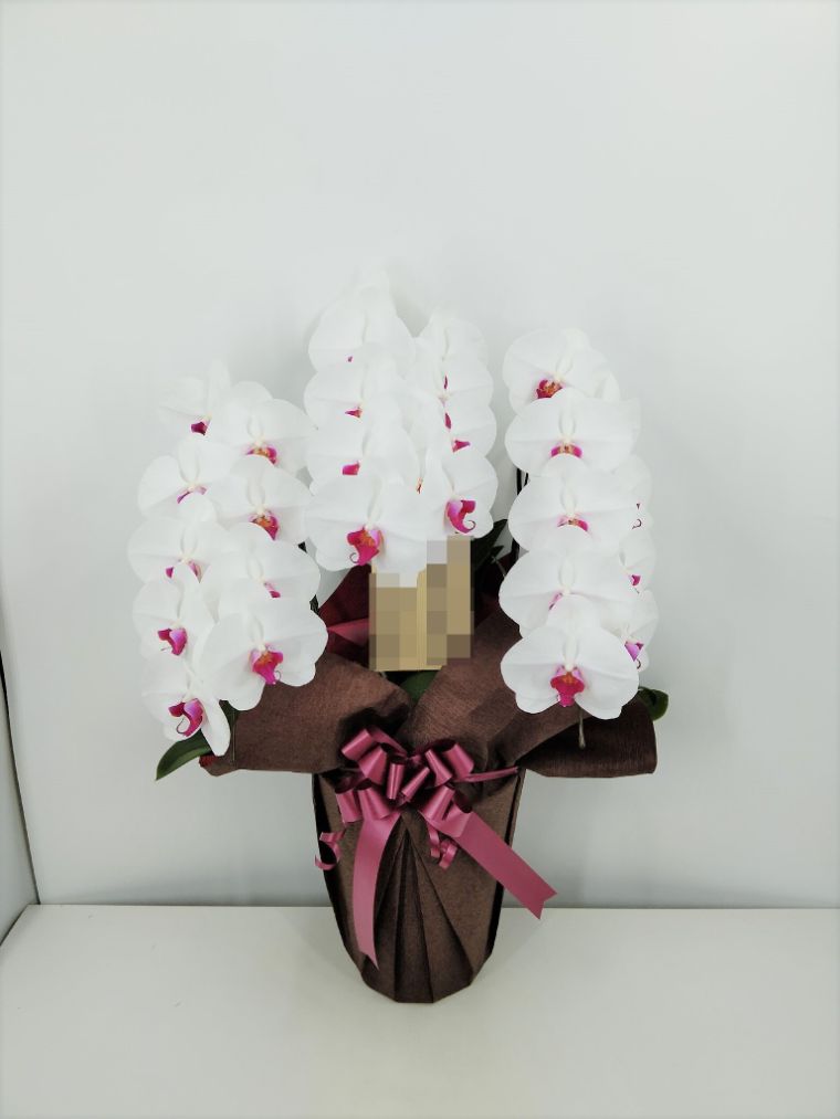 胡蝶蘭の実際にお届けした写真です。花秘書では発送前に写真をメールで送信致しますので安心して大切な顧客や取引様へのギフトにご利用頂けます。