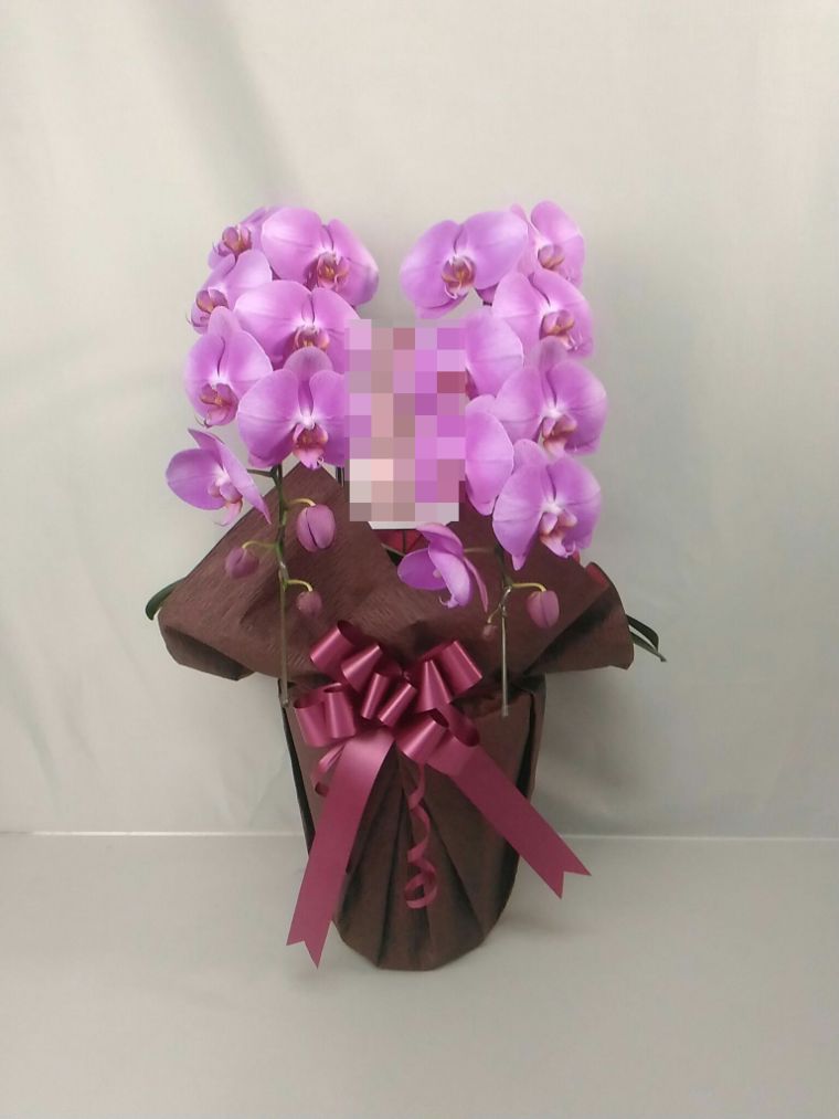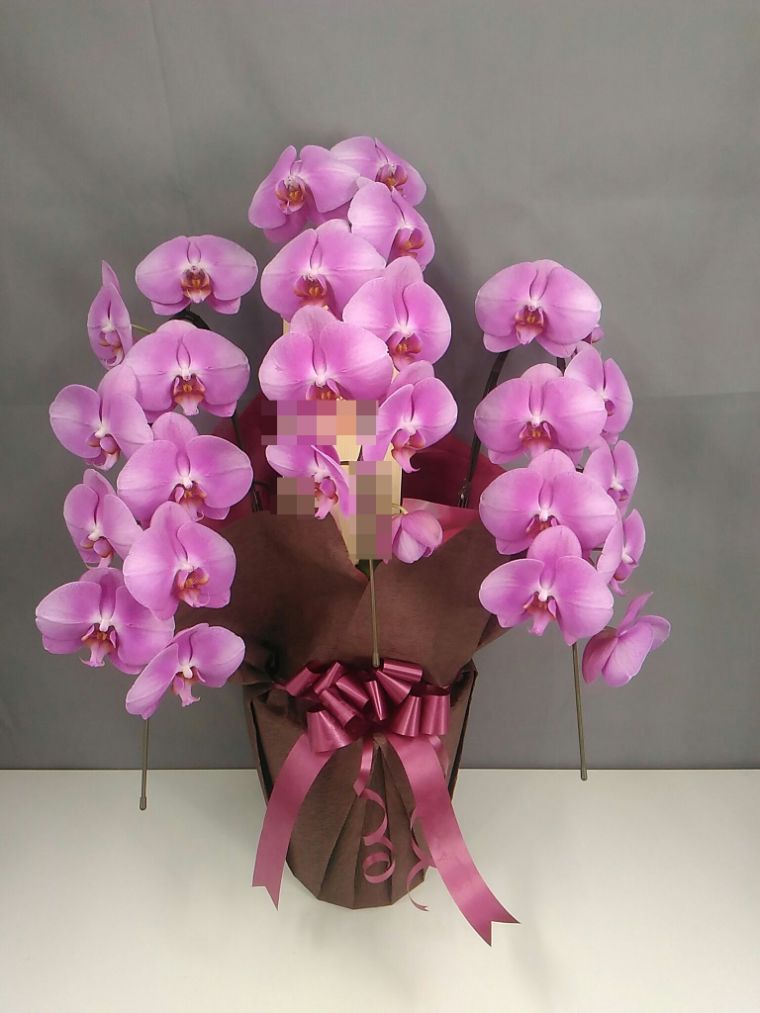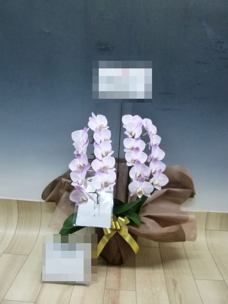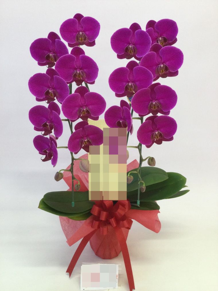 胡蝶蘭の実際にお届けした写真です。花秘書では発送前に写真をメールで送信致しますので安心して大切な顧客や取引様へのギフトにご利用頂けます。