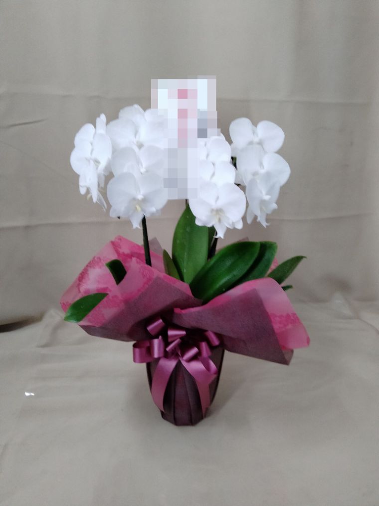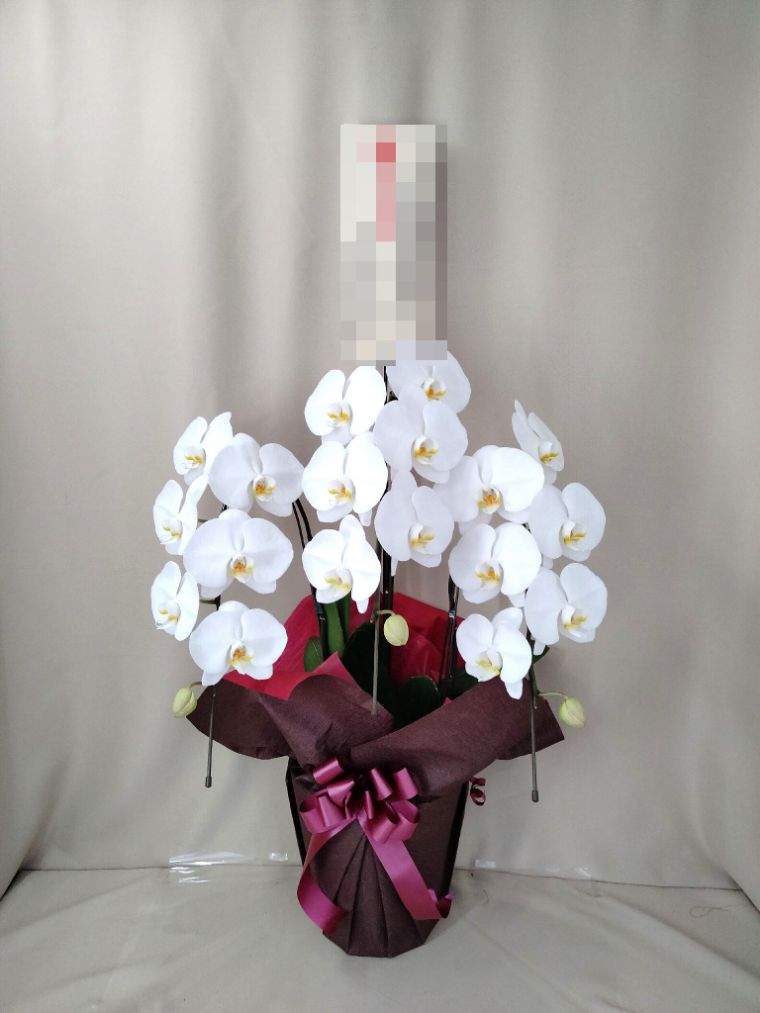胡蝶蘭の実際にお届けした写真です。花秘書では発送前に写真をメールで送信致しますので安心して大切な顧客や取引様へのギフトにご利用頂けます。
