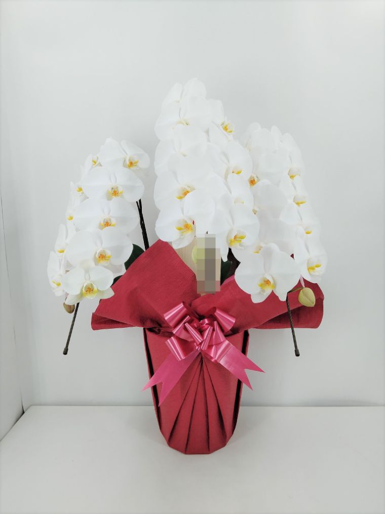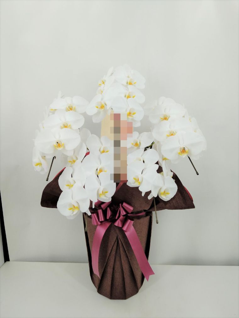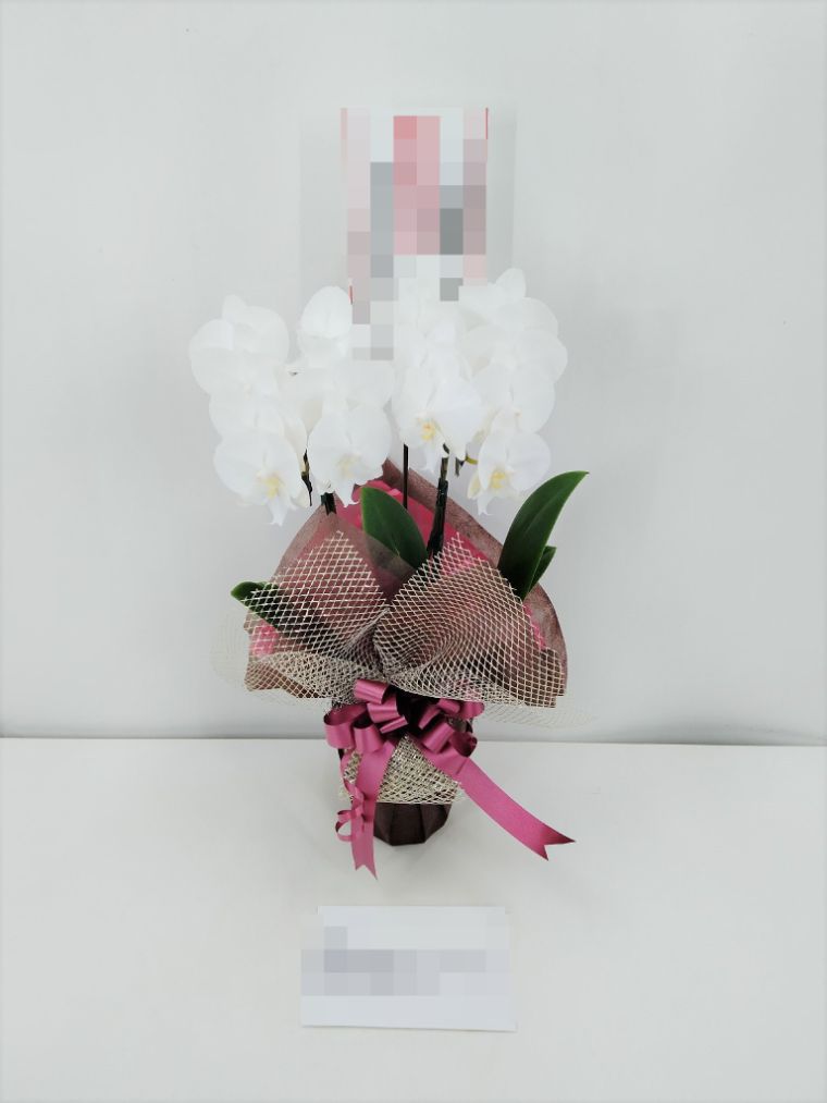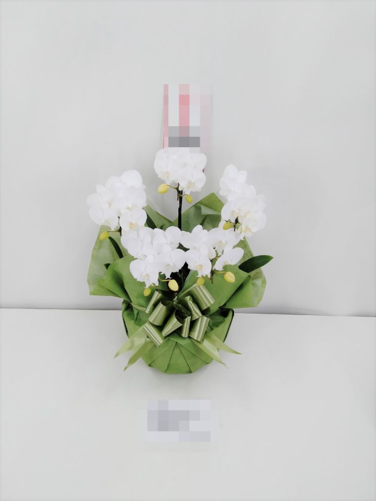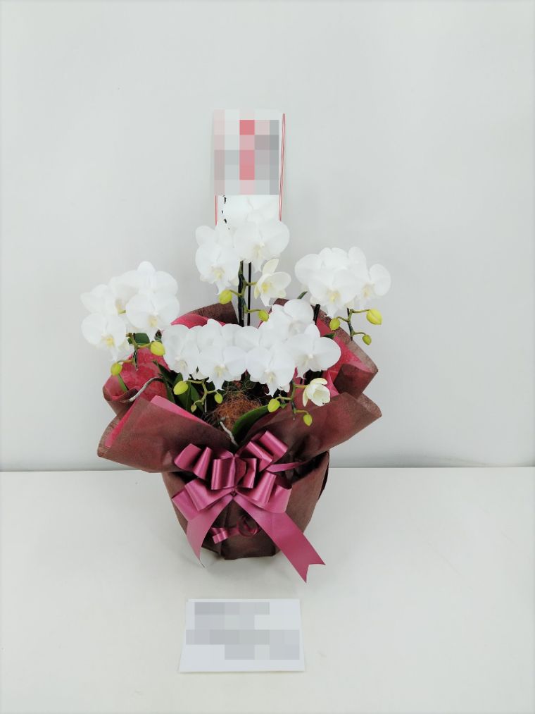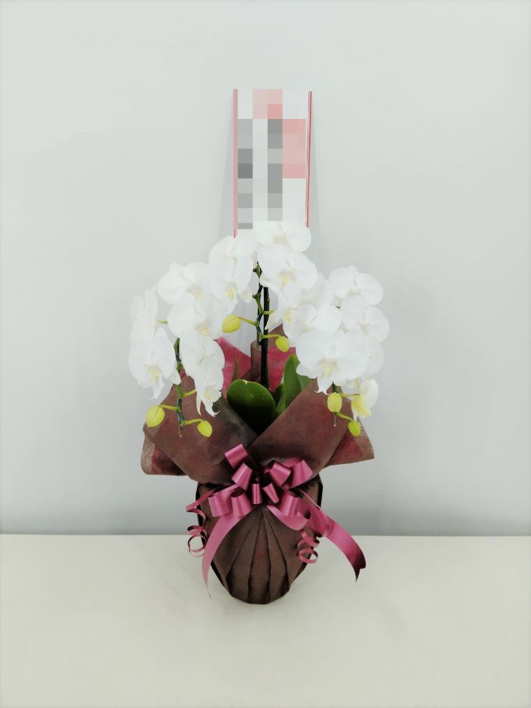 胡蝶蘭の実際にお届けした写真です。花秘書では発送前に写真をメールで送信致しますので安心して大切な顧客や取引様へのギフトにご利用頂けます。