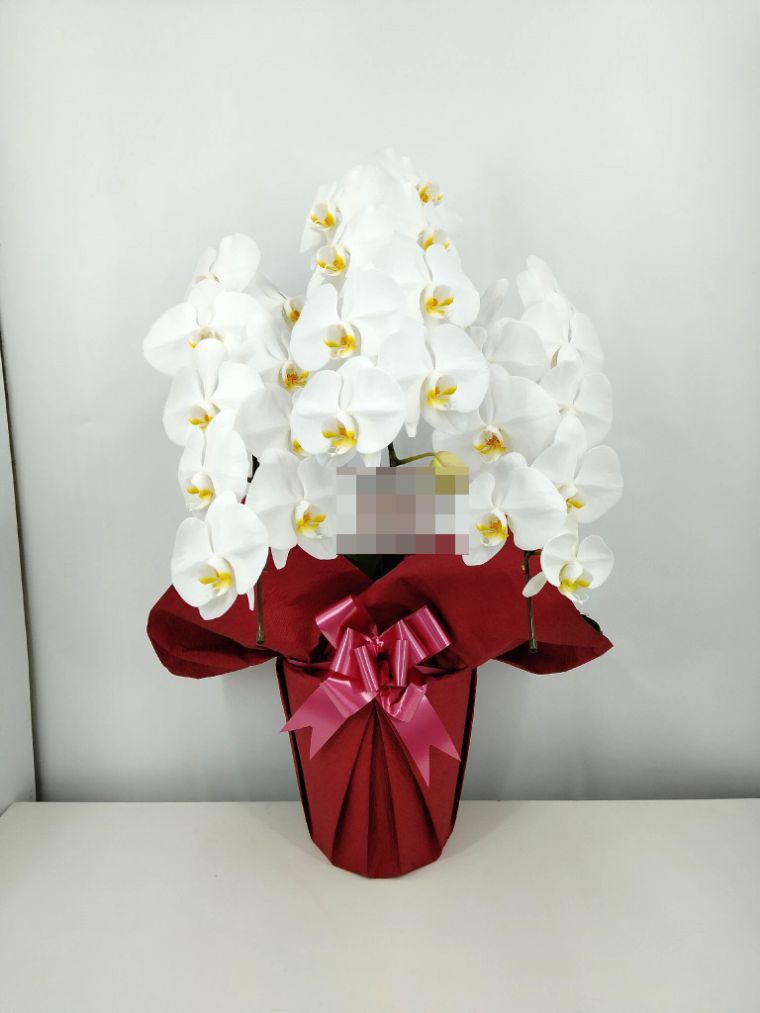 胡蝶蘭の実際にお届けした写真です。花秘書では発送前に写真をメールで送信致しますので安心して大切な顧客や取引様へのギフトにご利用頂けます。
