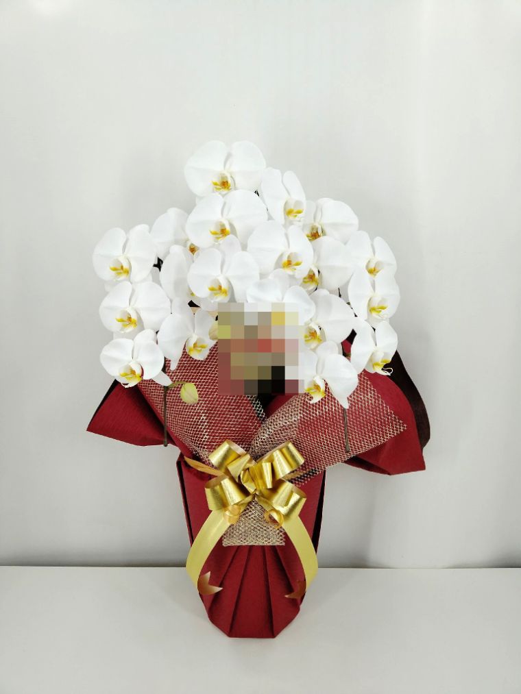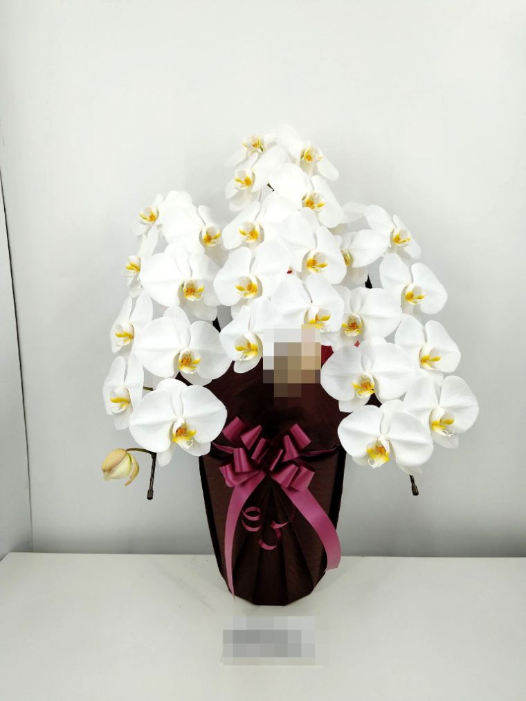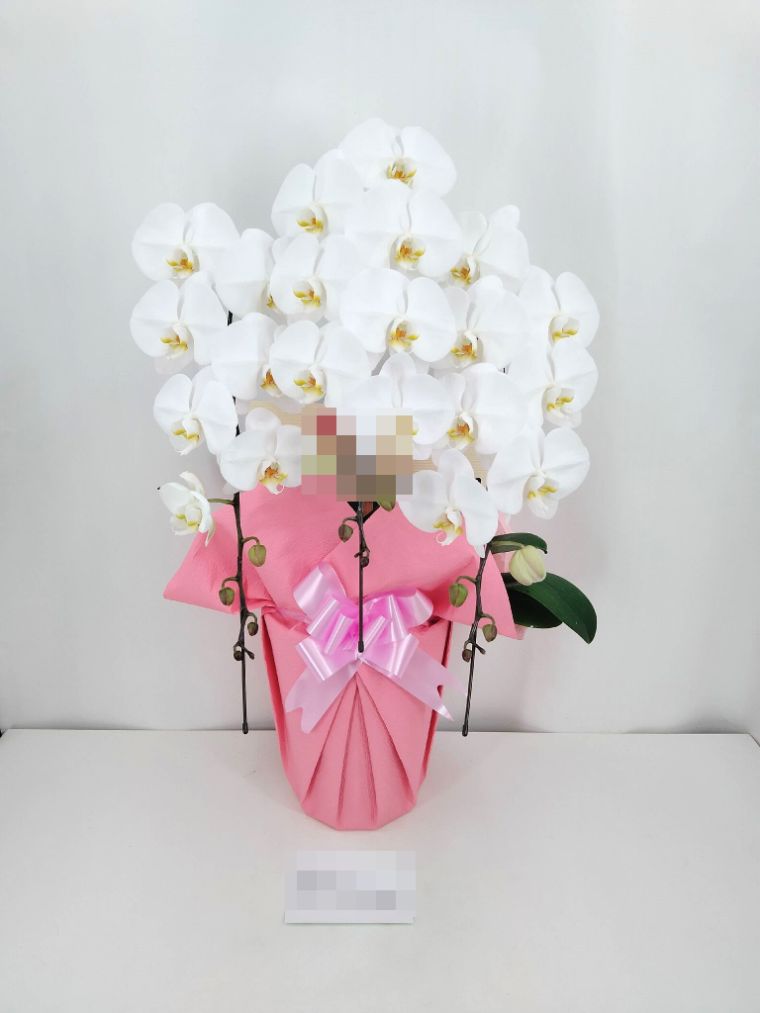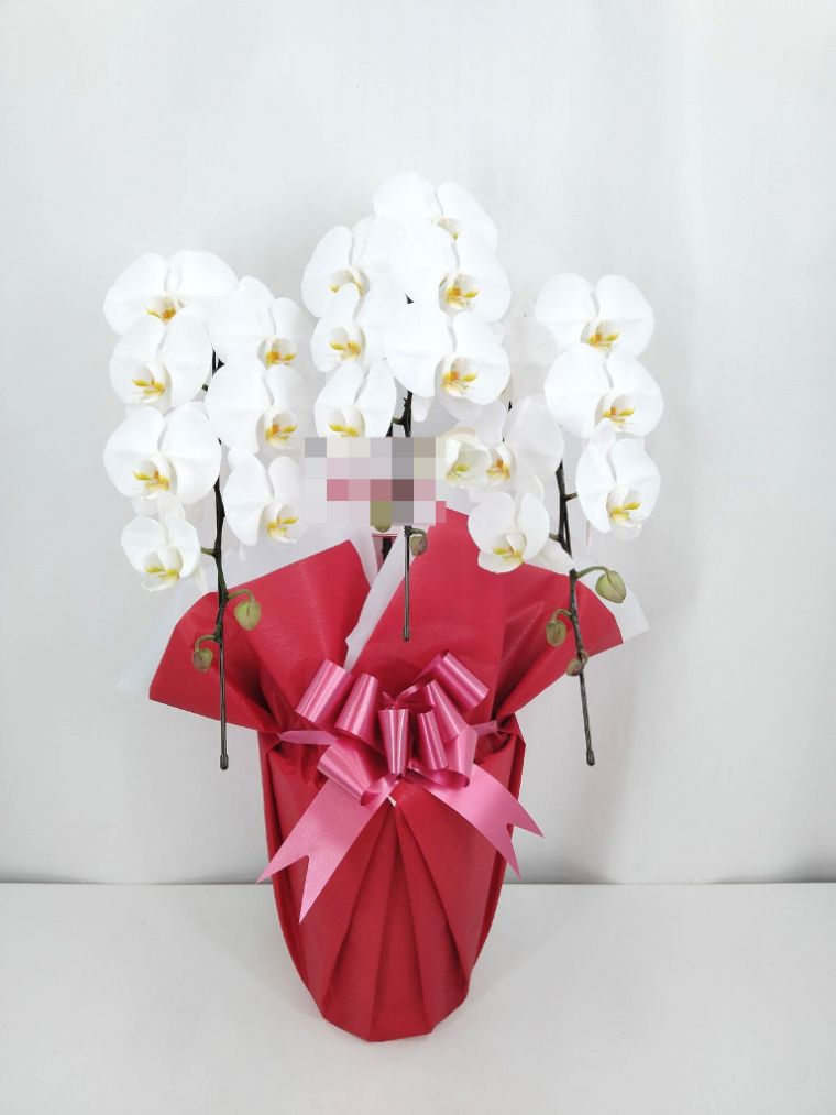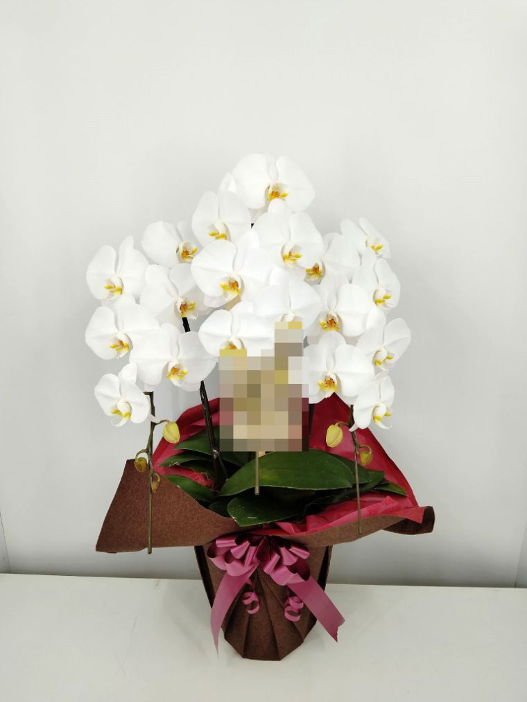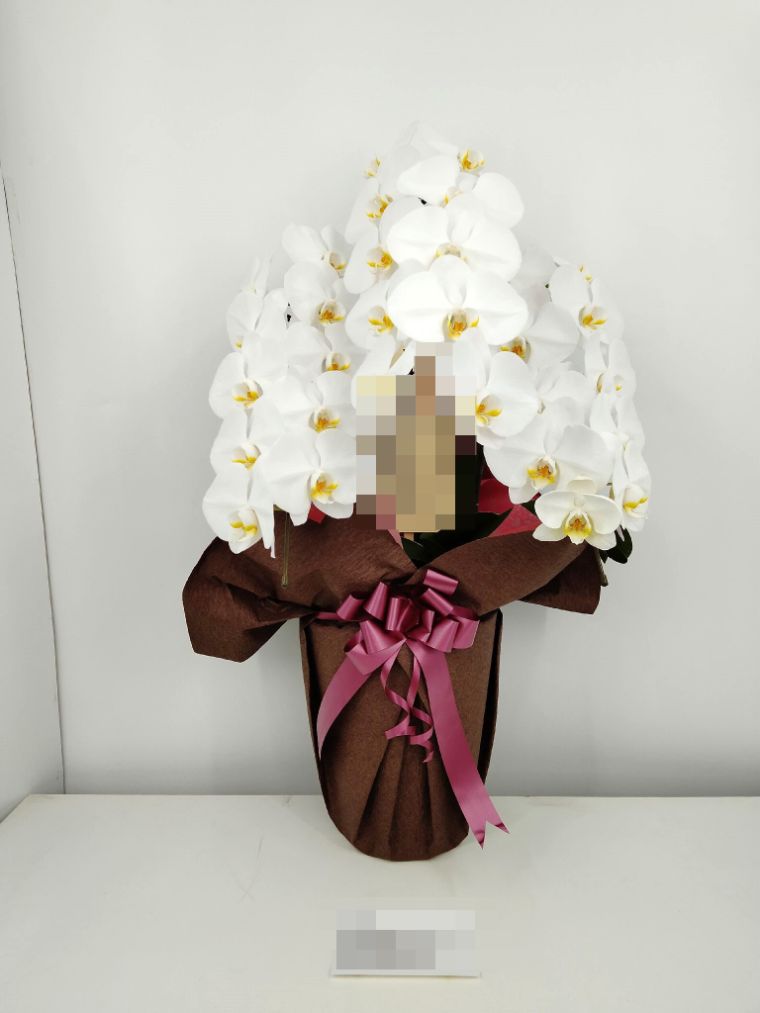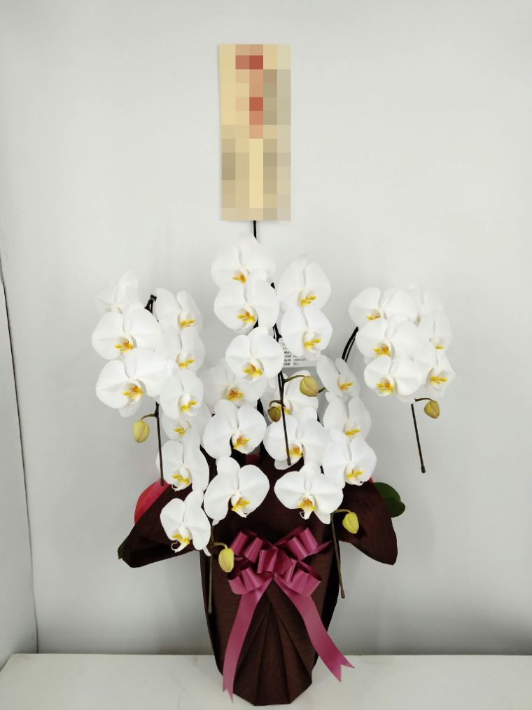 胡蝶蘭の実際にお届けした写真です。花秘書では発送前に写真をメールで送信致しますので安心して大切な顧客や取引様へのギフトにご利用頂けます。