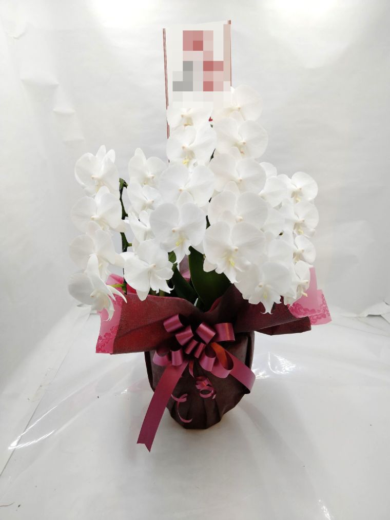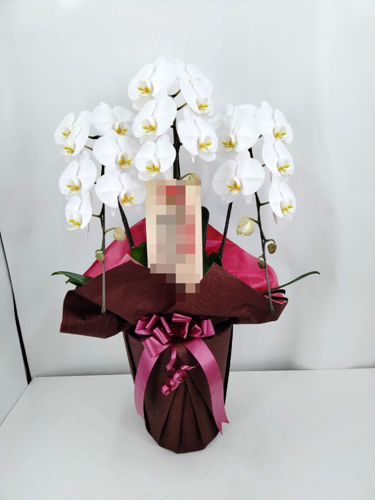 胡蝶蘭の実際にお届けした写真です。花秘書では発送前に写真をメールで送信致しますので安心して大切な顧客や取引様へのギフトにご利用頂けます。