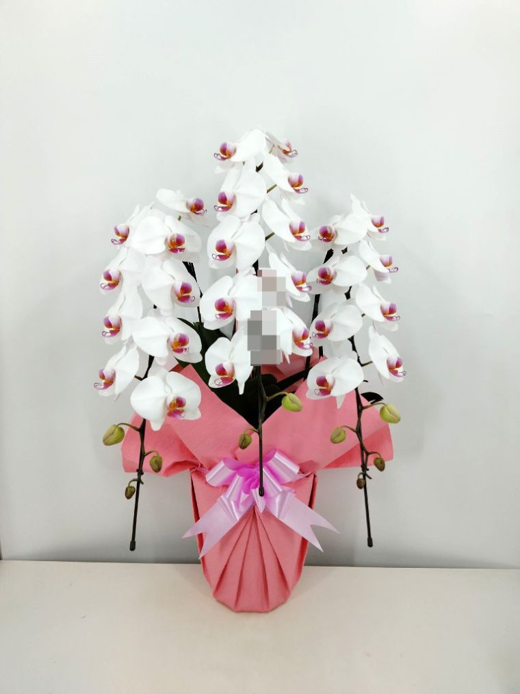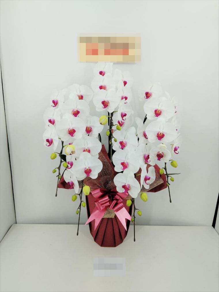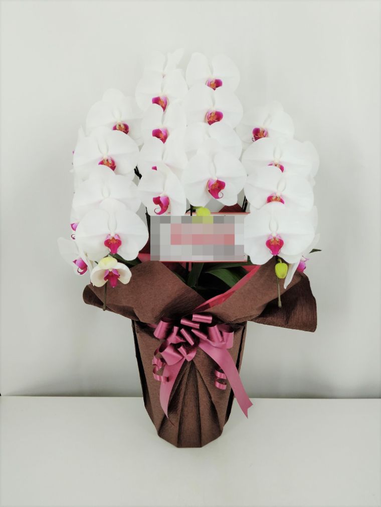 胡蝶蘭の実際にお届けした写真です。花秘書では発送前に写真をメールで送信致しますので安心して大切な顧客や取引様へのギフトにご利用頂けます。