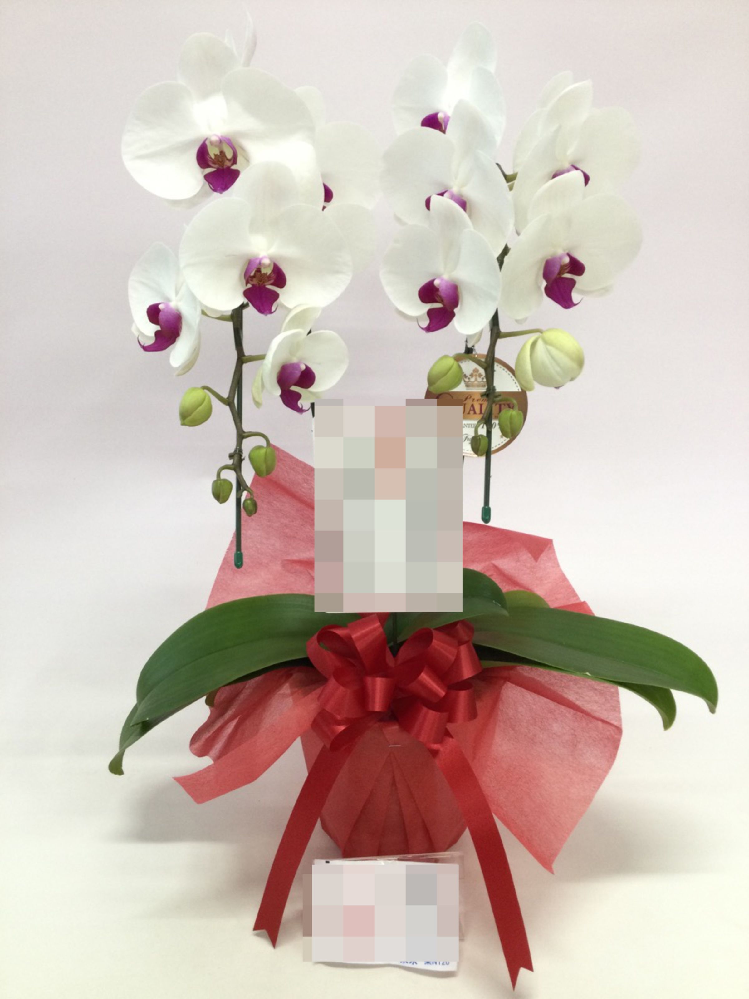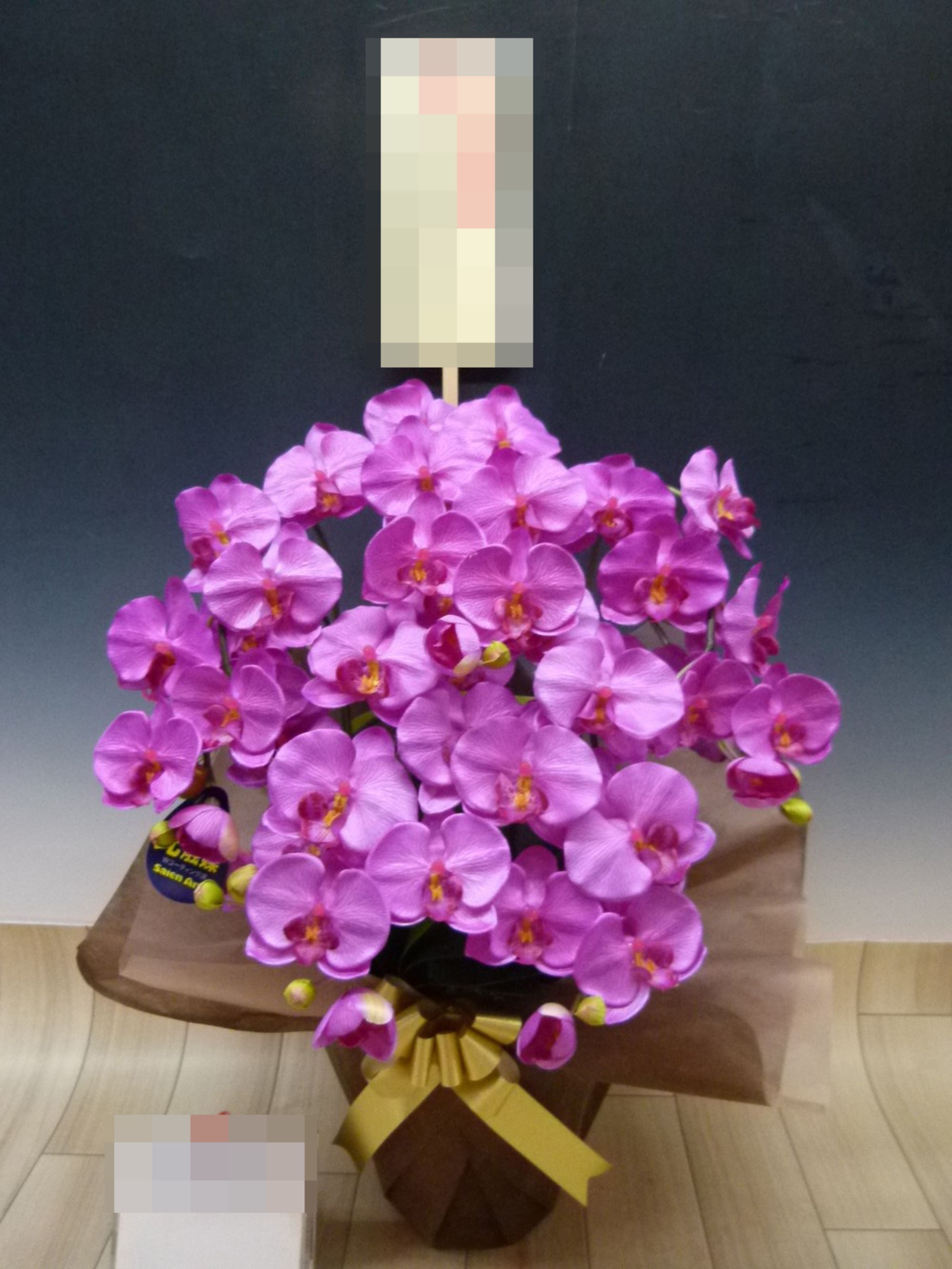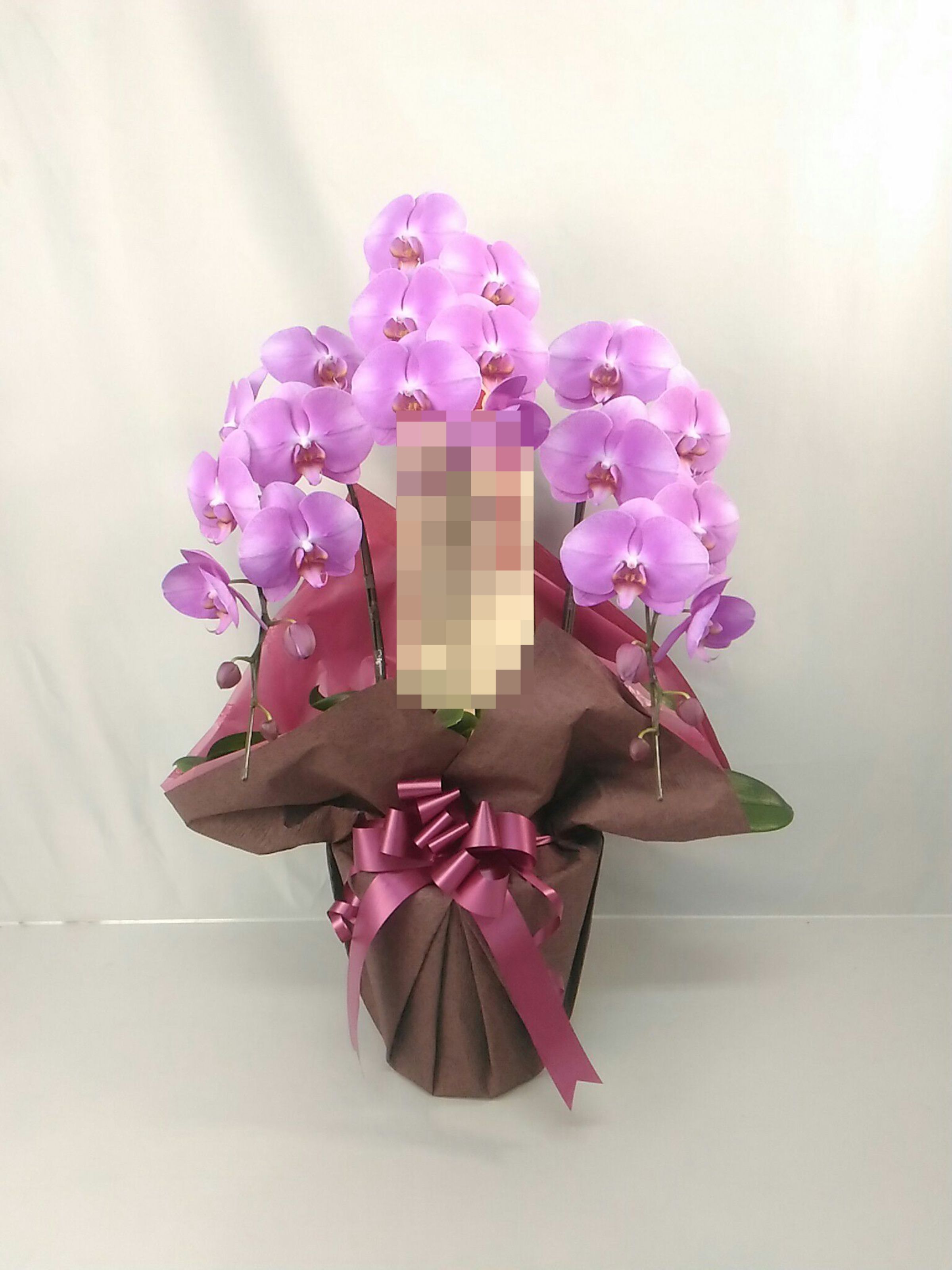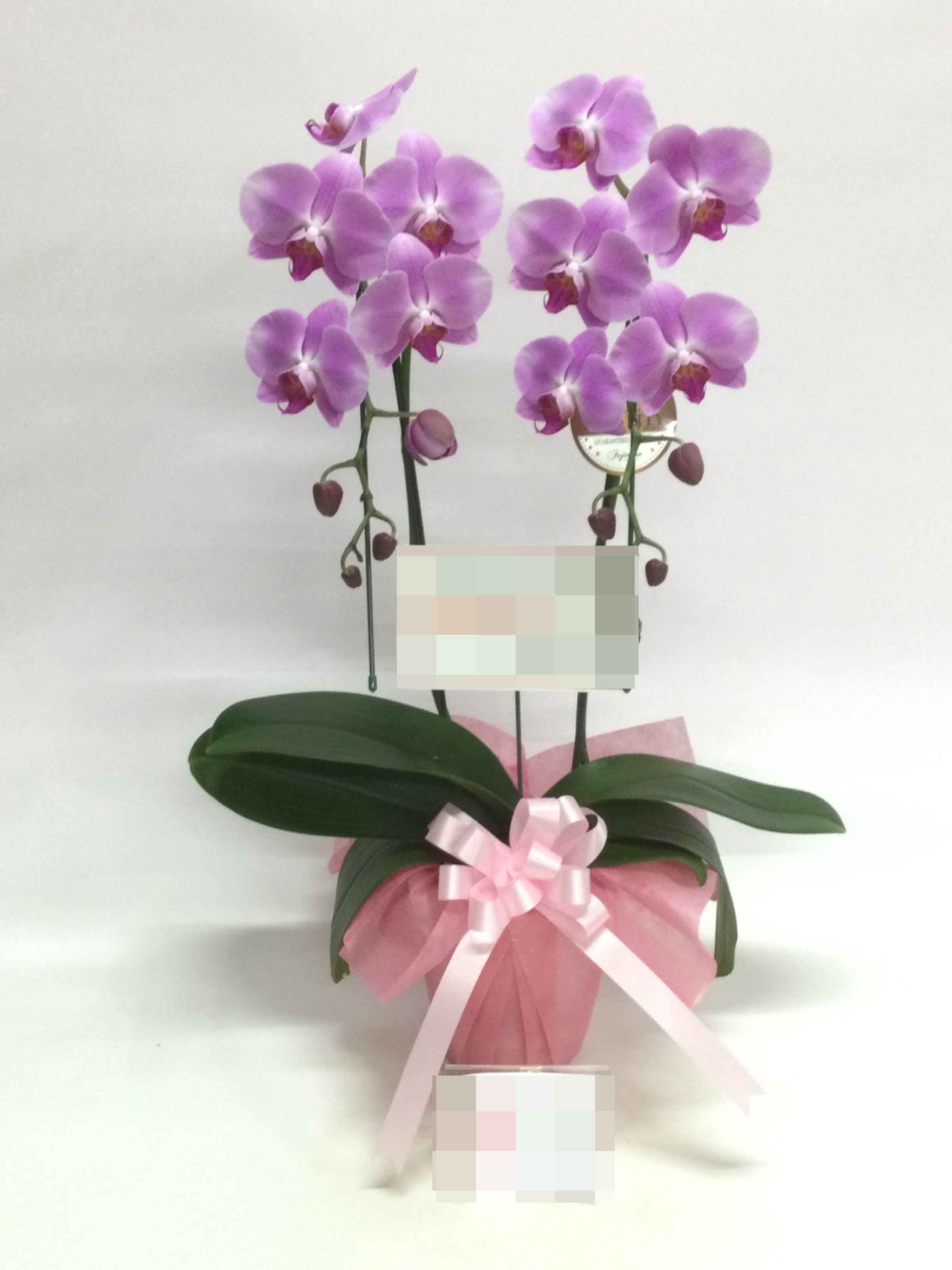 胡蝶蘭の実際にお届けした写真です。花秘書では発送前に写真をメールで送信致しますので安心して大切な顧客や取引様へのギフトにご利用頂けます。